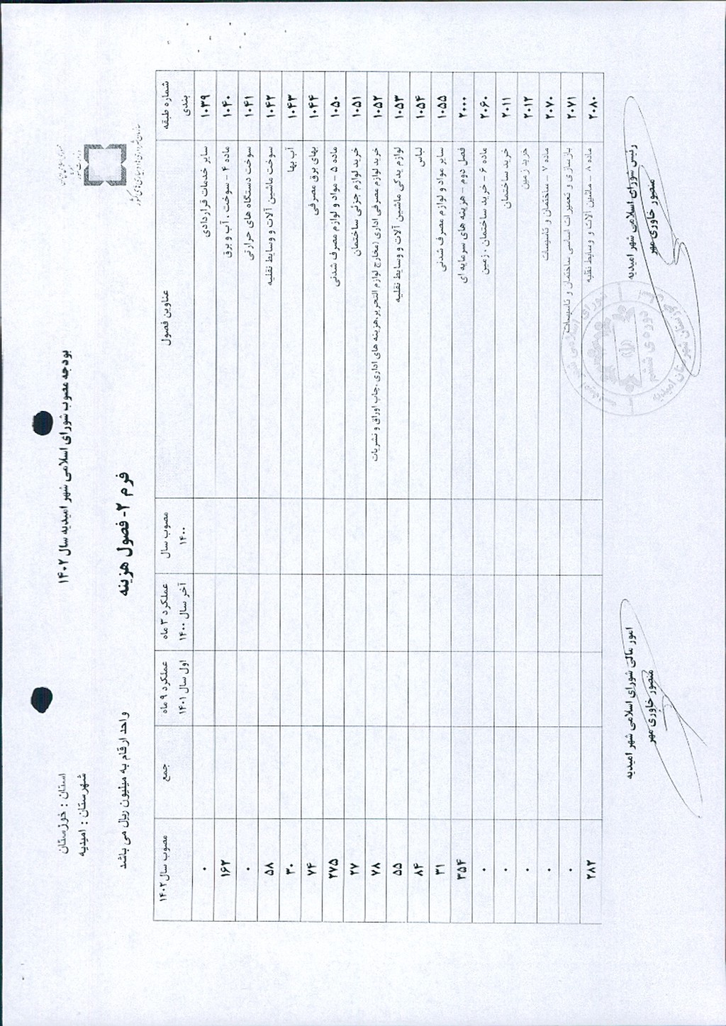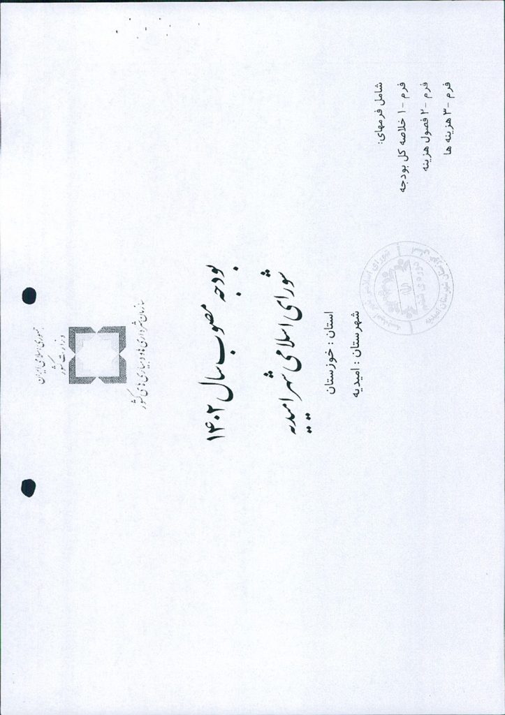 مصوبه شماره ۱ جلسه شماره ۶۰ شورای اسلامی شهر امیدیه