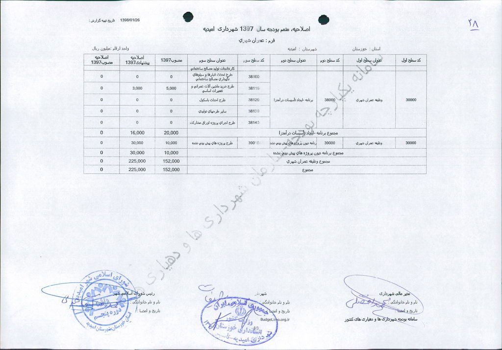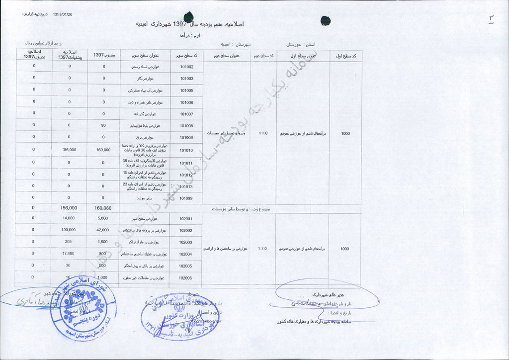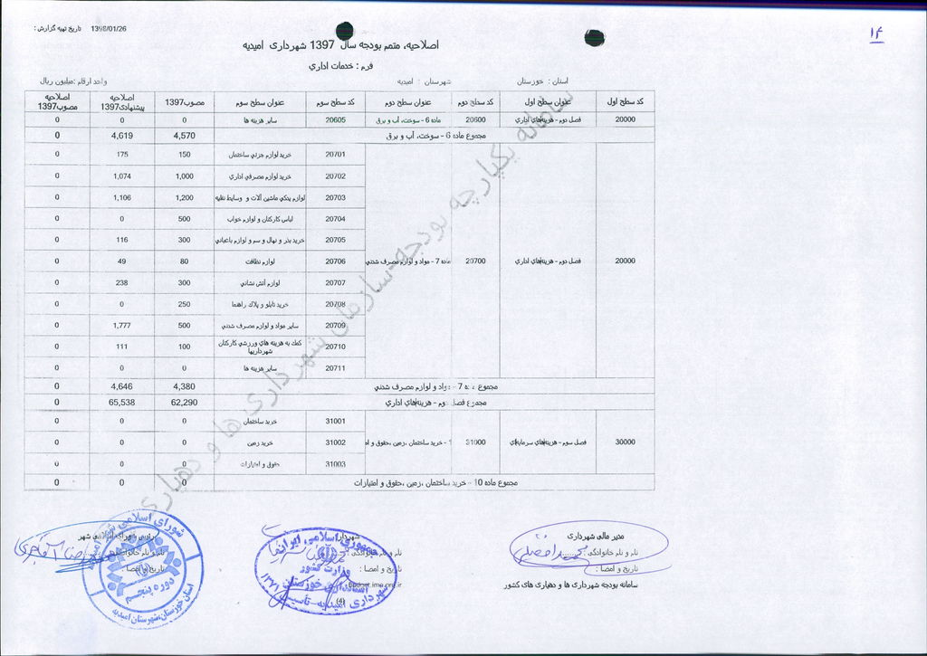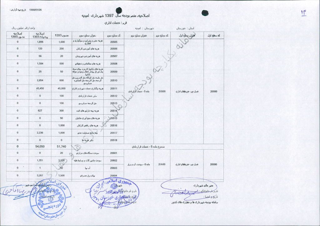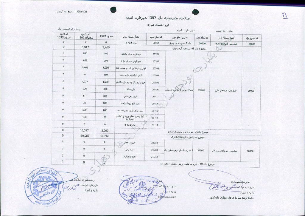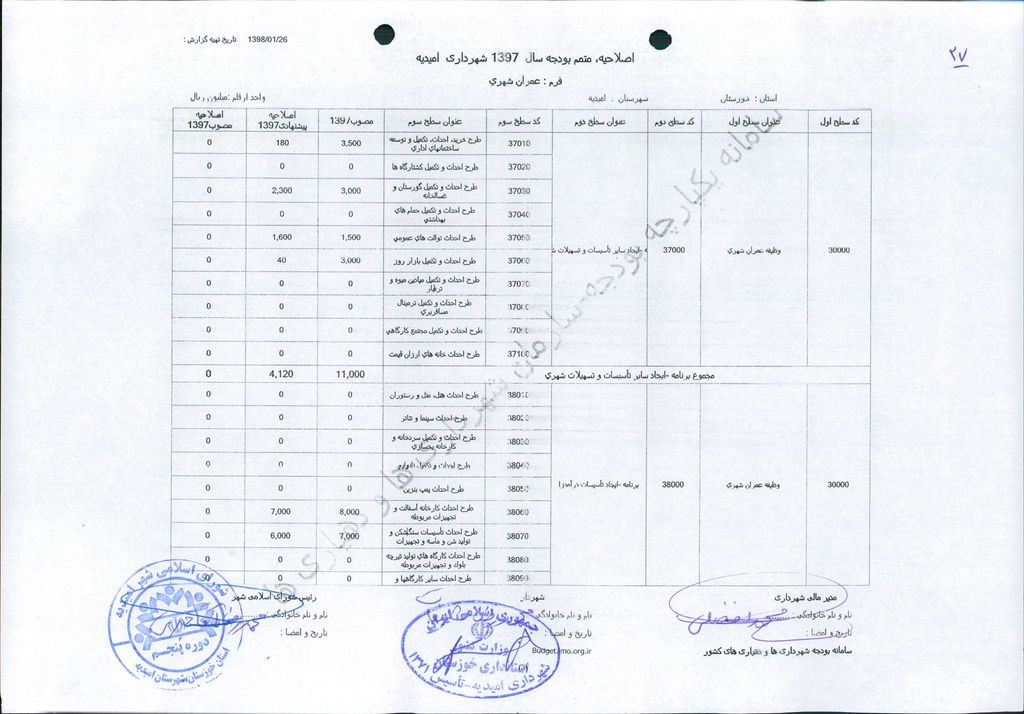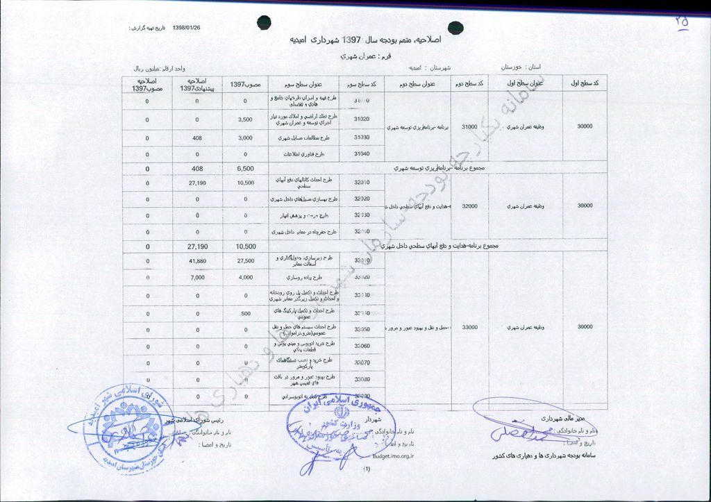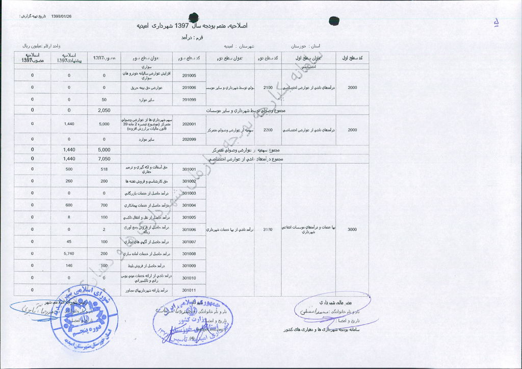 نامه شماره ۱۶۵۲۴/۹۷-۲۶/۱۲/۹۷ شهرداری امیدیه مبنی بر دفترچه متمم بودجه سال ۹۷ شهرداری به مبلغ ۵۰۰ میلیارد ریال، در جلسه مطرح و پس از بحث و بررسی با مجموع آراء ذیل مصوب گردید.