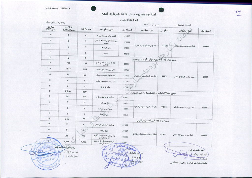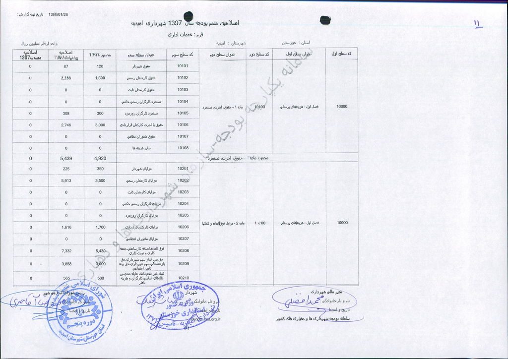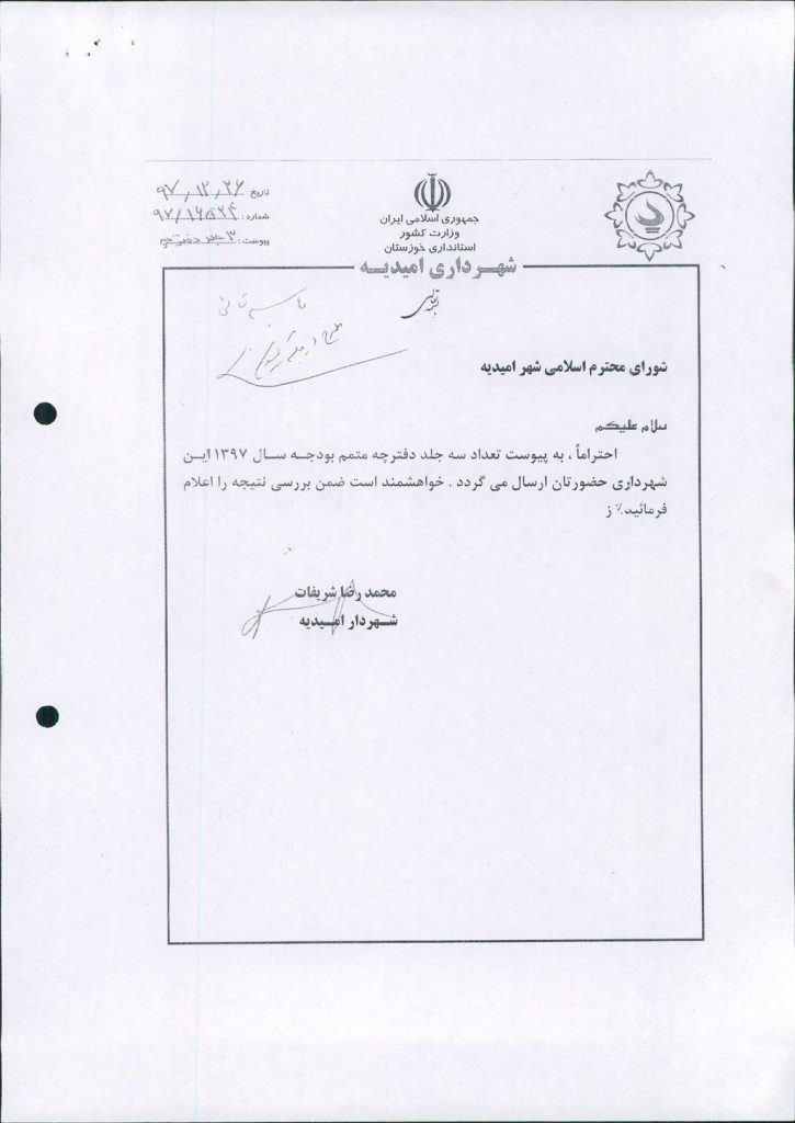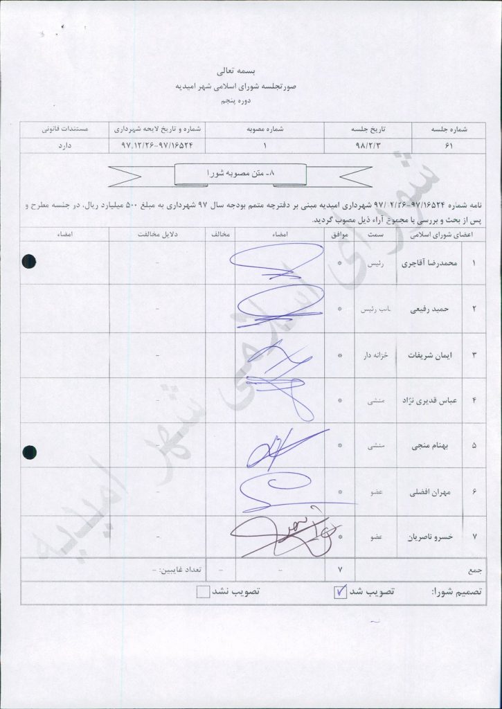مصوبه شماره ۱ جلسه شماره ۶۱ شورای اسلامی شهر امیدیه