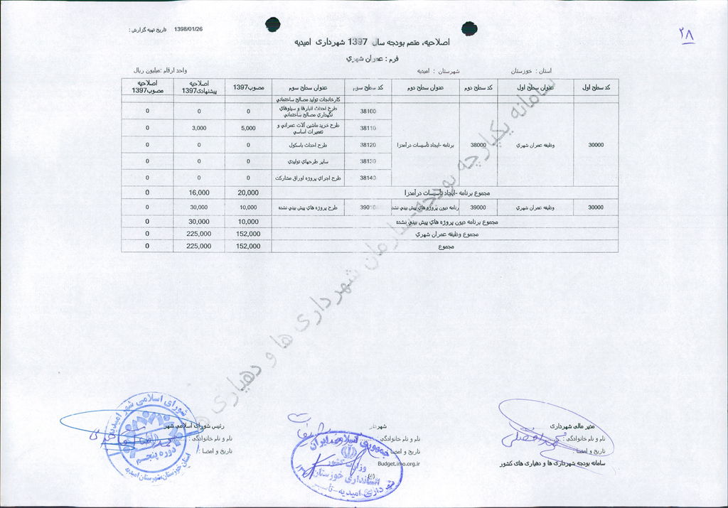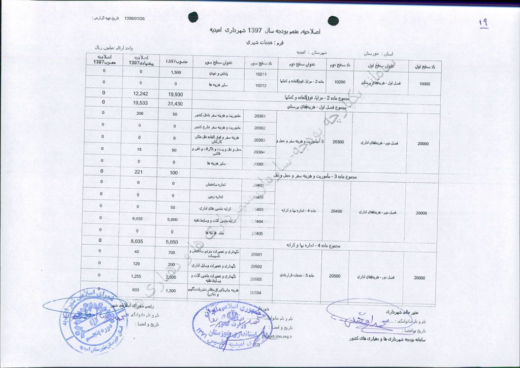 مصوبه شماره ۱ جلسه شماره ۶۱ مورخ ۹۸/۲/۳ شورای اسلامی شهر امیدیه