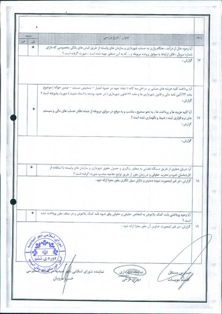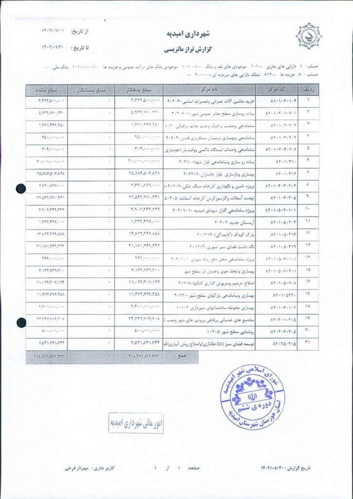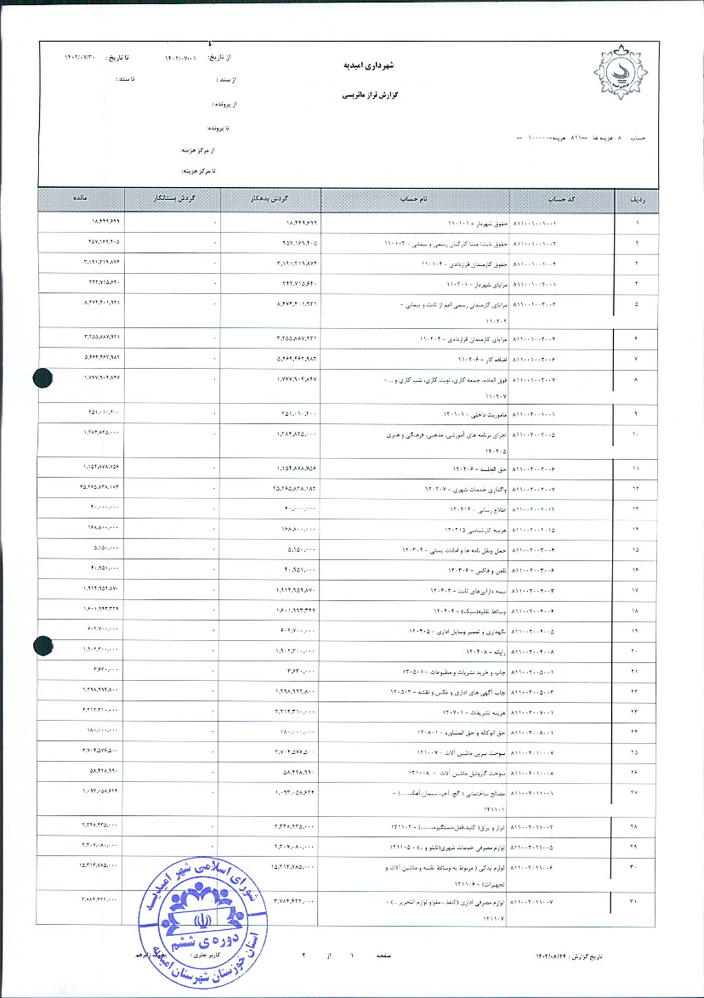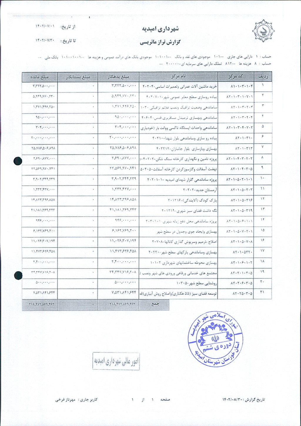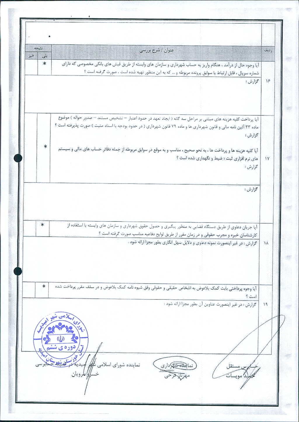 با توجه به ارائه گزارش عملکرد درآمد – هزینه مهرماه سالجاری شهرداری امیدیه توسط کمیته حسابرسی موضوع در جلسه مطرح و پس از بحث و بررسی با مجموع آراء ذیل مصوب گردید.