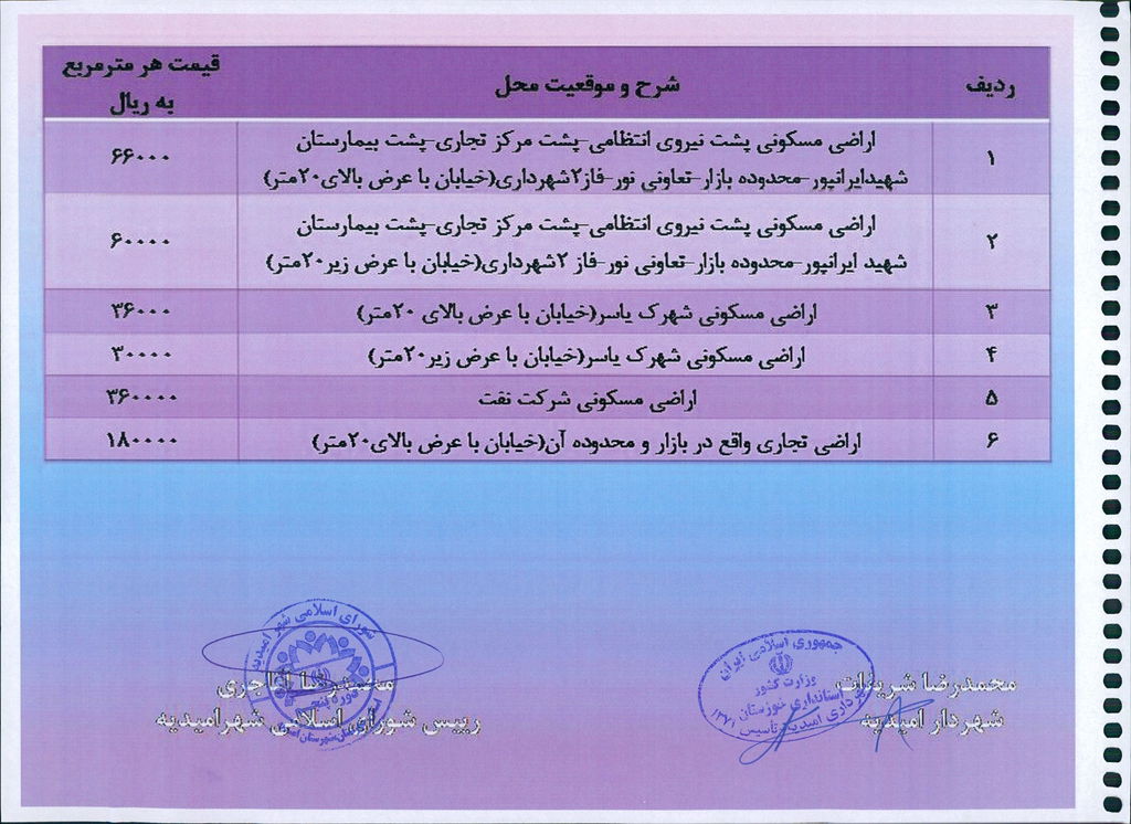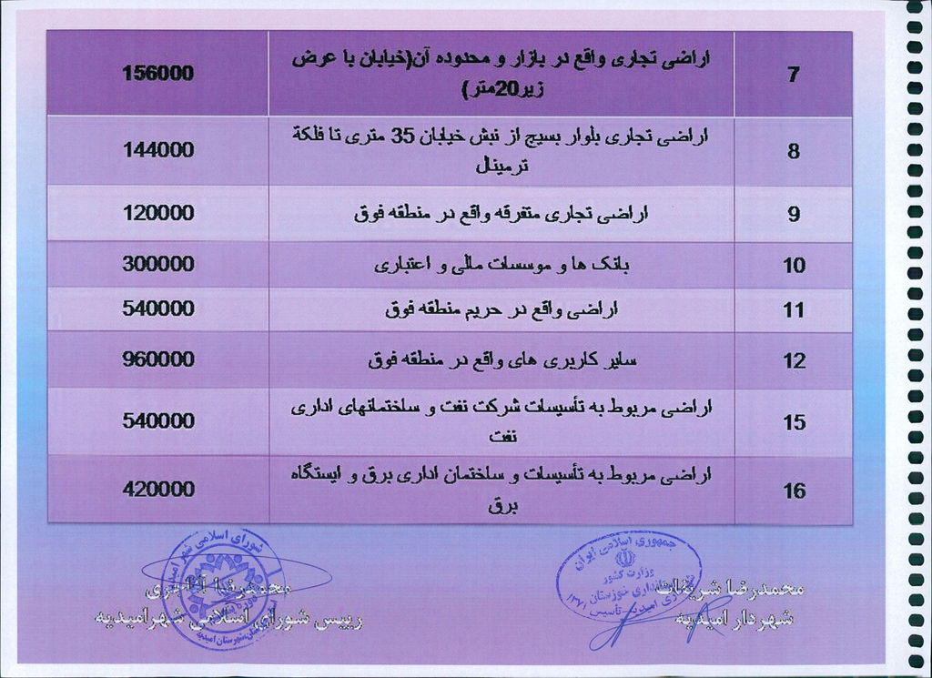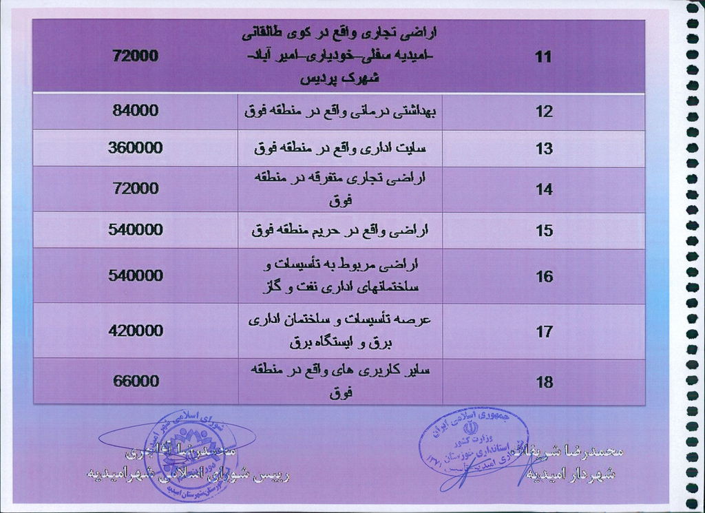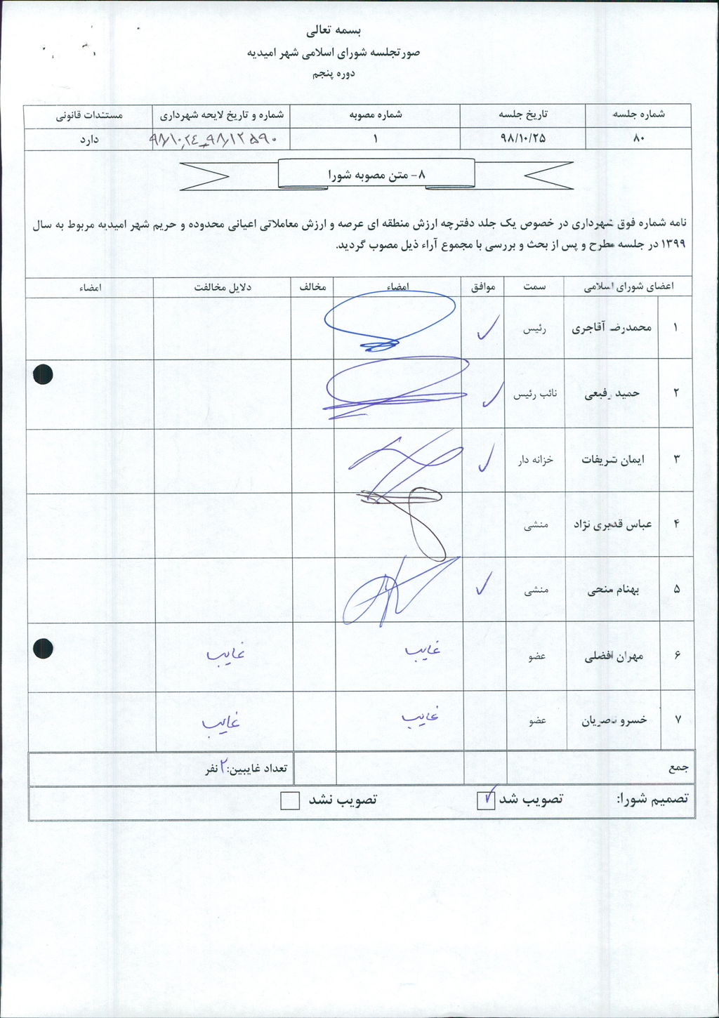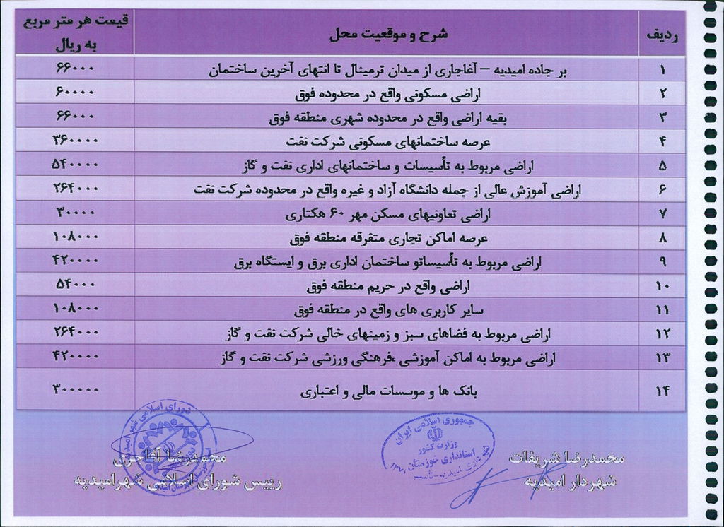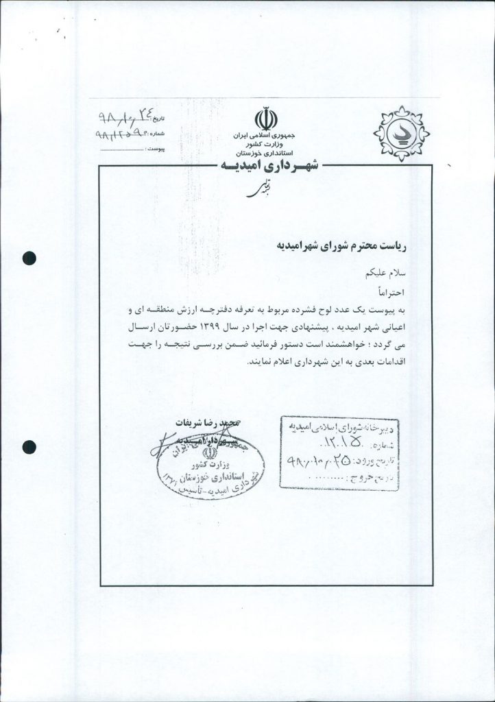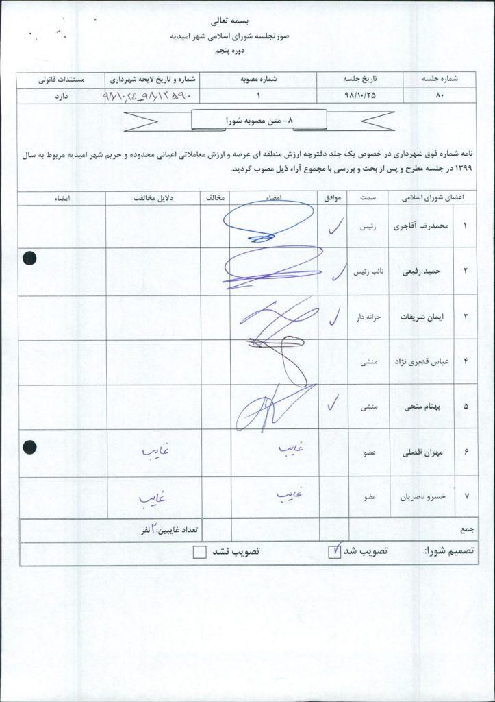 مصوبه شماره ۱جلسه شماره ۸۰ شورای اسلامی شهر امیدیه