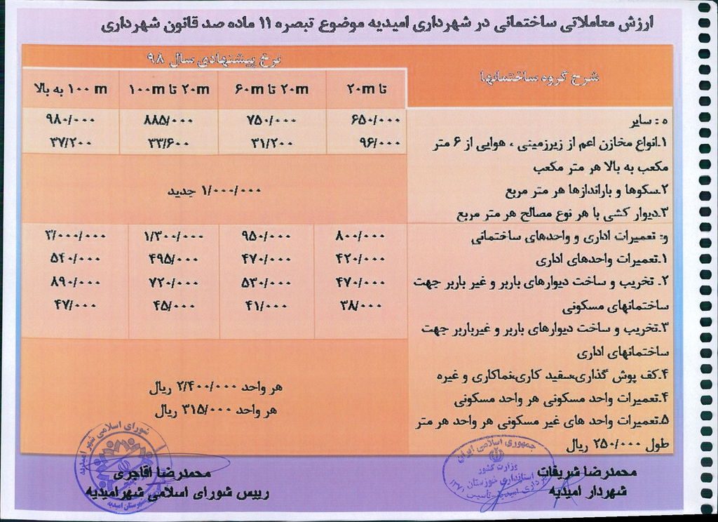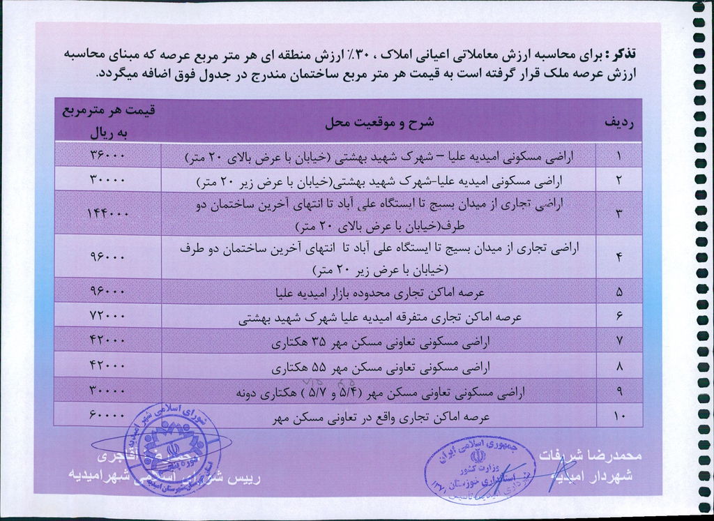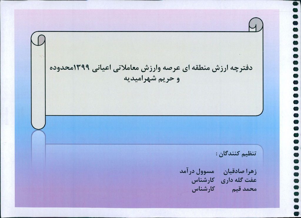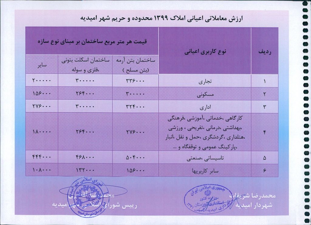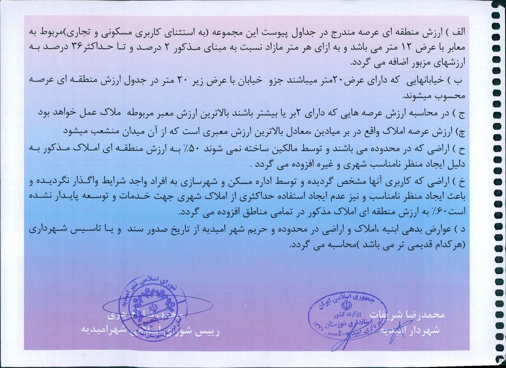 نامه شماره فوق شهرداری در خصوص یک جلد دفترچه ارزش منطقه ای عرصه و ارزش معاملاتی اعیانی محدوده و حریم شهر امیدیه مربوط به سال ۱۳۹۹ در جلسه مطرح و پس از بحث و بررسی با مجموع آراء ذیل مصوب گردید.
