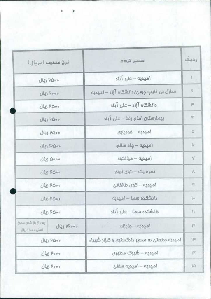 مصوبه شماره ۱ جلسه شماره ۸۱ شورای اسلامی شهر امیدیه