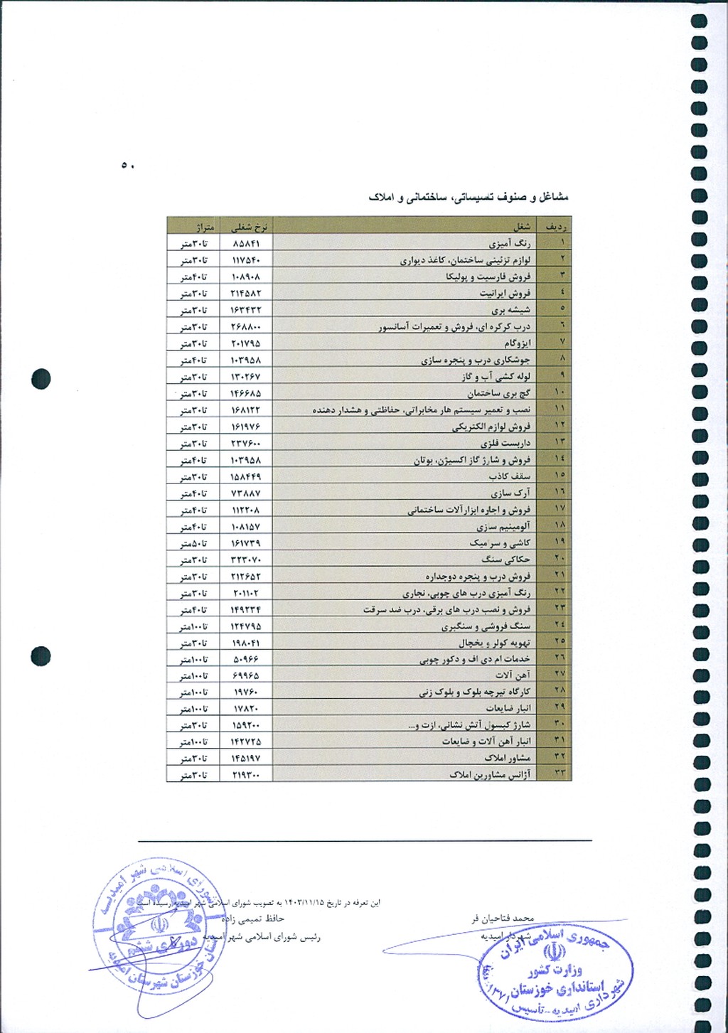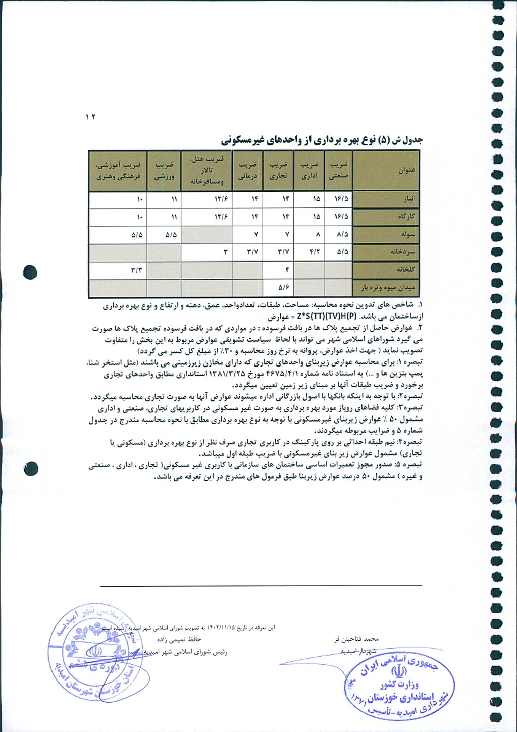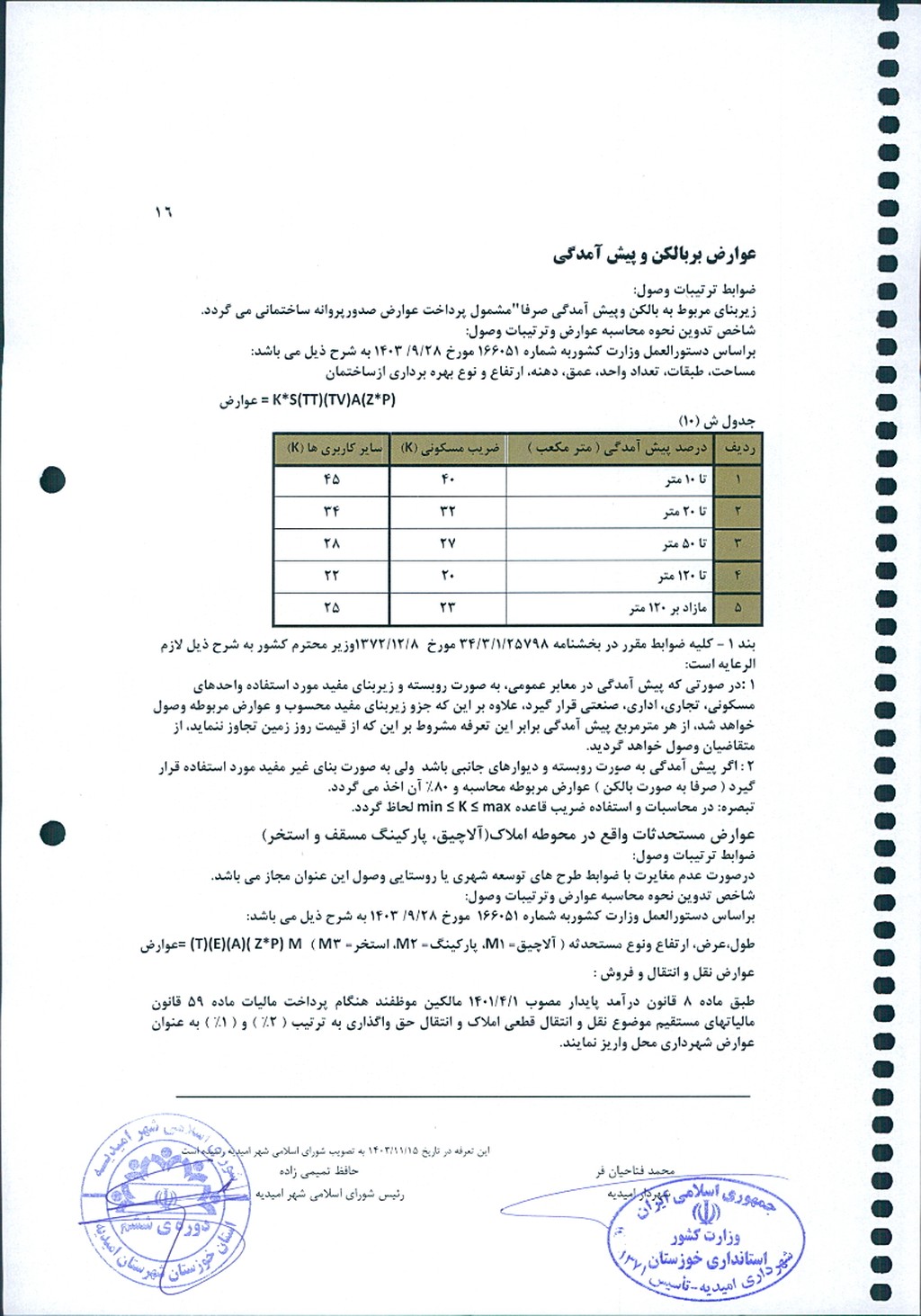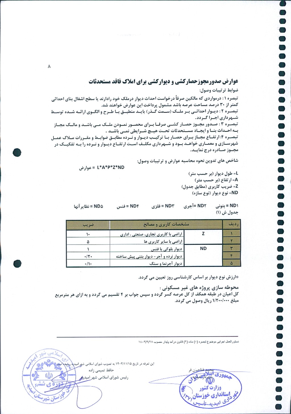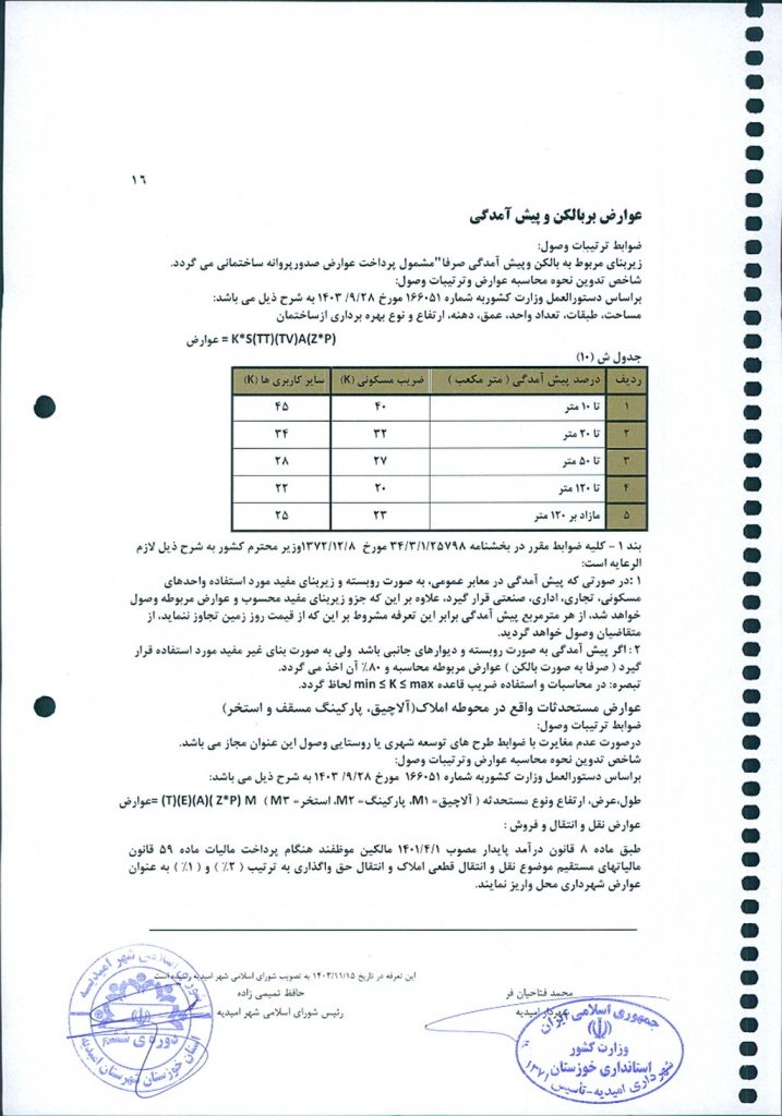لایحه شماره فوق شهرداری امیدیه مبنی بر یک جلد دفترچه تعرفه عوارض ساختمانی ، بهاء خدمات و کسب و پیشه مربوط به سال ۱۴۰۴ موضوع در جلسه مطرح و پس از بحث و بررسی با رعایت مفاد قانون درآمد پایدار و هزینه شهرداری ها و دستور العمل اجرایی موضوع تبصره (۱) ماده (۲) قانون مذکور با مجموع آراء ذیل مصوب گردید
