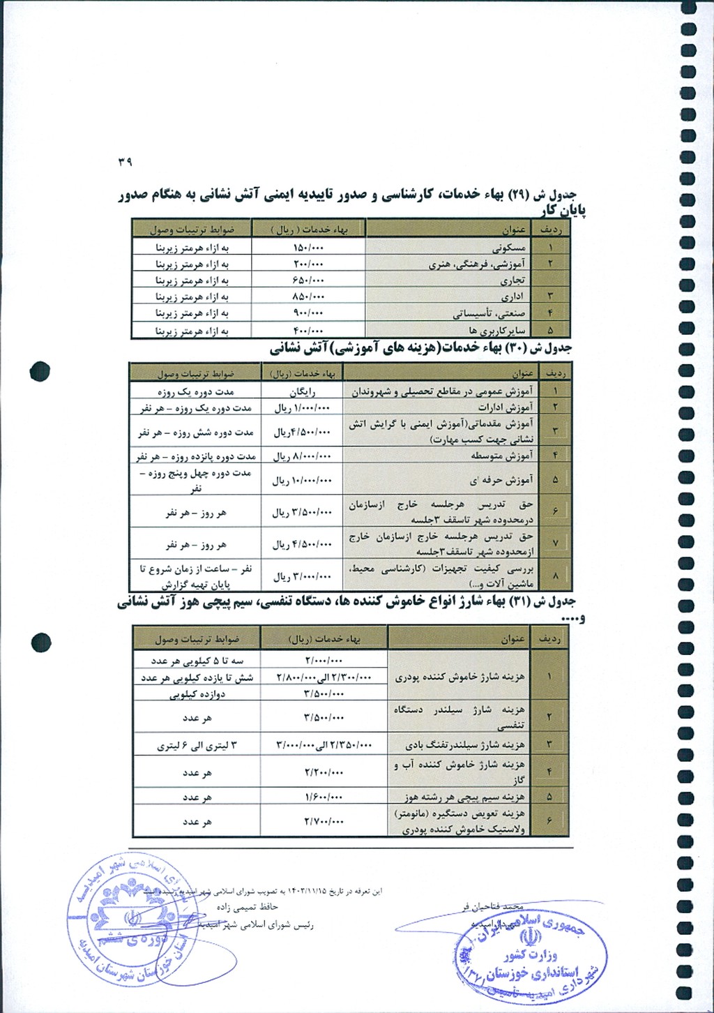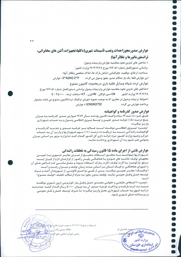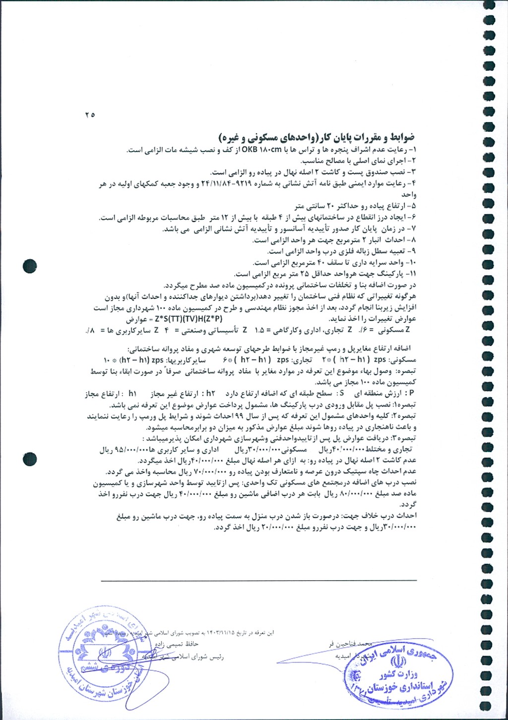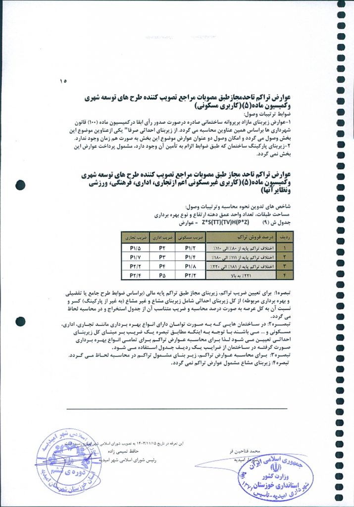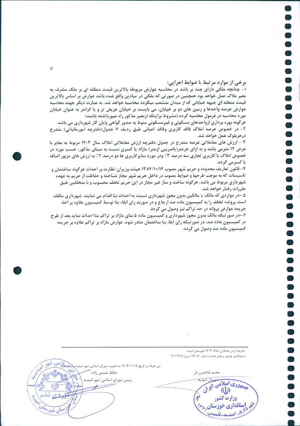 لایحه شماره فوق شهرداری امیدیه مبنی بر یک جلد دفترچه تعرفه عوارض ساختمانی ، بهاء خدمات و کسب و پیشه مربوط به سال ۱۴۰۴ موضوع در جلسه مطرح و پس از بحث و بررسی با رعایت مفاد قانون درآمد پایدار و هزینه شهرداری ها و دستور العمل اجرایی موضوع تبصره (۱) ماده (۲) قانون مذکور با مجموع آراء ذیل مصوب گردید
