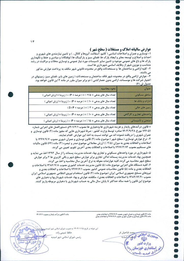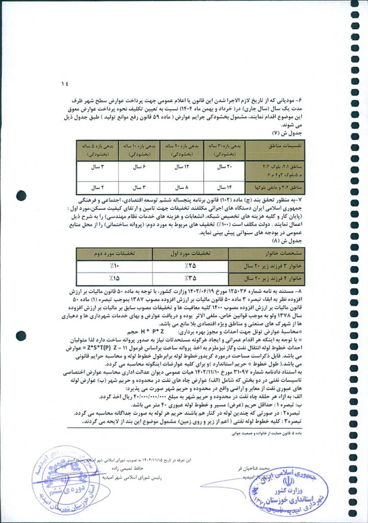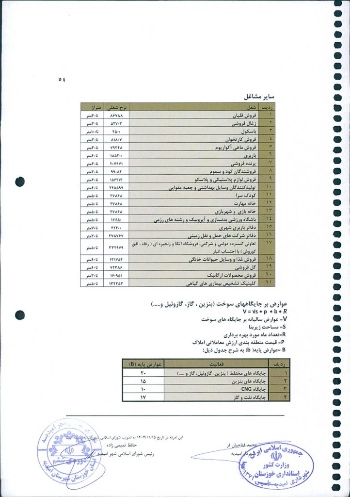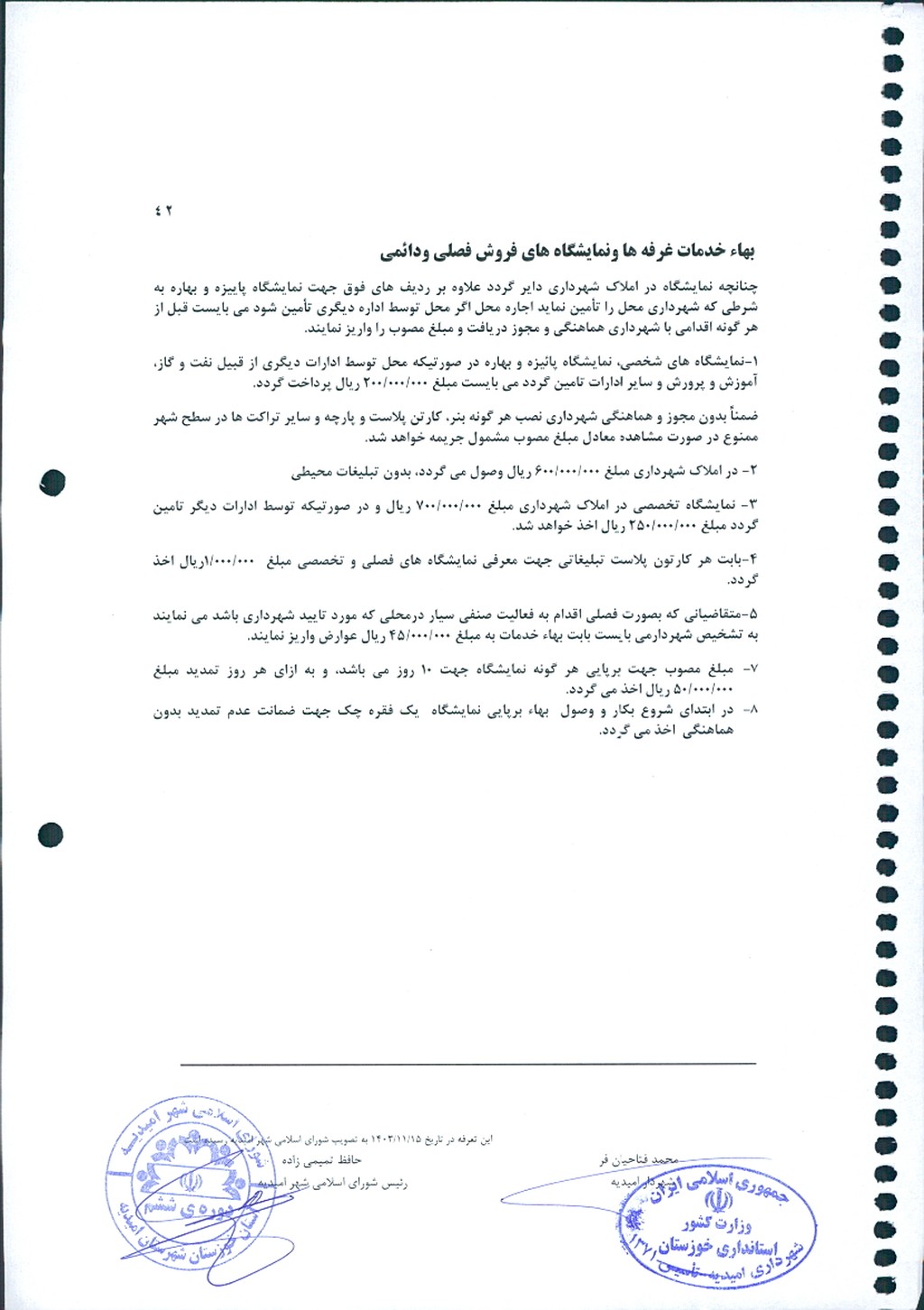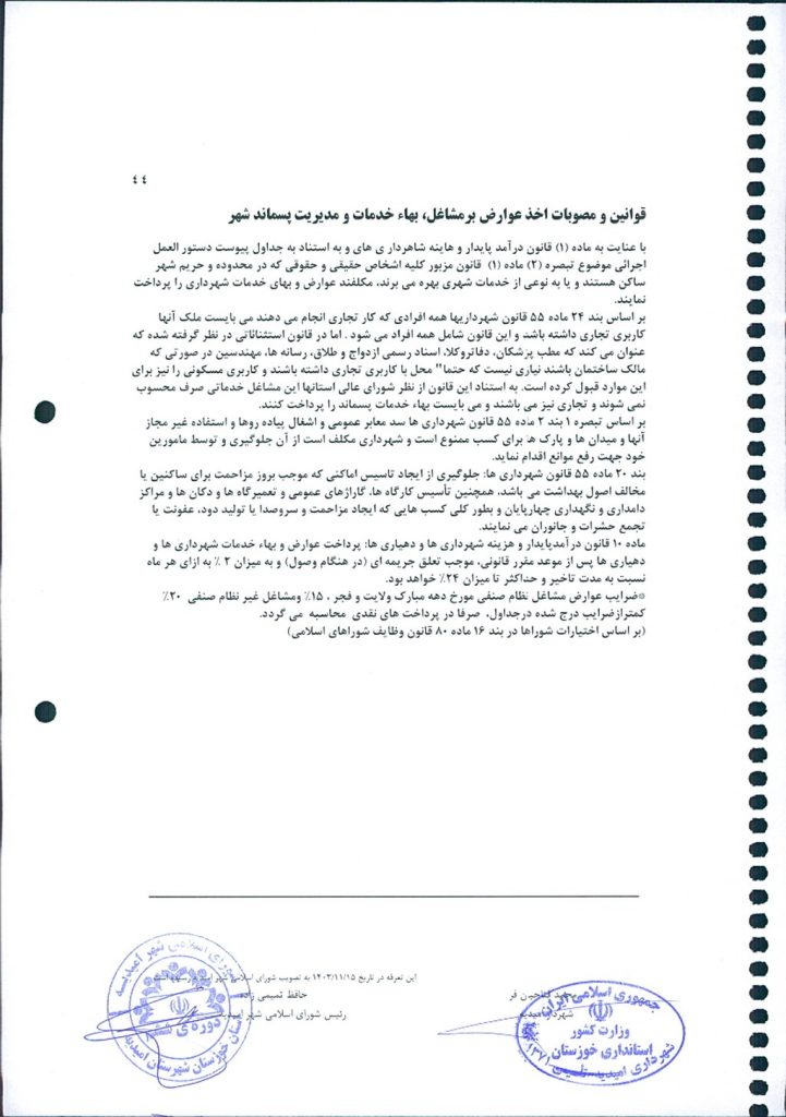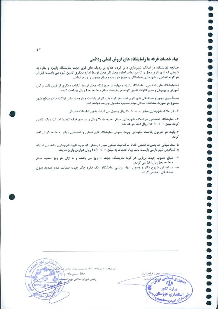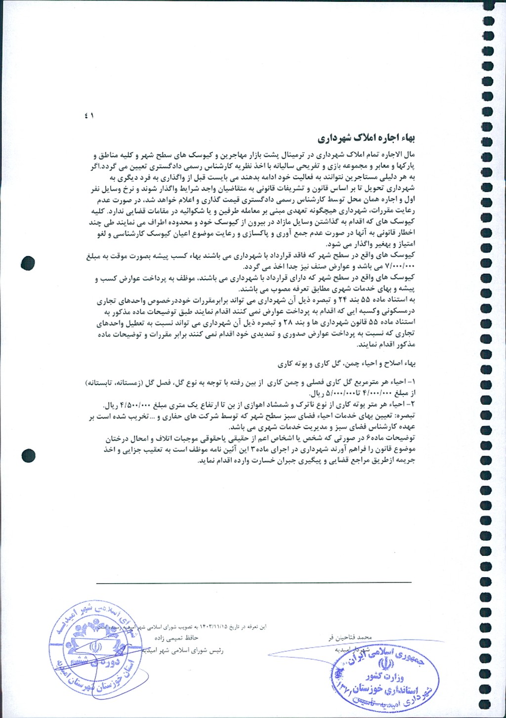 مصوبه شماره ۱ جلسه شماره ۸۲ شورای اسلامی شهر امیدیه