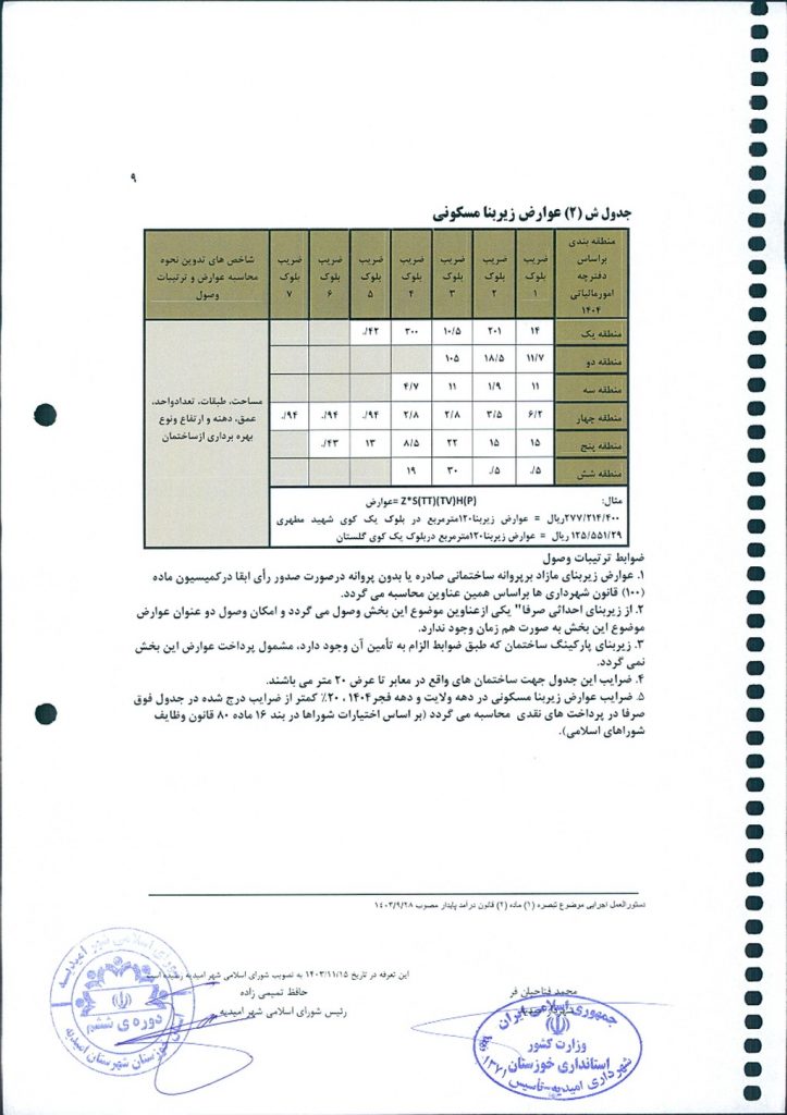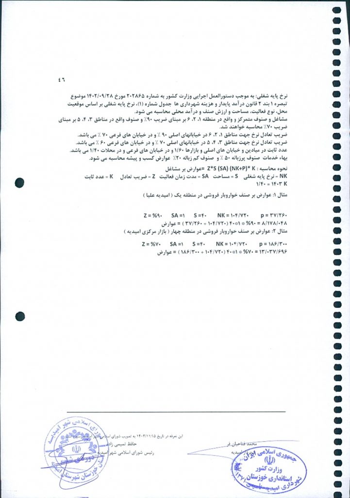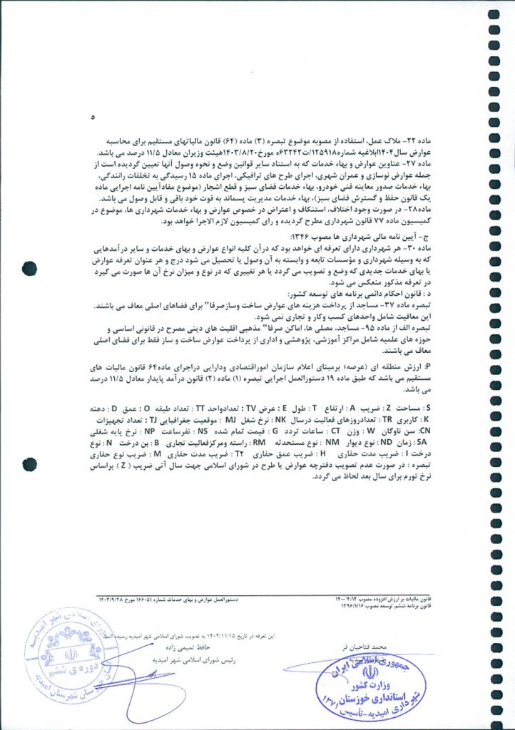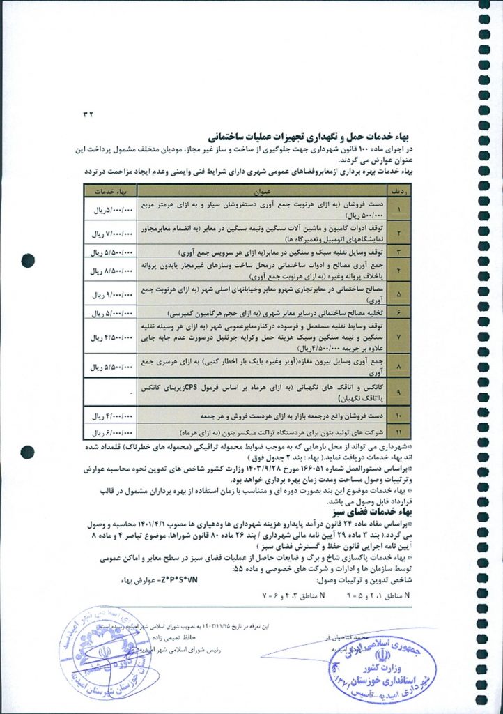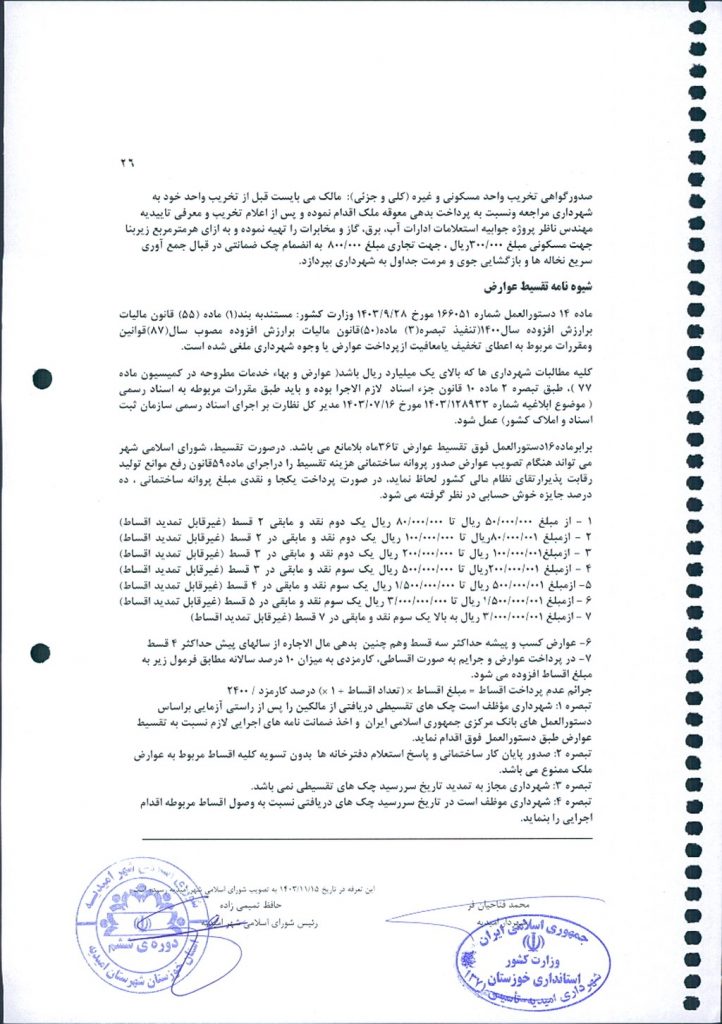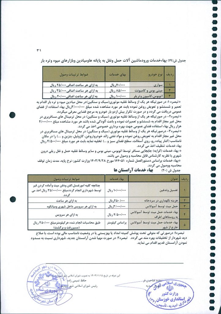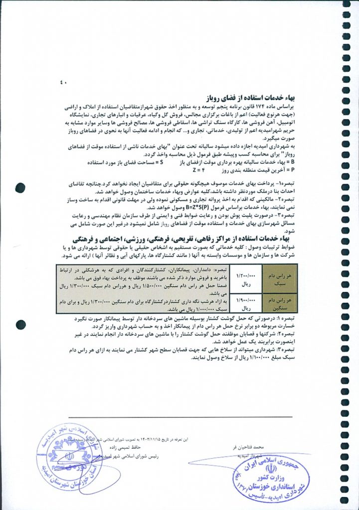 مصوبه شماره ۱ جلسه شماره ۸۲ شورای اسلامی شهر امیدیه