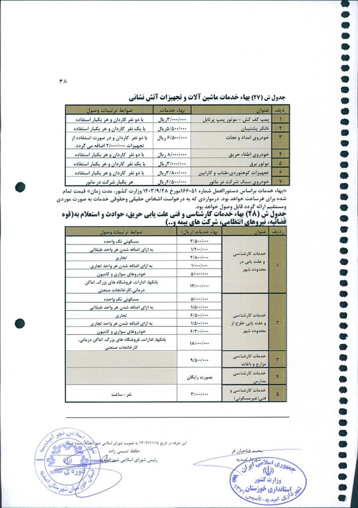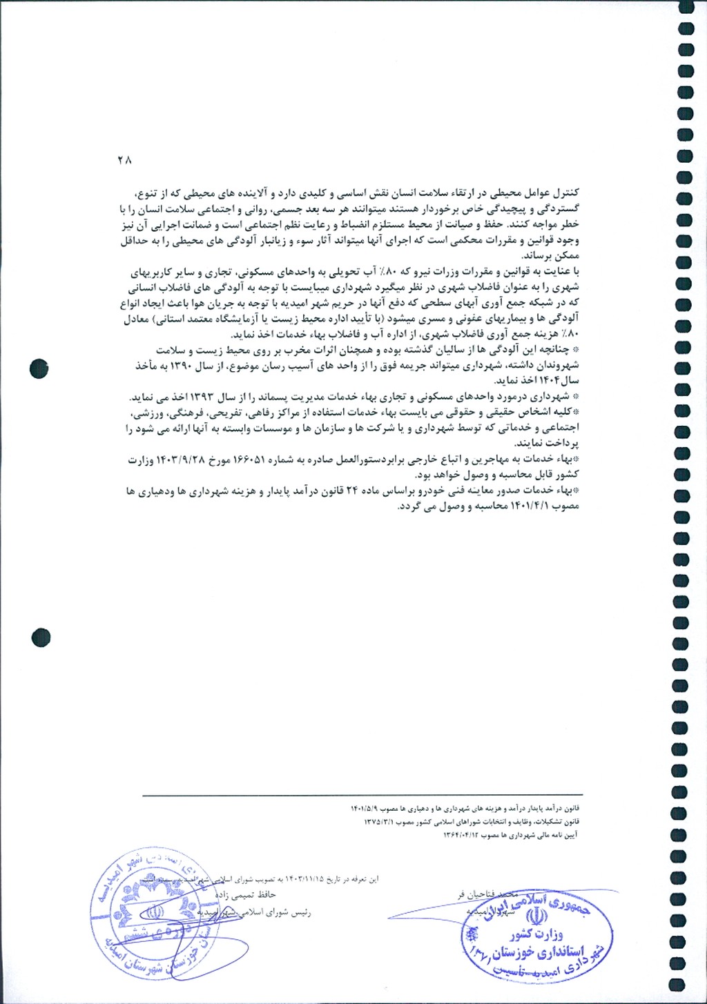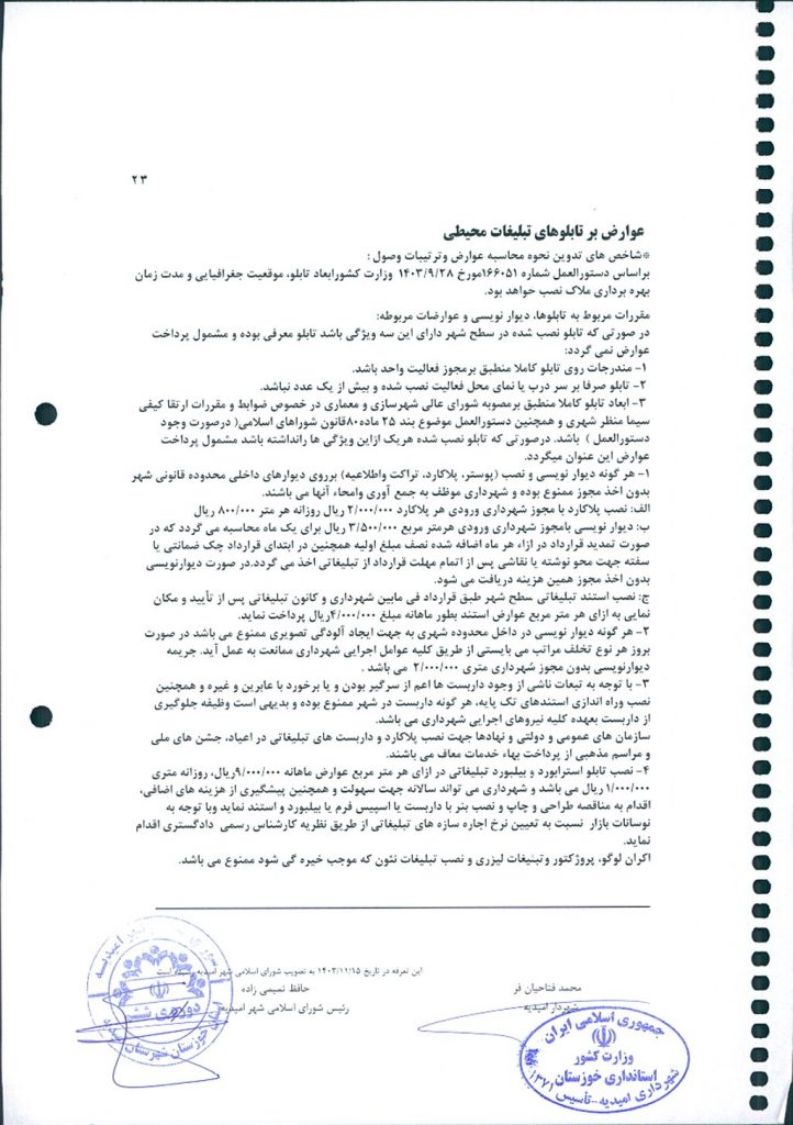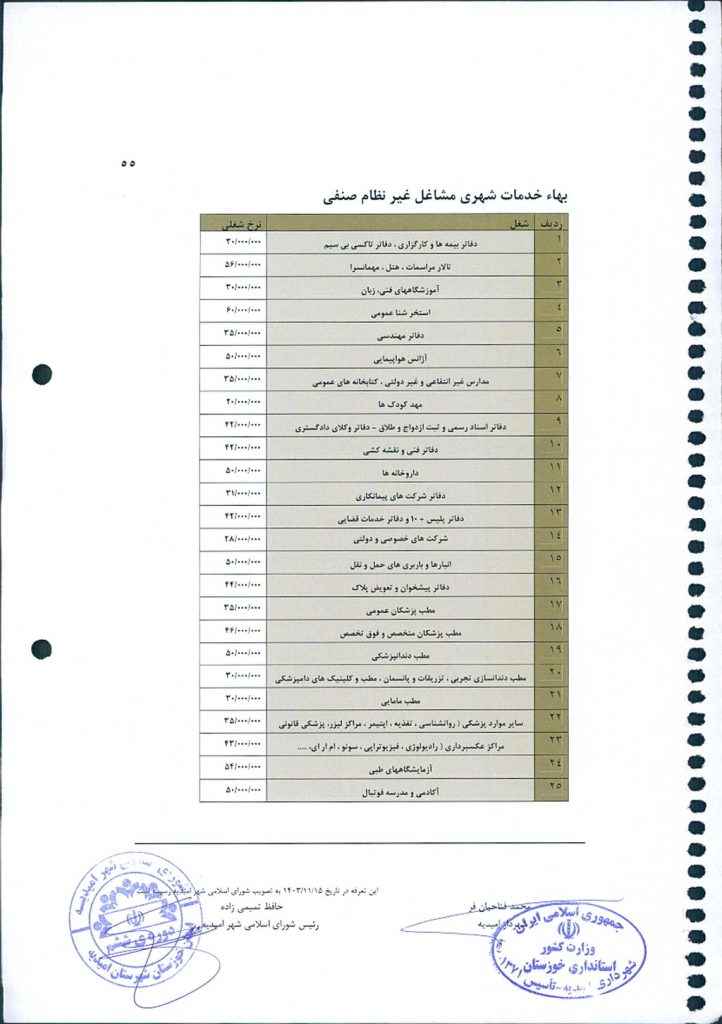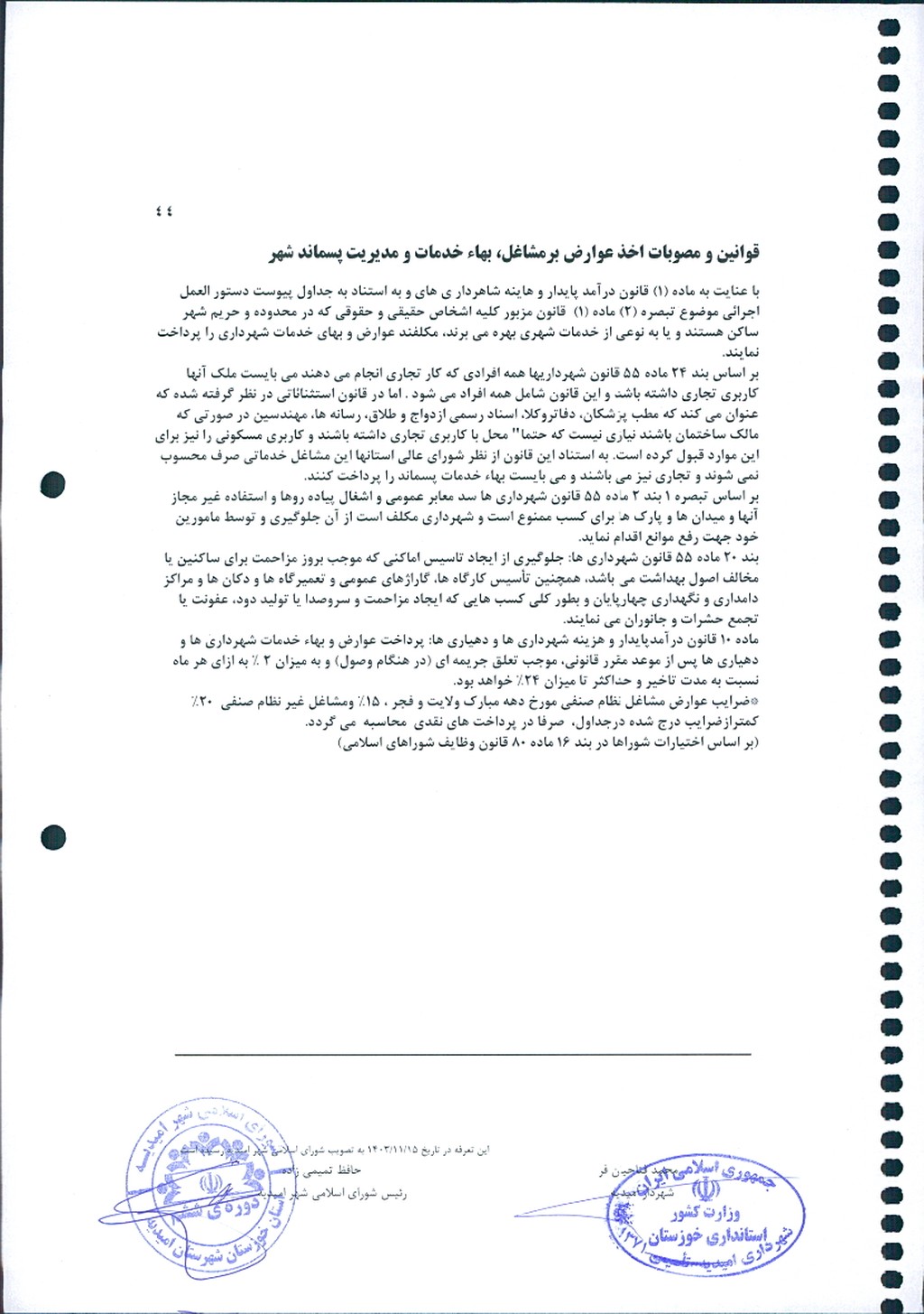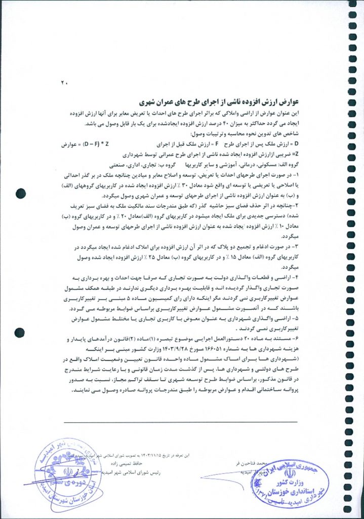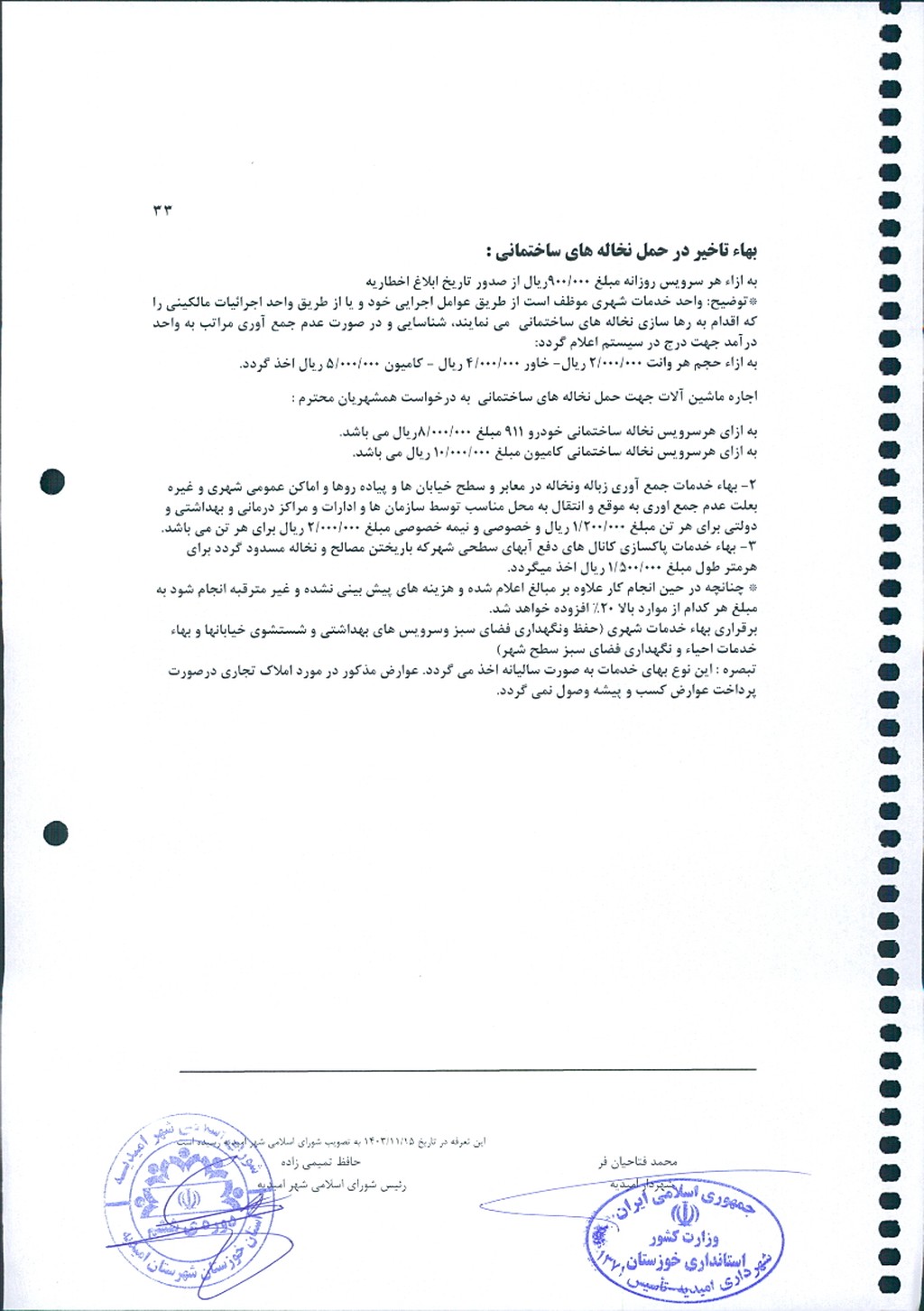 مصوبه شماره ۱ جلسه شماره ۸۲ شورای اسلامی شهر امیدیه