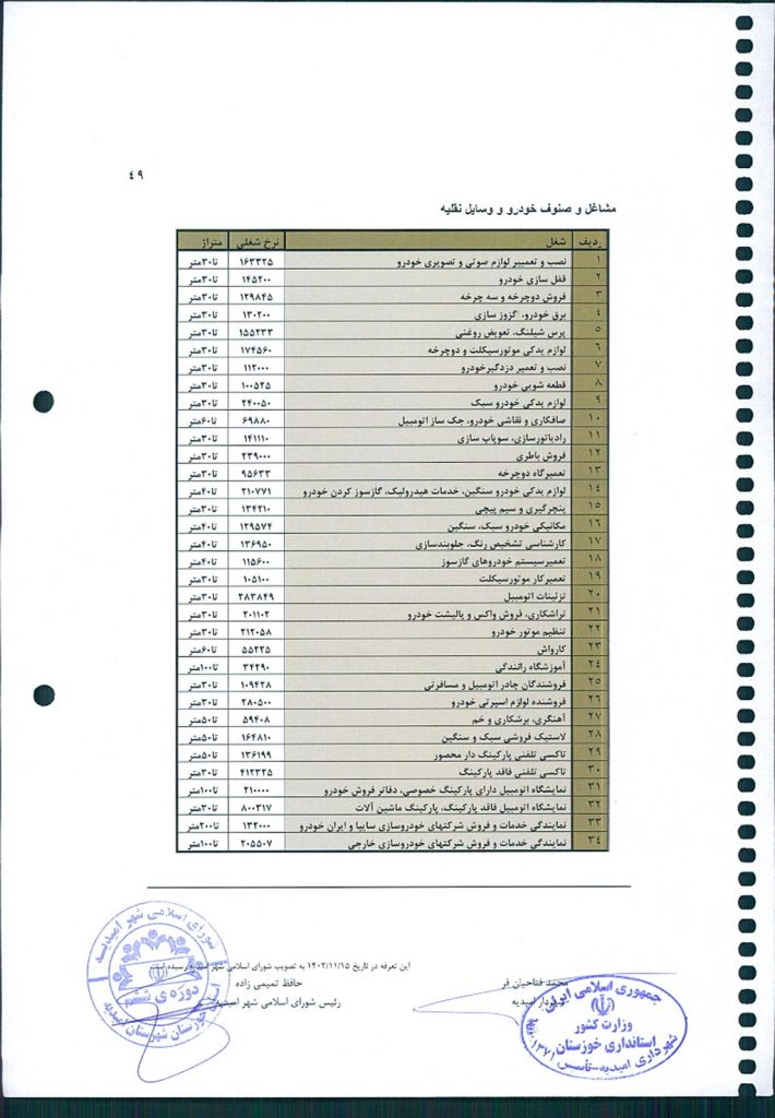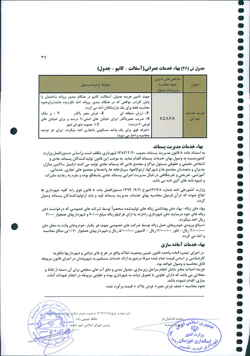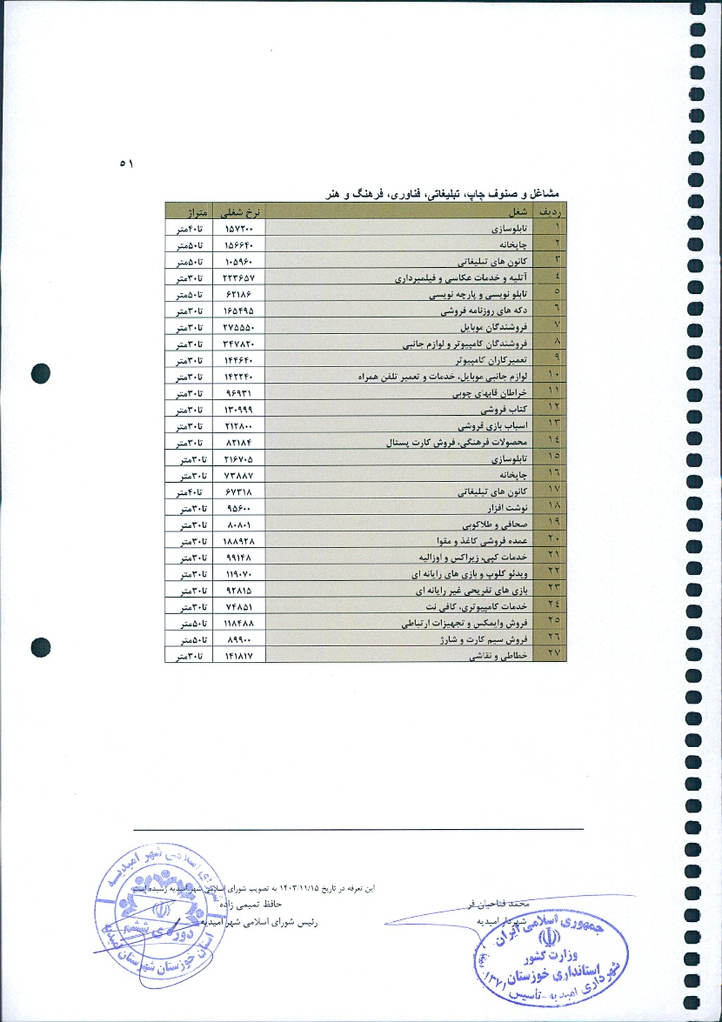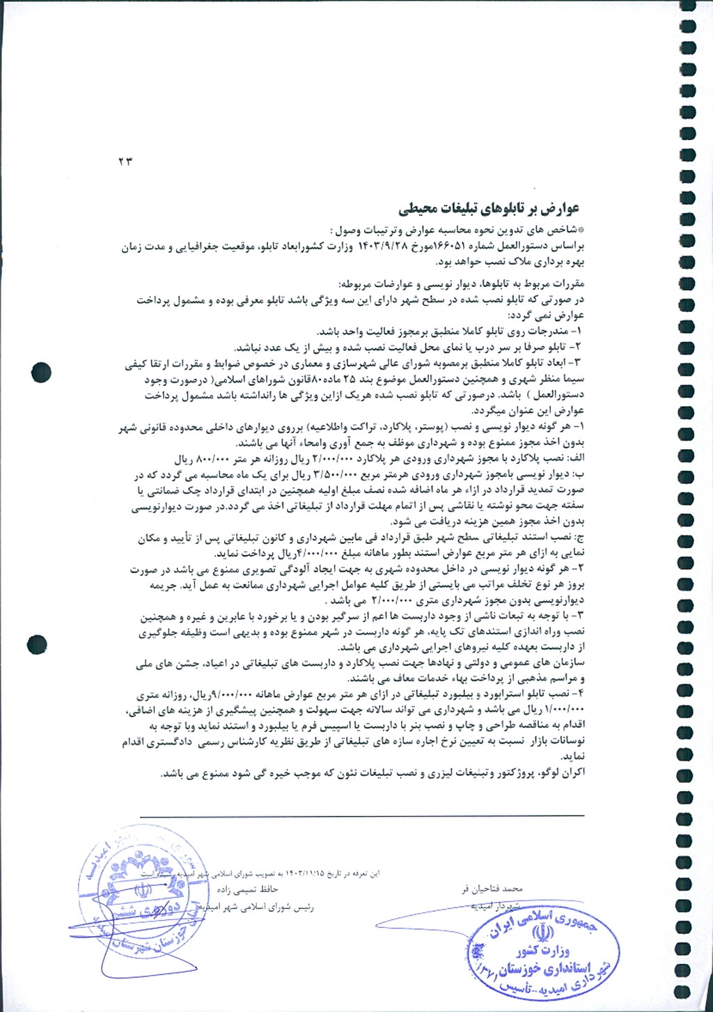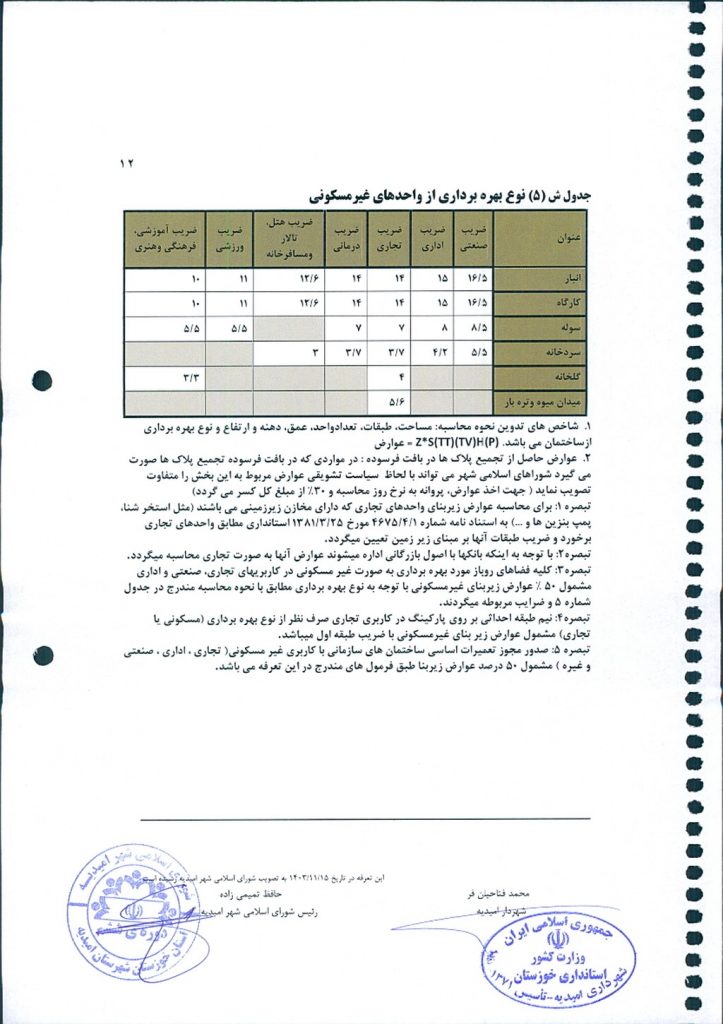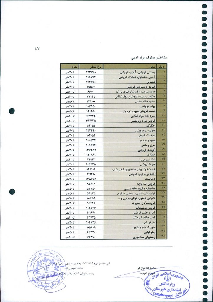 مصوبه شماره ۱ جلسه شماره ۸۲ شورای اسلامی شهر امیدیه