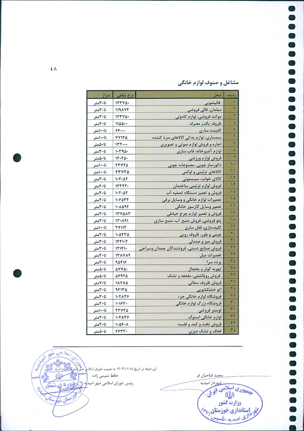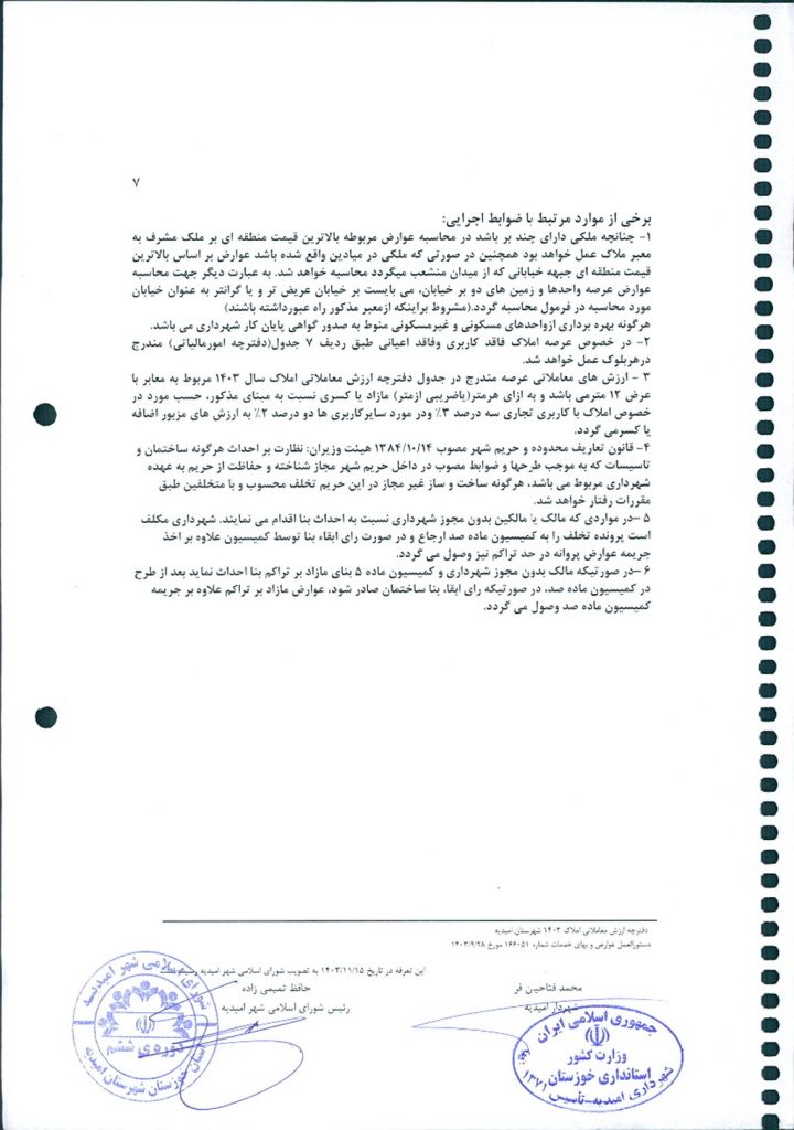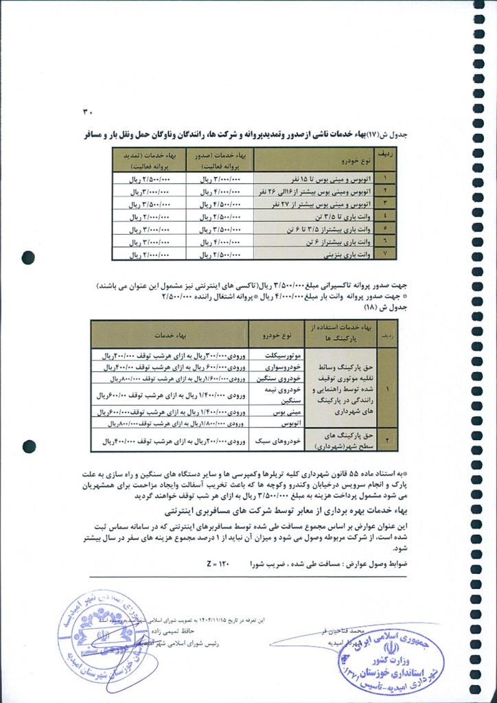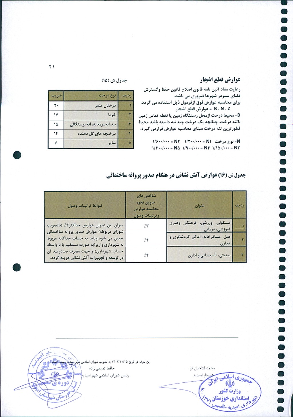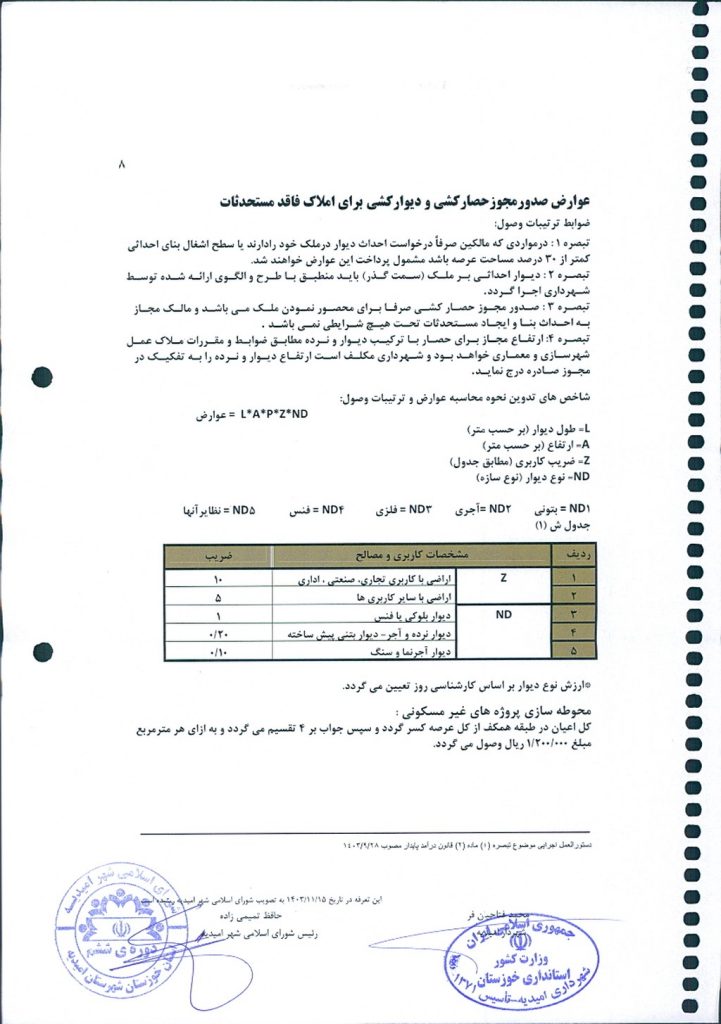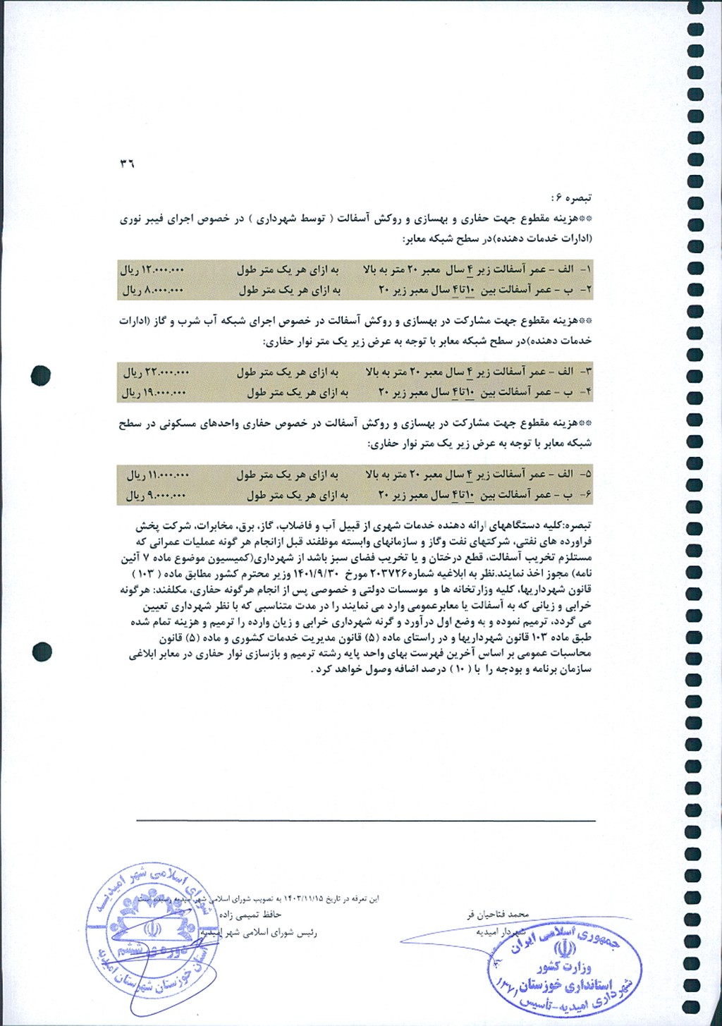 مصوبه شماره ۱ جلسه شماره ۸۲ شورای اسلامی شهر امیدیه