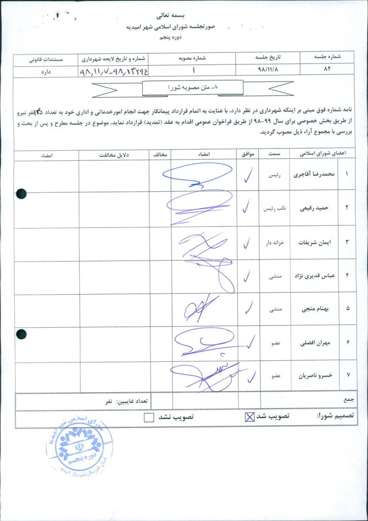 مصوبه شماره ۱جلسه شماره ۸۲ شورای اسلامی شهر امیدیه