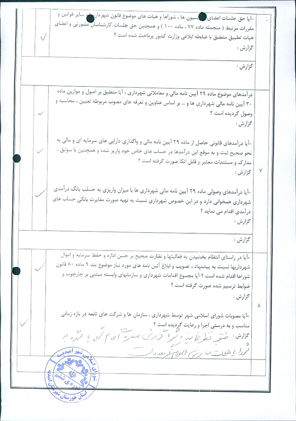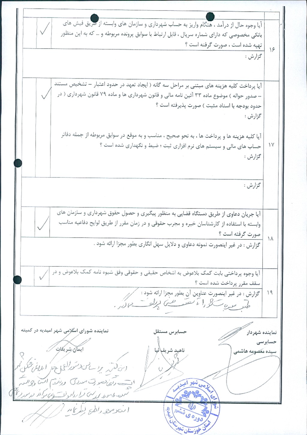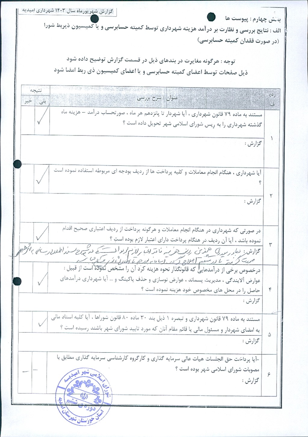 با توجه به ارائه گزارش عملکرد درآمد – هزینه شهریور ماه سال ۱۴۰۳ شهرداری امیدیه توسط کمیته حسابرسی ، موضوع در جلسه مطرح و پس از بحث و بررسي با مجموع آراء ذيل مصوب گرديد.