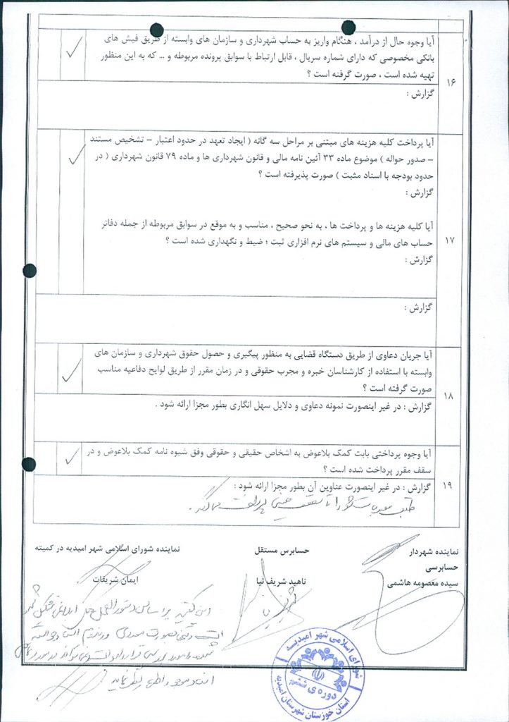 مصوبه شماره ۱ جلسه شماره ۸۳ شورای اسلامی شهر امیدیه