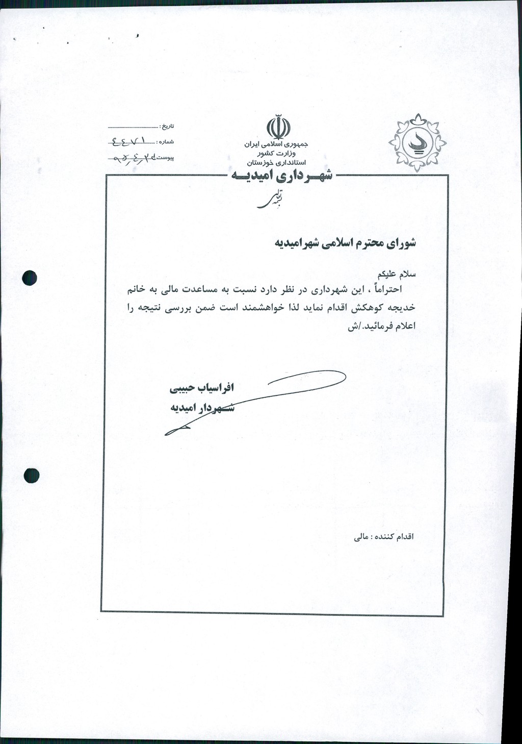 نویسنده شورای اسلامی شهر امیدیه