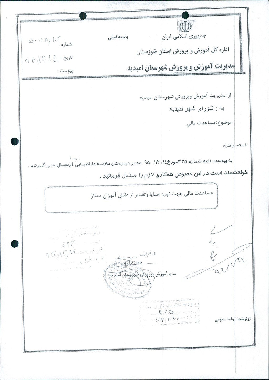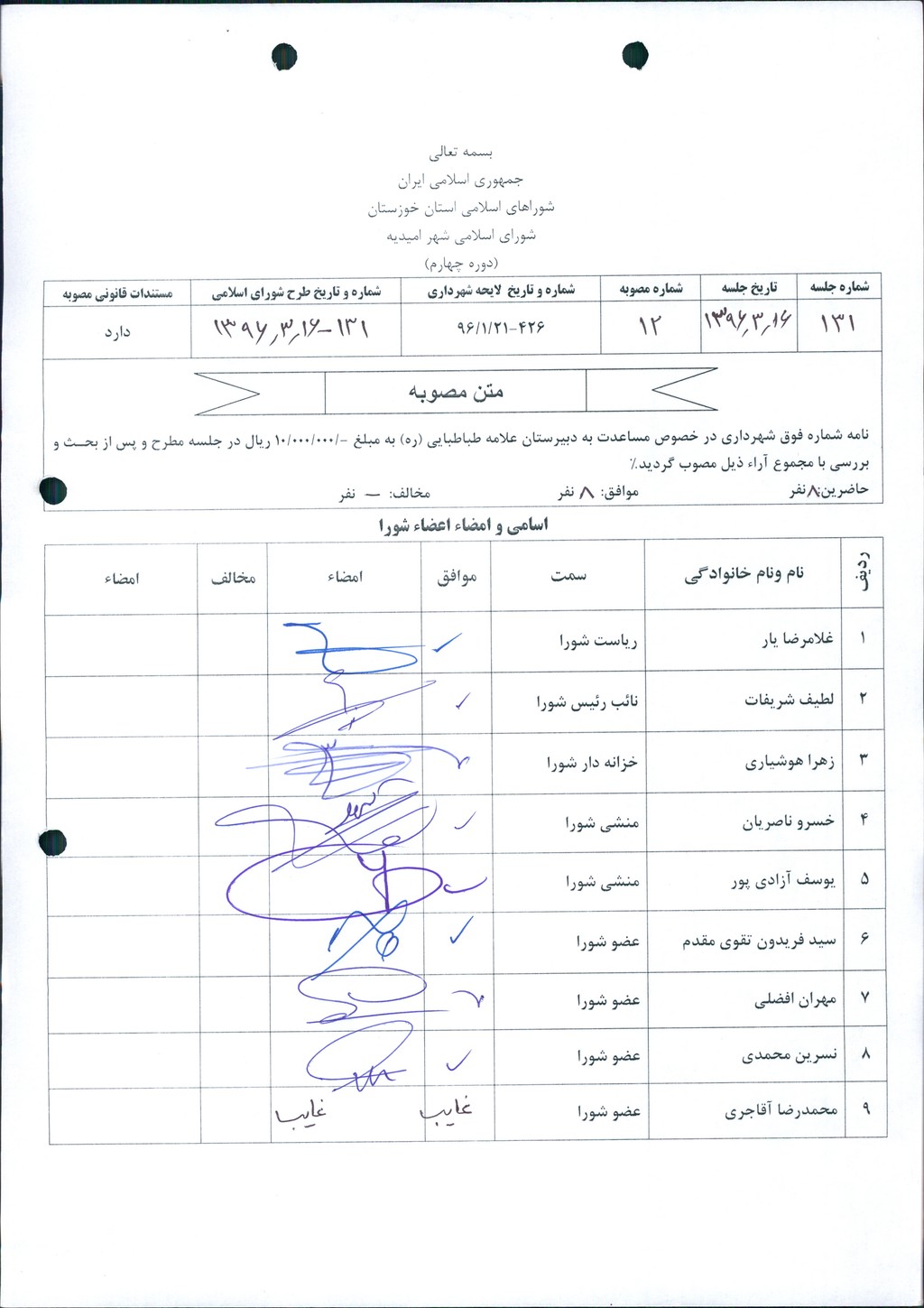مصوبه شماره ۱۲ جلسه شماره ۱۳۱ شورای اسلامی شهر امیدیه
