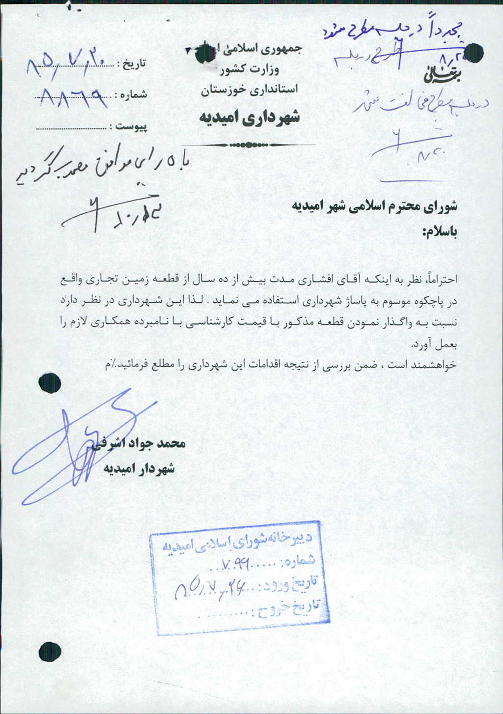 بسم الله الرحمن الرحیم مصوبه شماره ۱۲ جلسه شماره ۱۵۷ شورای اسلامی شهر امیدیه