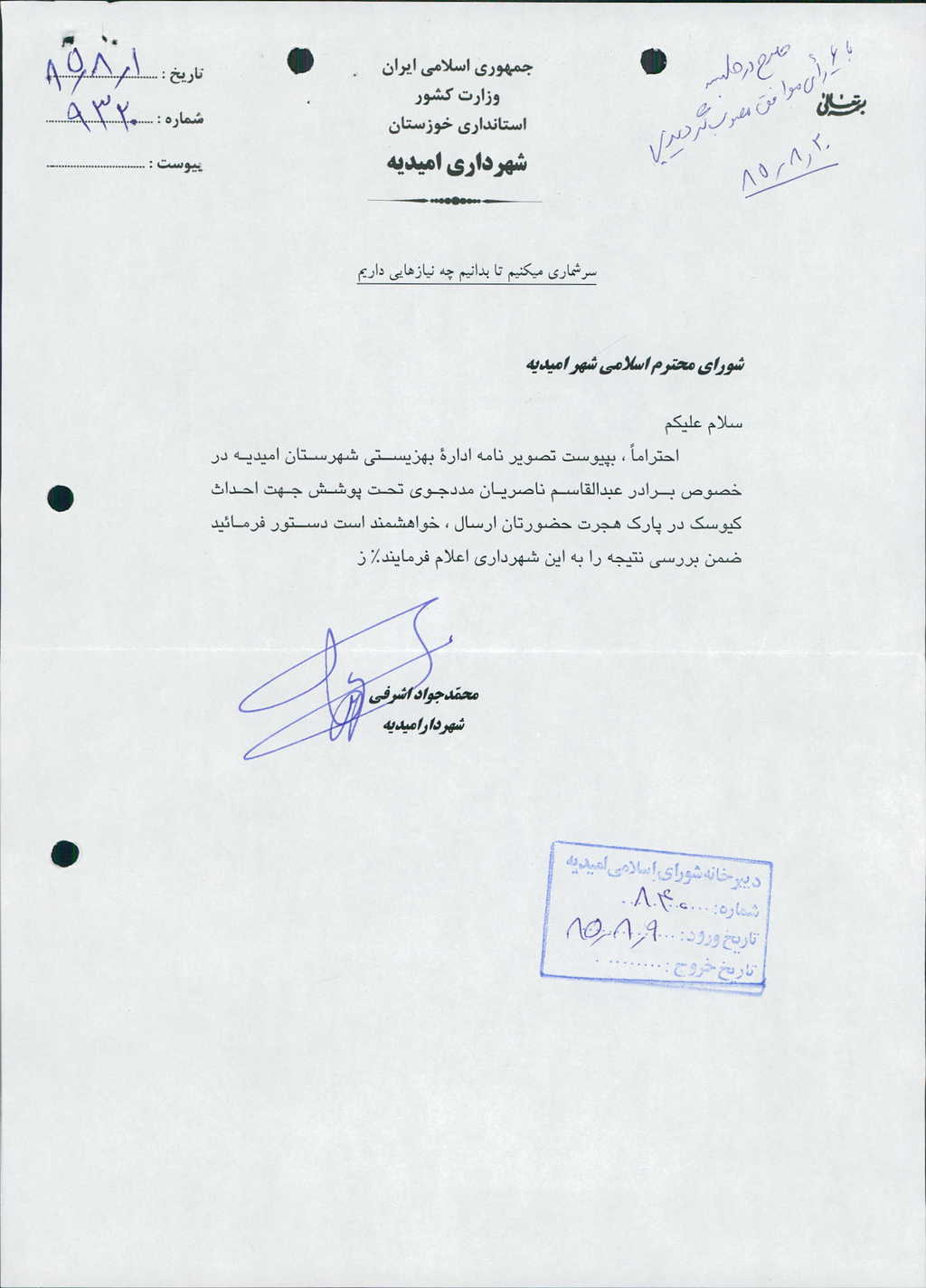 بسم الله الرحمن الرحیم مصوبه شماره ۱۳ جلسه شماره ۱۵۶ شورای اسلامی شهر امیدیه