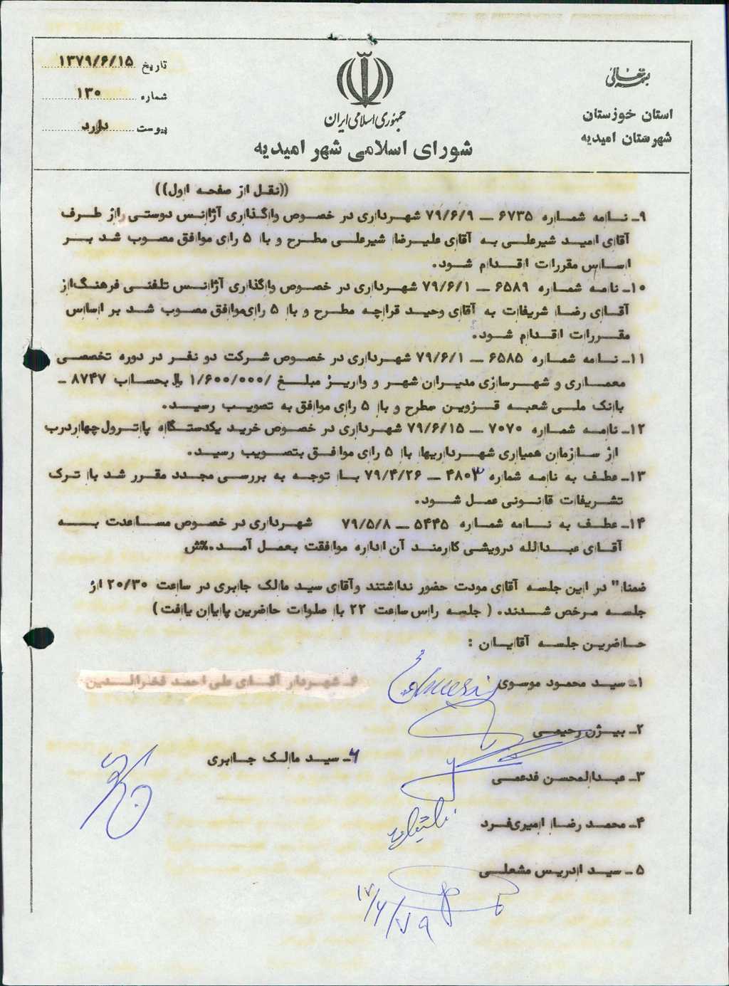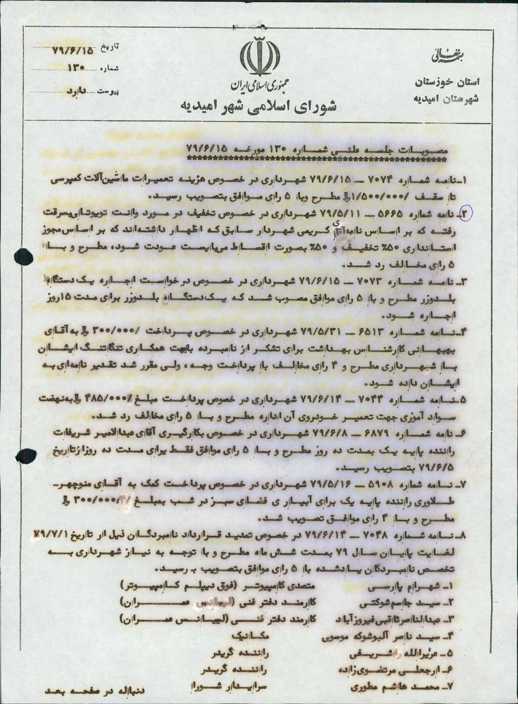 بسم الله الرحمن الرحیم مصوبه شماره ۱۴ جلسه شماره ۱۳۰ شورای اسلامی شهر امیدیه
