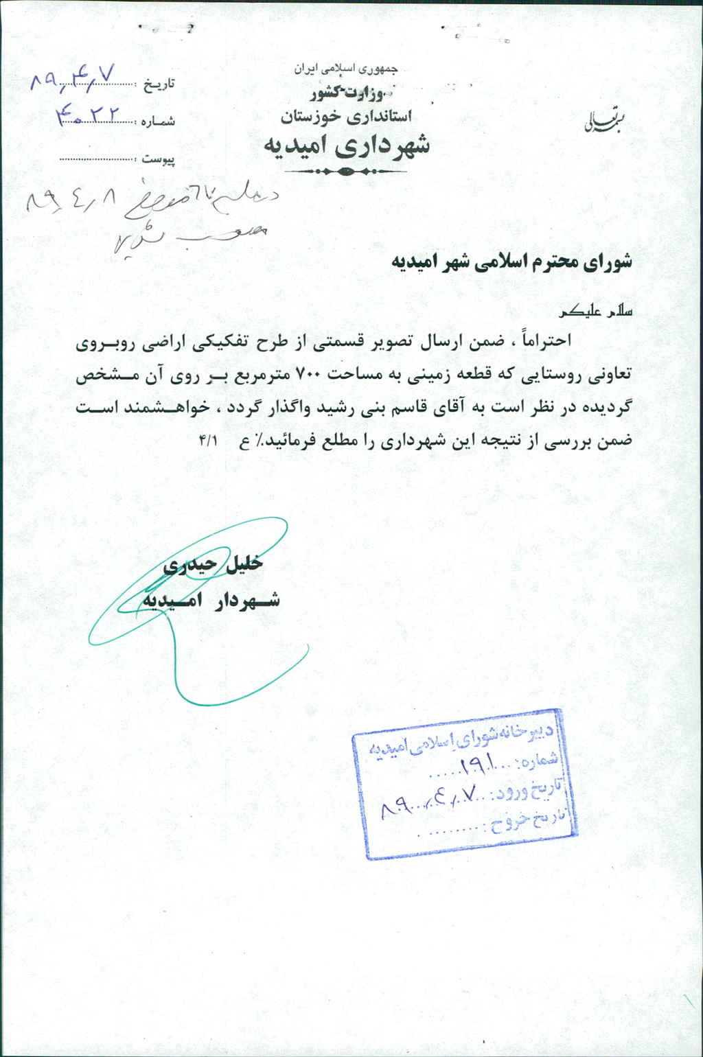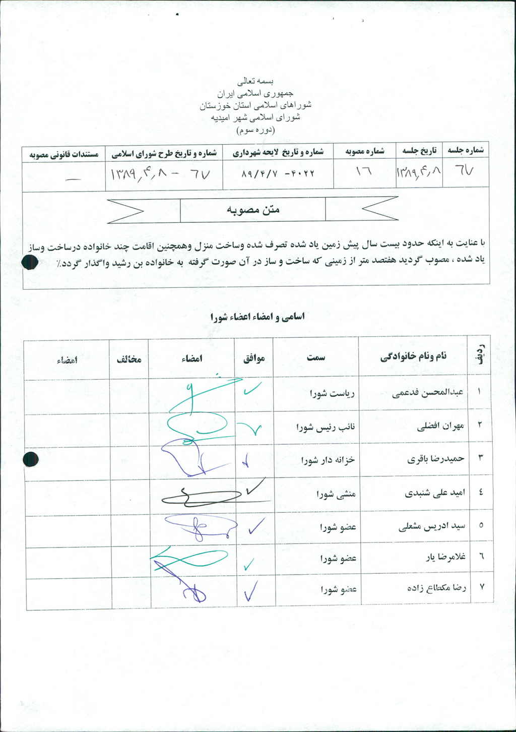 مصوبه شماره ۱۶ جلسه شماره ۶۷ شورای اسلامی شهر امیدیه