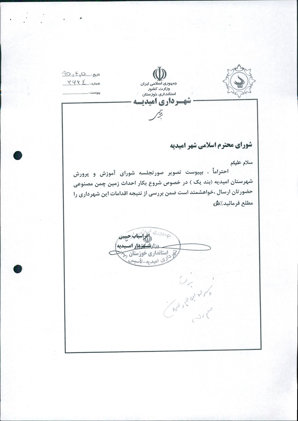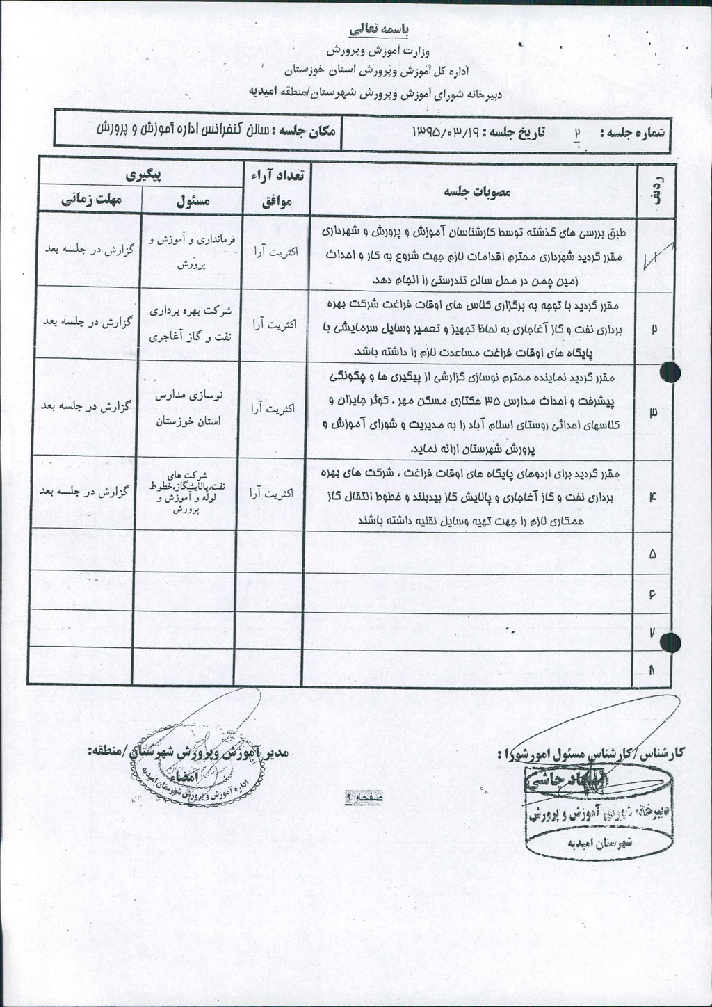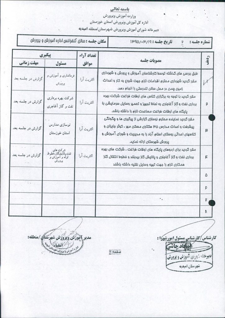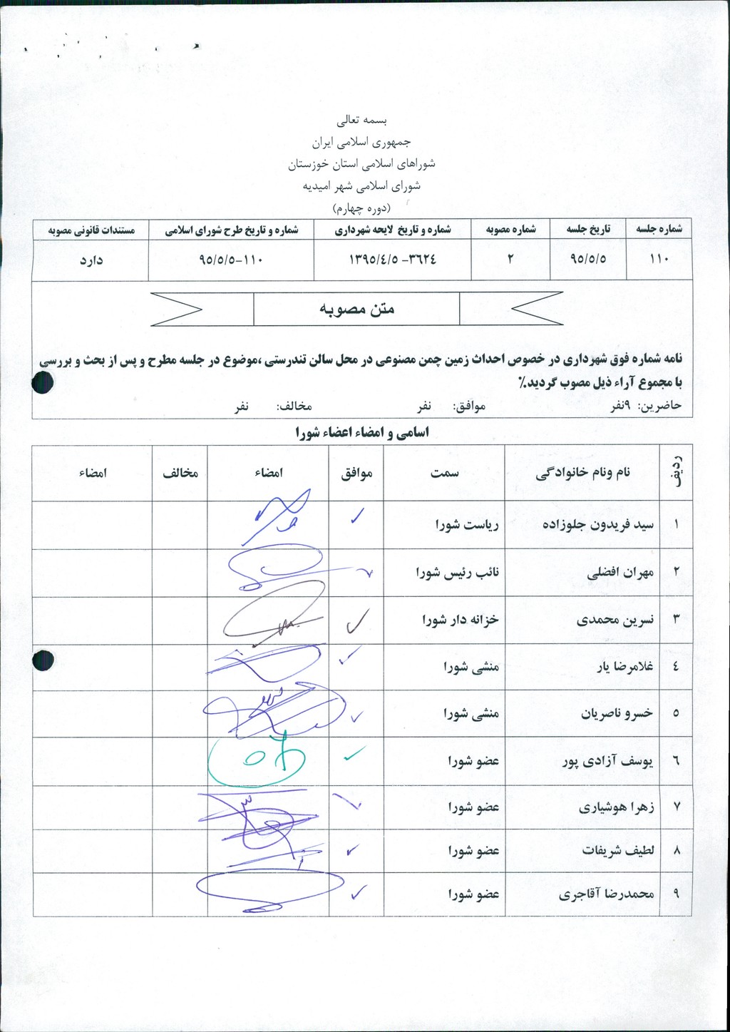 بسم الله الرحمن الرحیم مصوبه شماره ۲ جلسه شماره ۱۱۰ شورای اسلامی شهر امیدیه