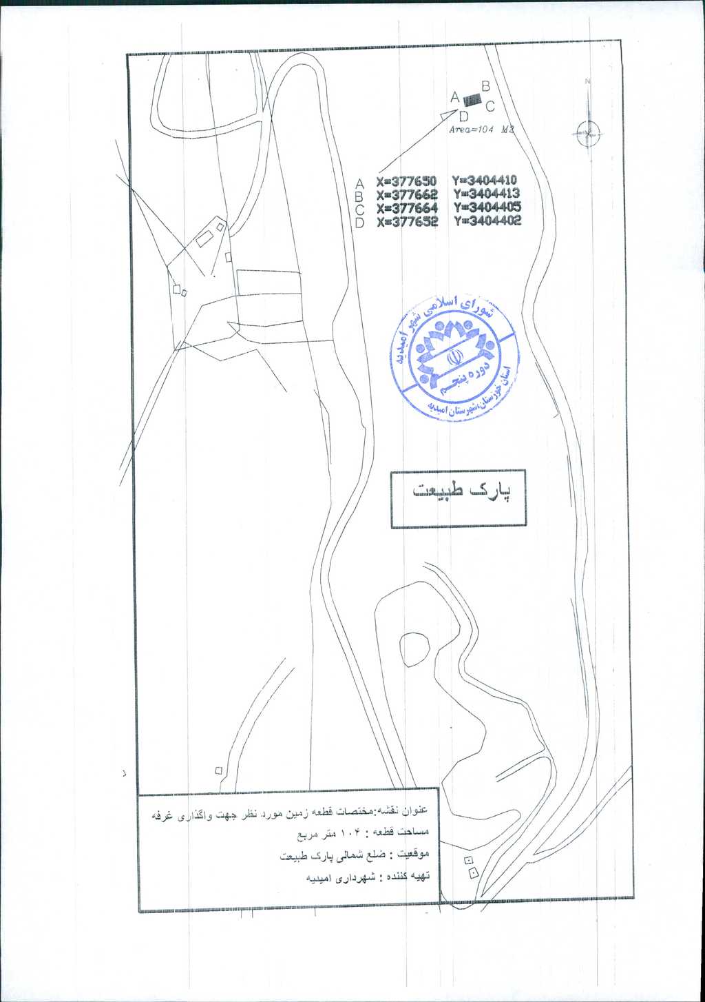 نامه شماره فوق شهرداری مبنی بر اختصاص زمینی به مساحت ۱۰۴ مترمربع طبق مختصات ارائه شده(نقشه پیوست) جهت احداث غرفه تجاری واقع در ضلع شمالی پارک کوهستانی طبیعت از طریق مزایده عمومی به بخش خصوصی در جلسه مطرح و پس از بحث و بررسی با مجموع آراء ذیل مصوب گردید.