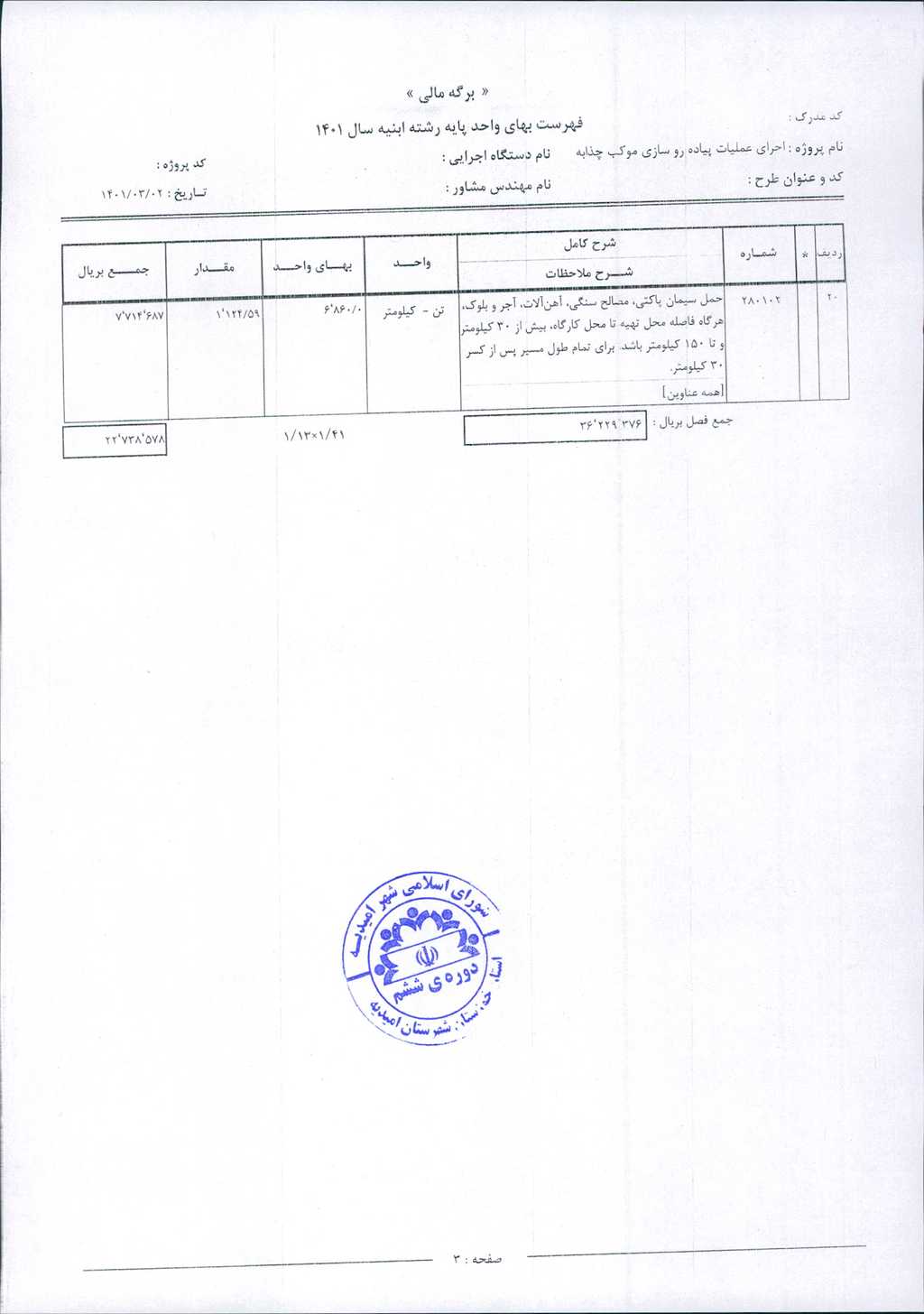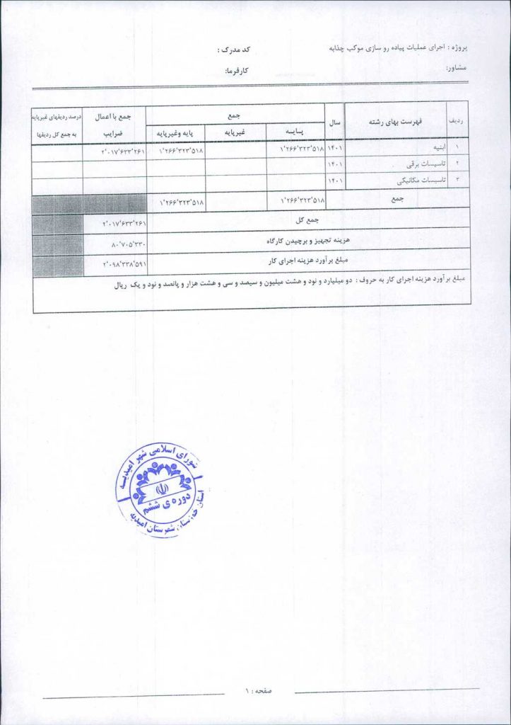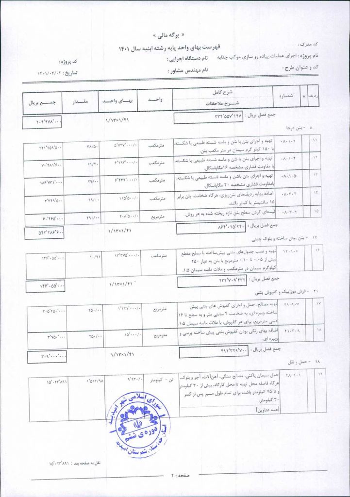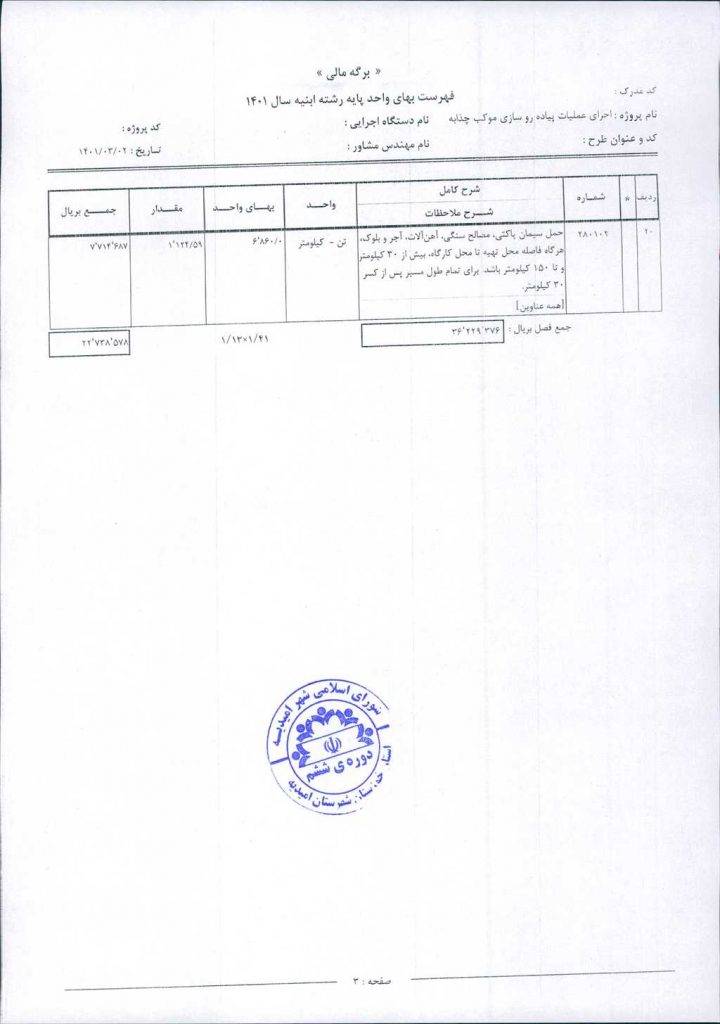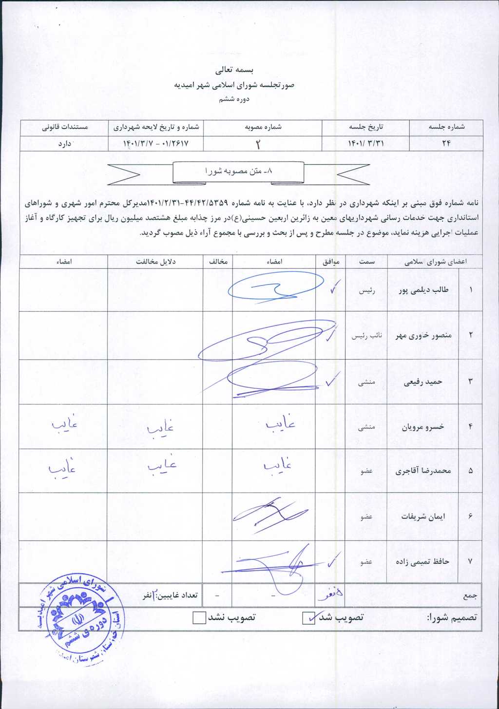 مصوبه شماره ۲ جلسه شماره ۲۴ شورای اسلامی شهر امیدیه