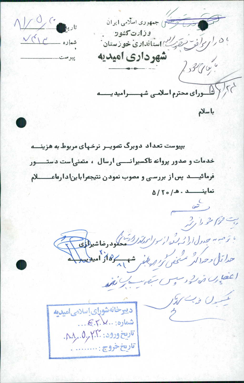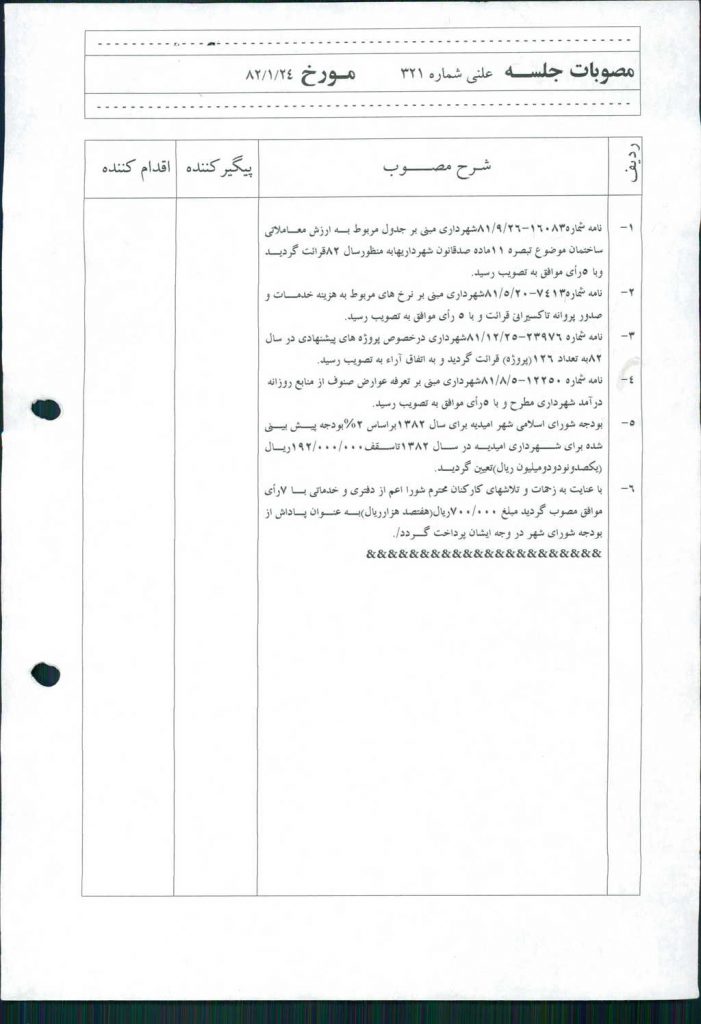 بسم الله الرحمن الرحیم مصوبه شماره ۲ جلسه شماره ۳۲۱ شورای اسلامی شهر امیدیه