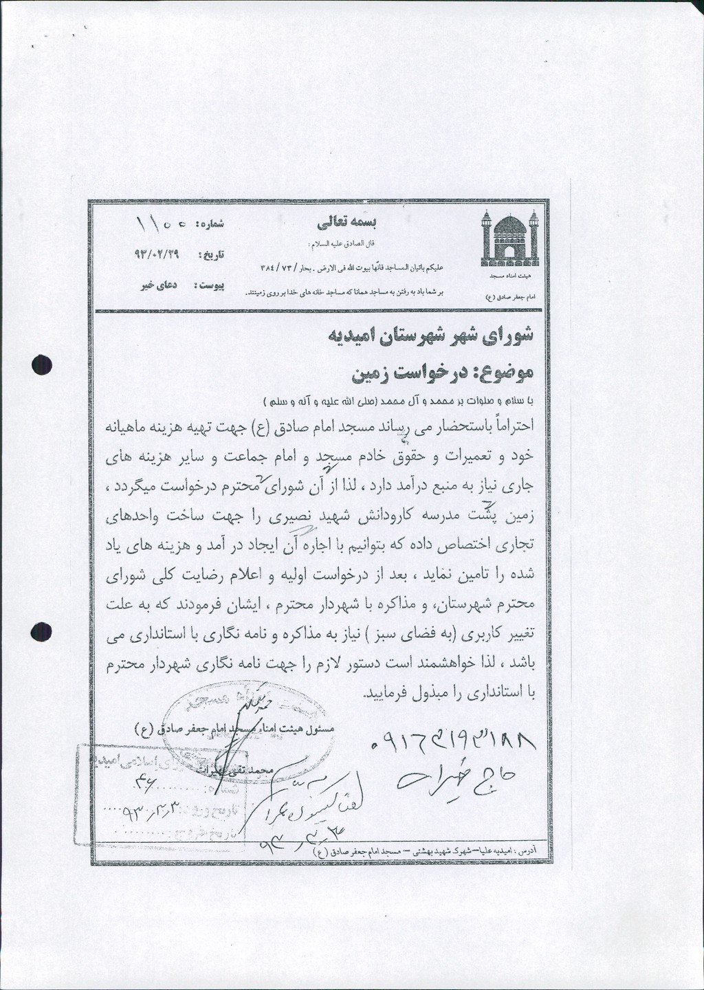 مصوبه شماره ۲ جلسه شماره ۴۱ شورای اسلامی شهر امیدیه