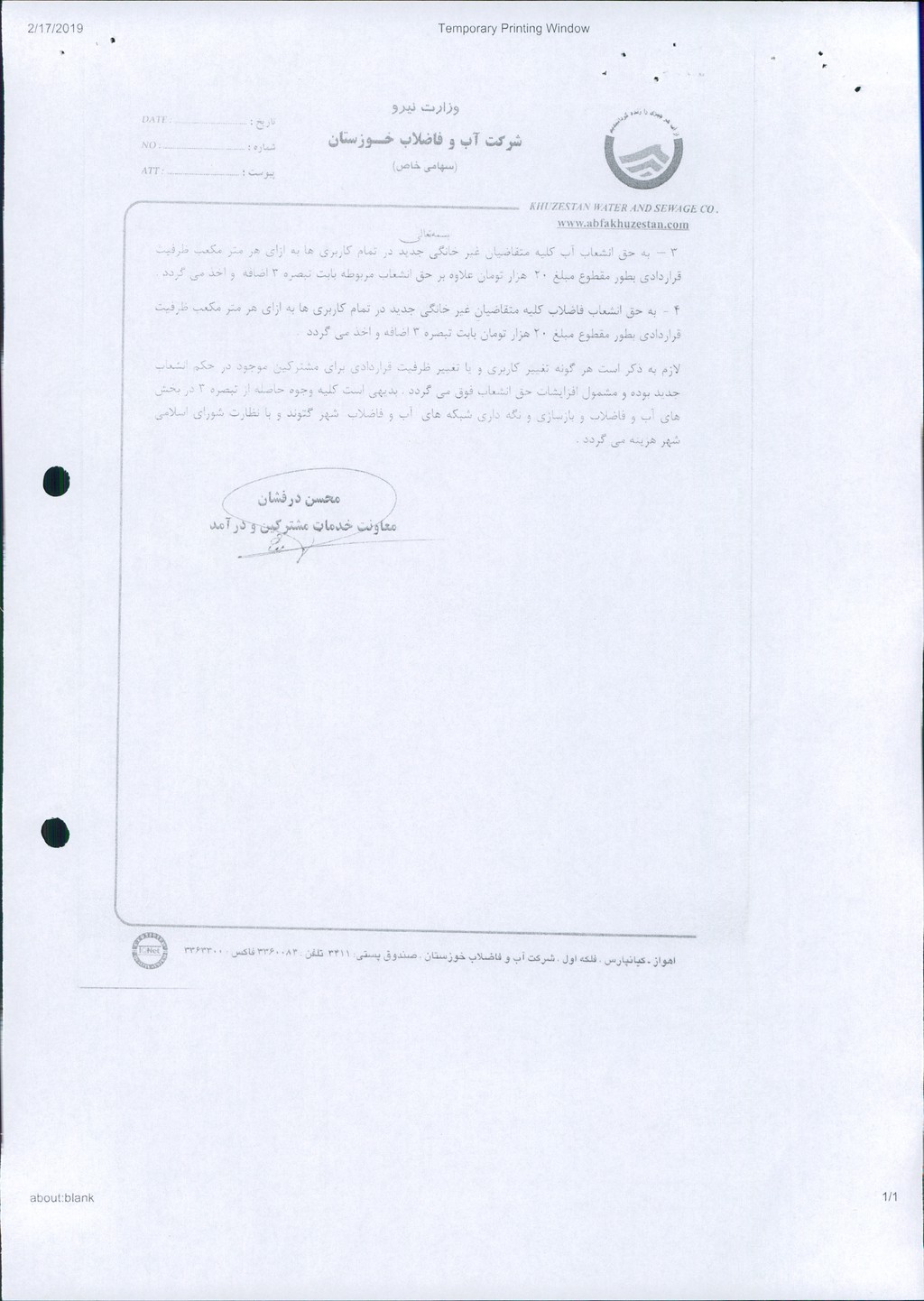 الف) آب بهاء و خدمات دفع فاضلاب: