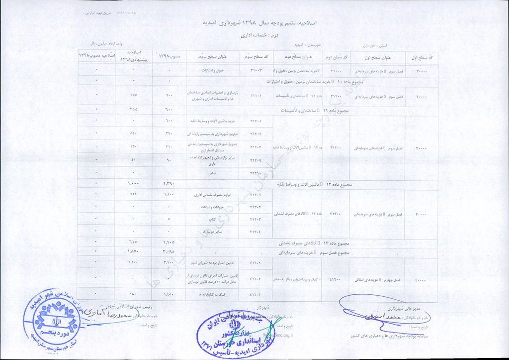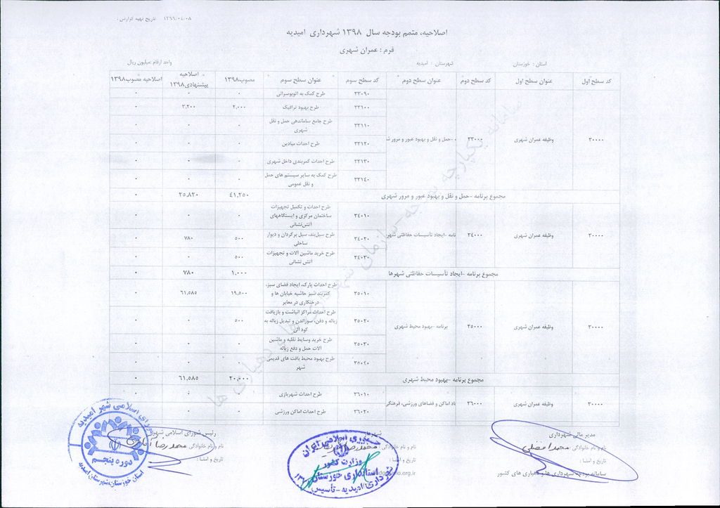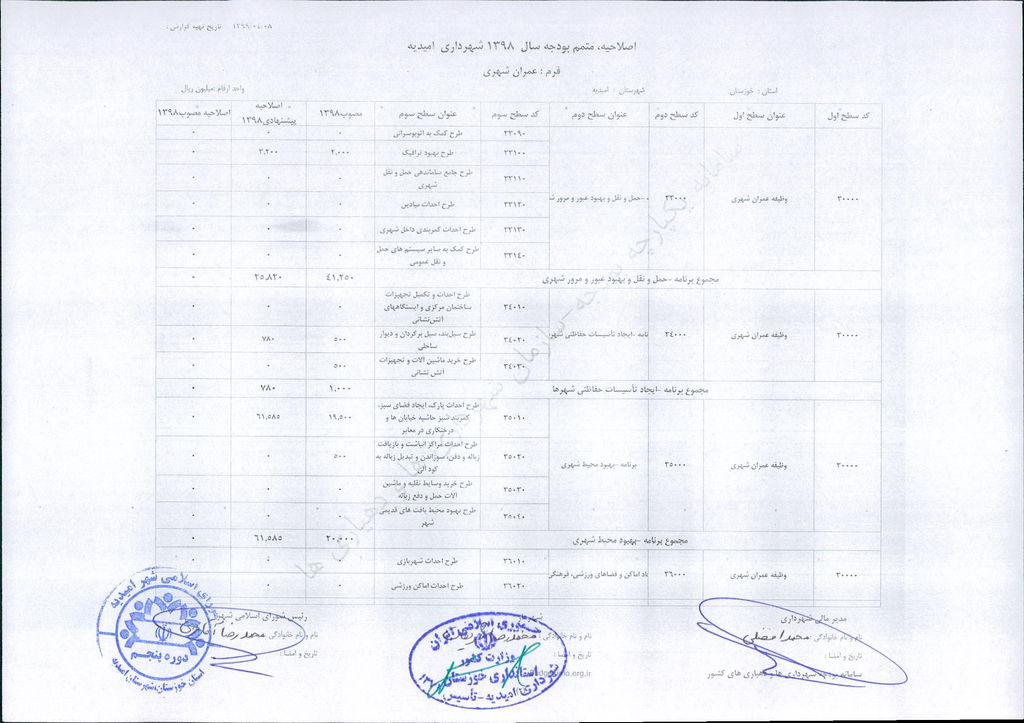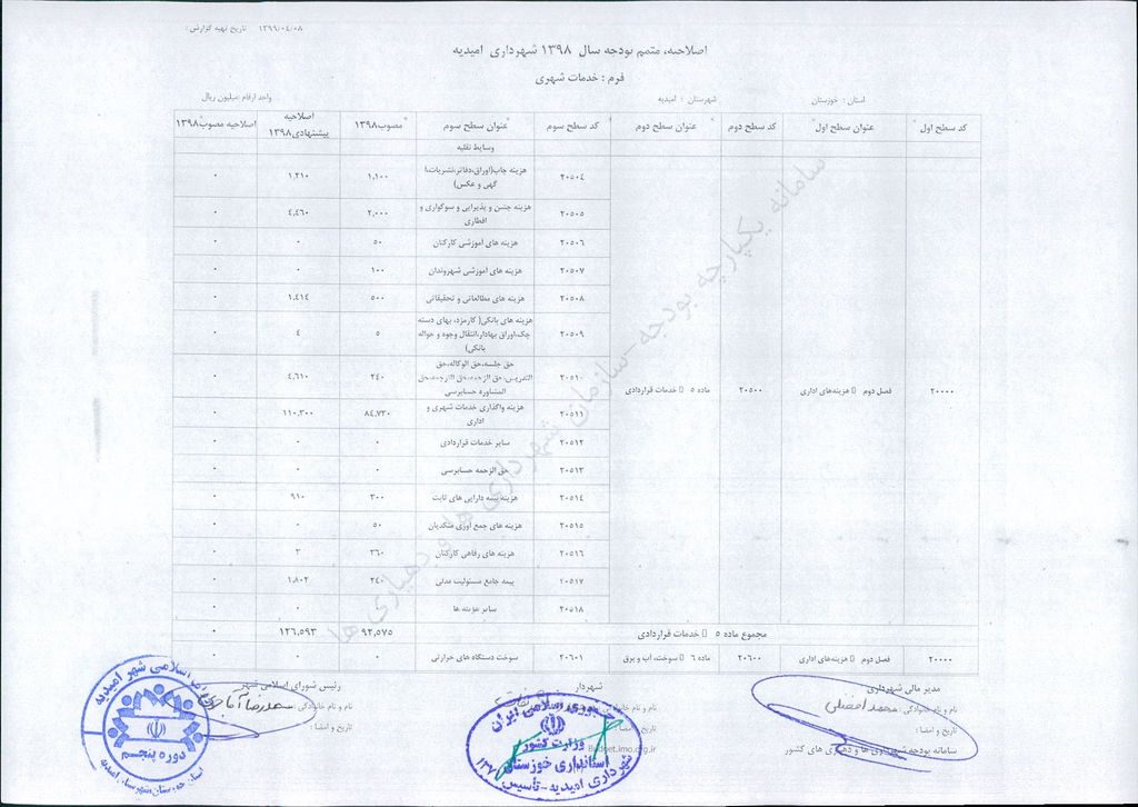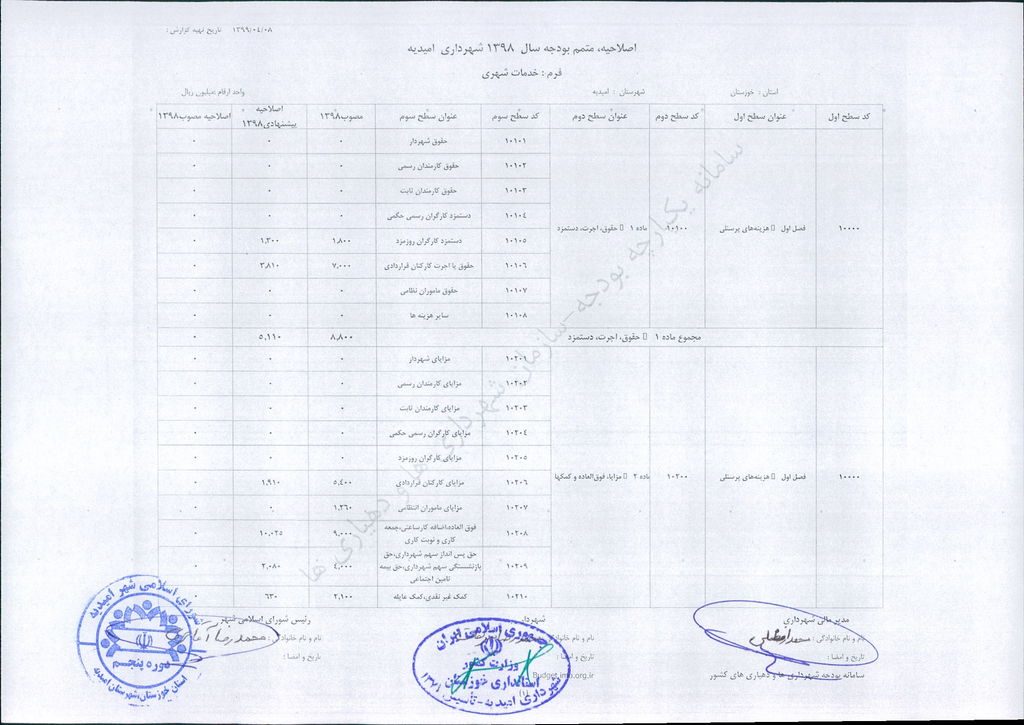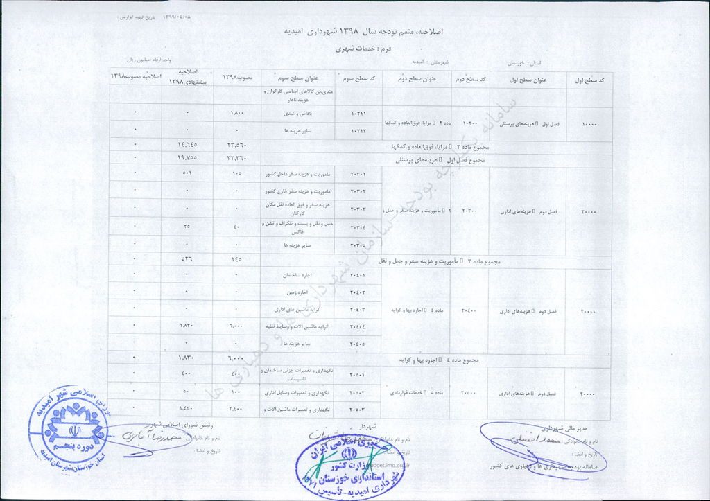 مصوبه شماره ۲ جلسه شماره ۹۲ شورای اسلامی شهر امیدیه