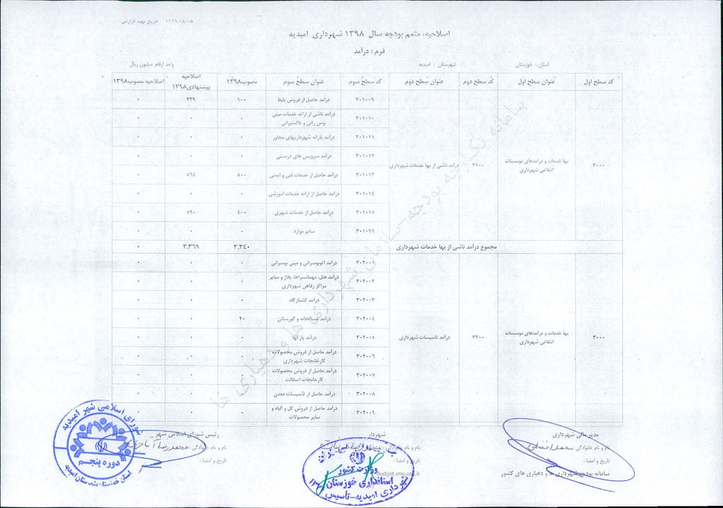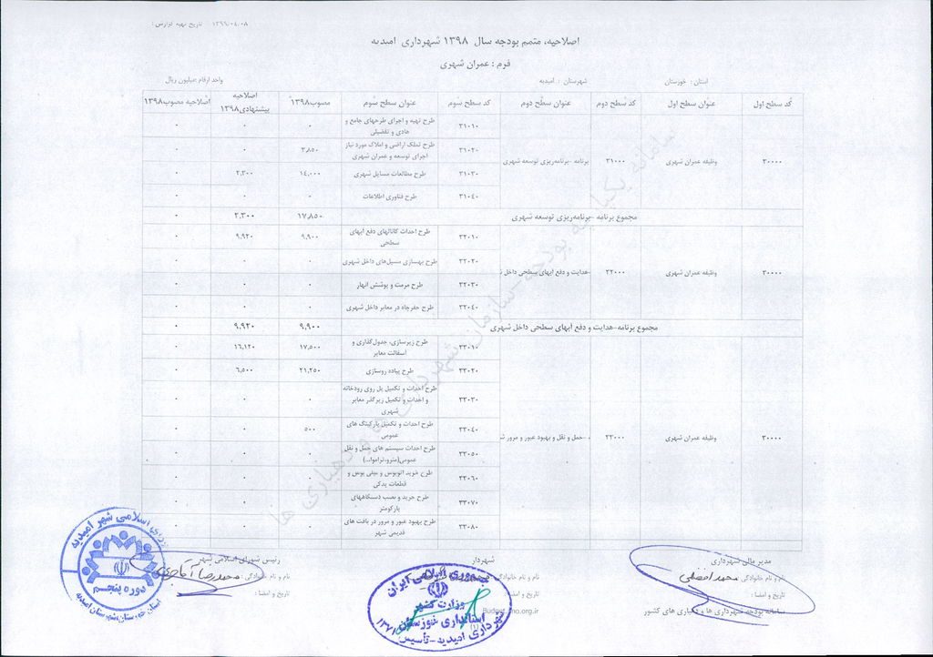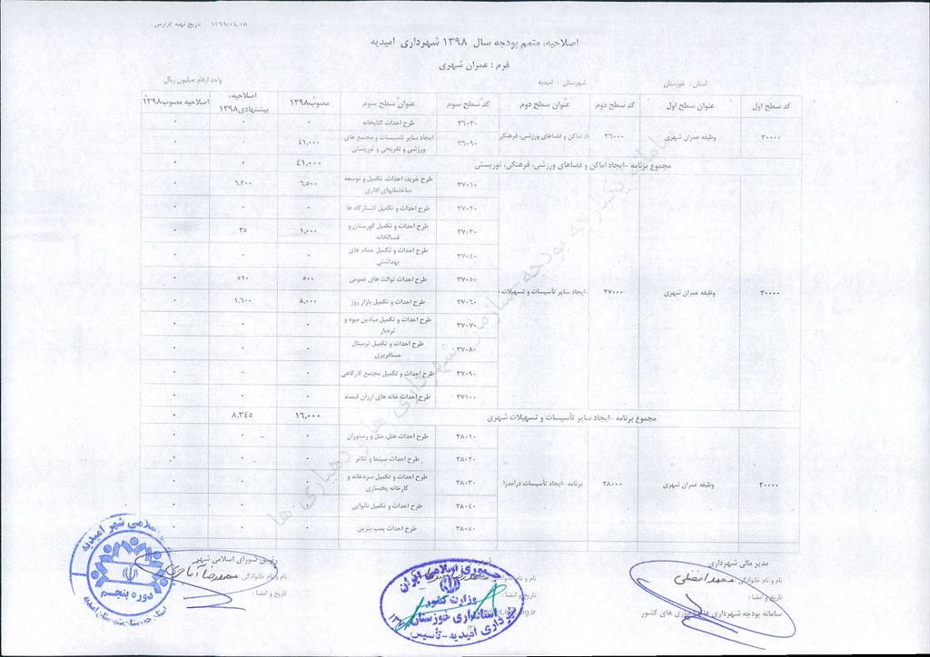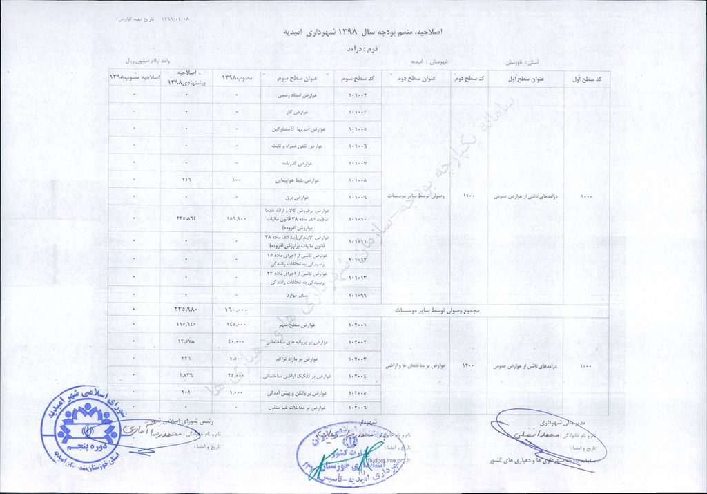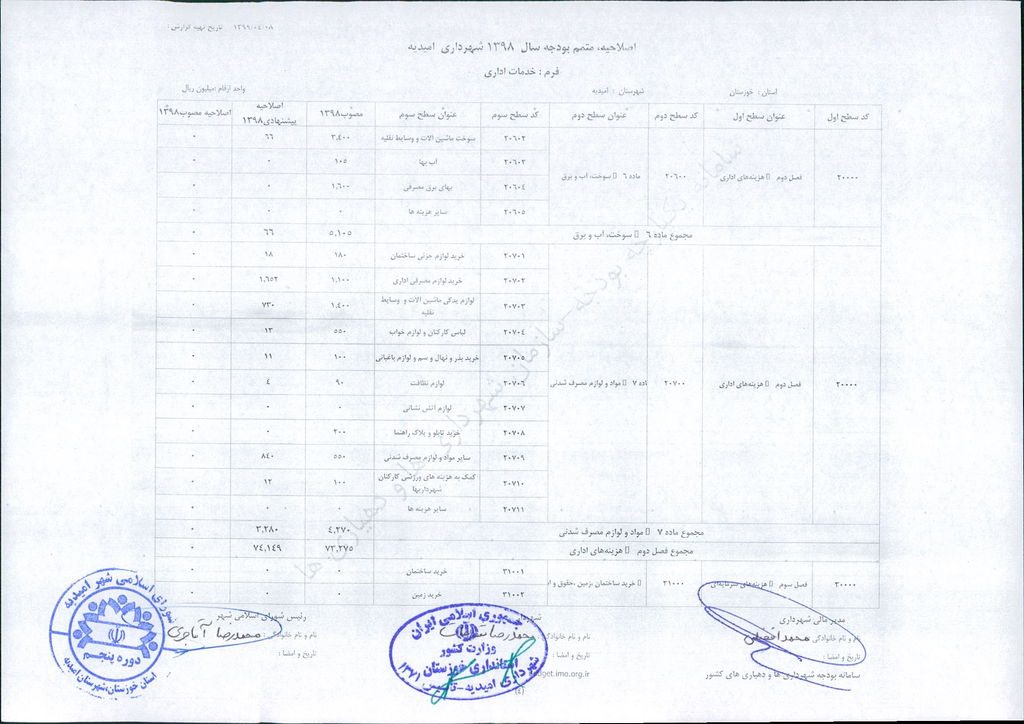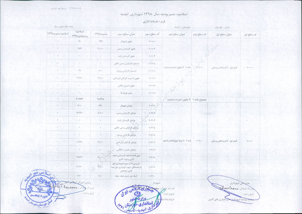 مصوبه شماره ۲ جلسه شماره ۹۲ شورای اسلامی شهر امیدیه