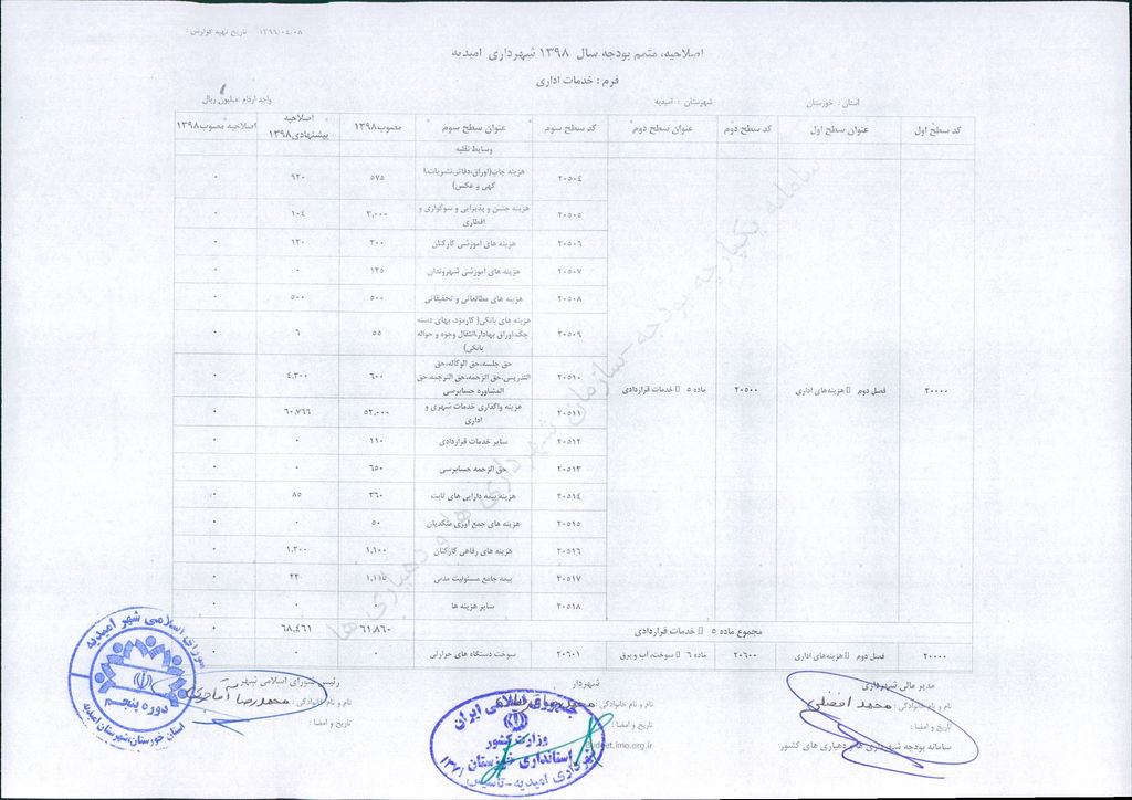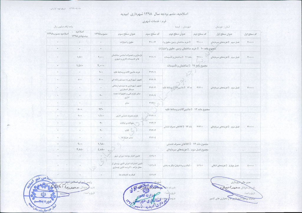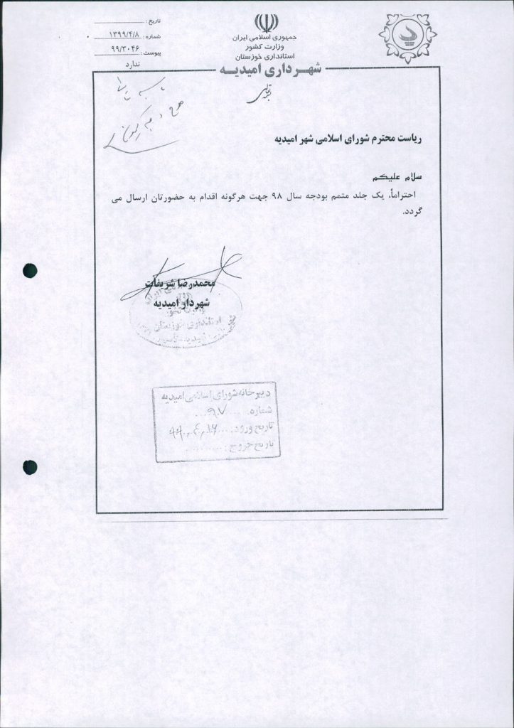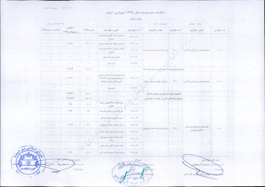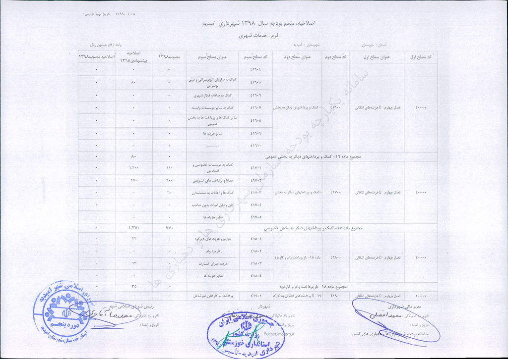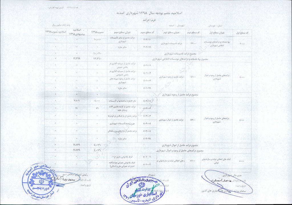 مصوبه شماره ۲ جلسه شماره ۹۲ شورای اسلامی شهر امیدیه