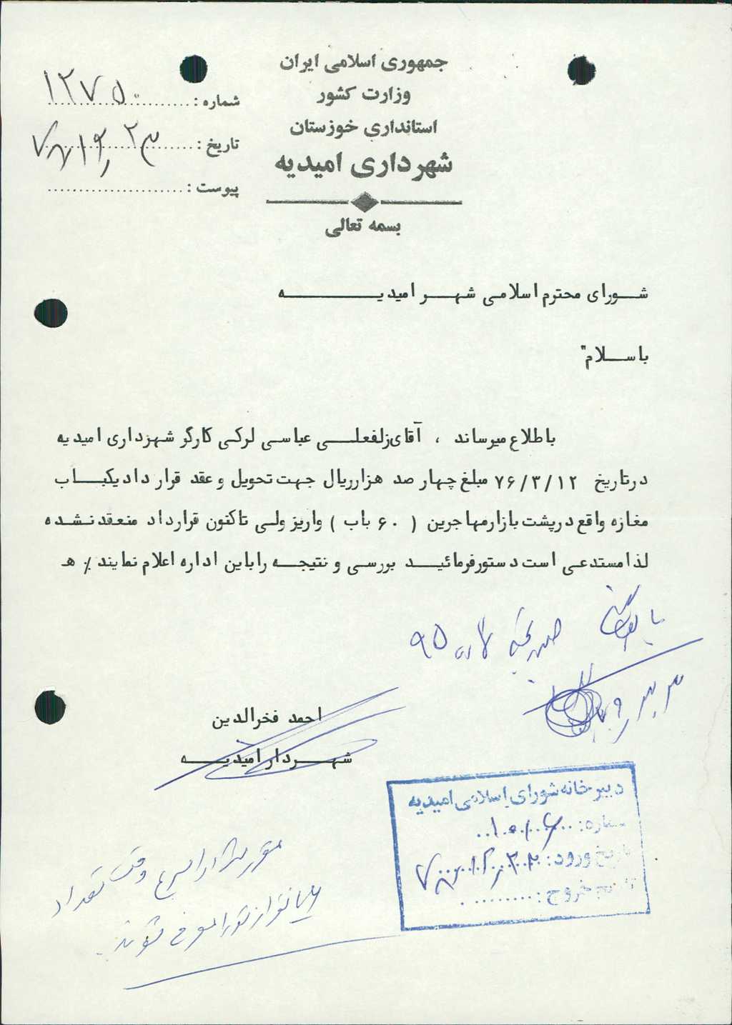 نویسنده شورای اسلامی شهر امیدیه