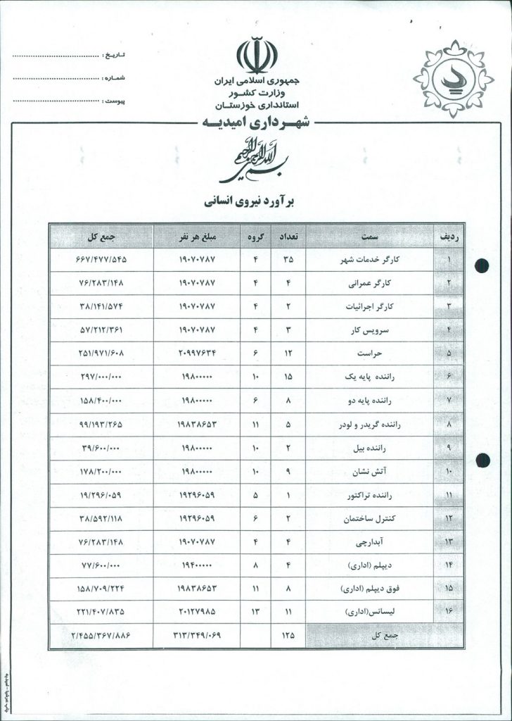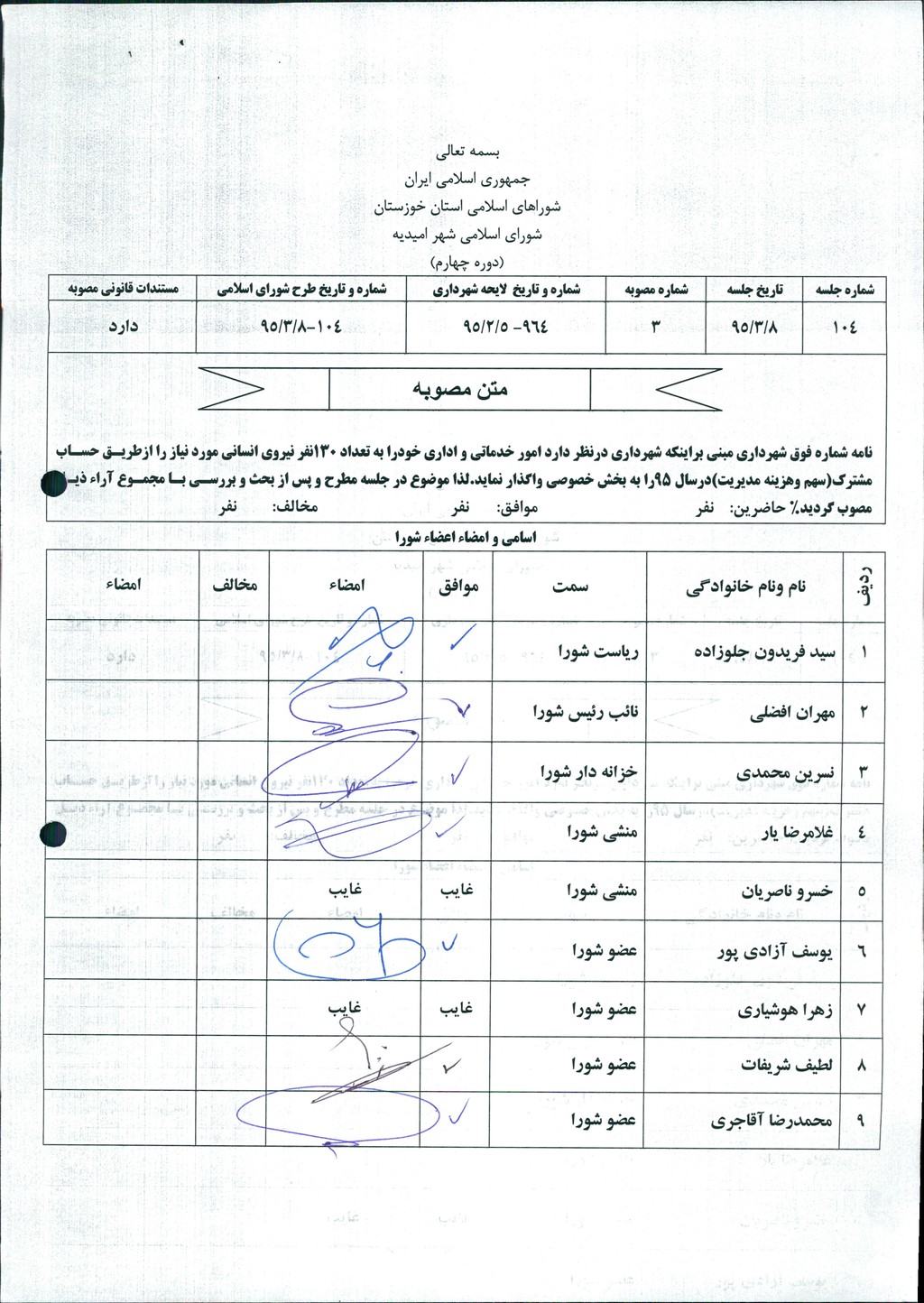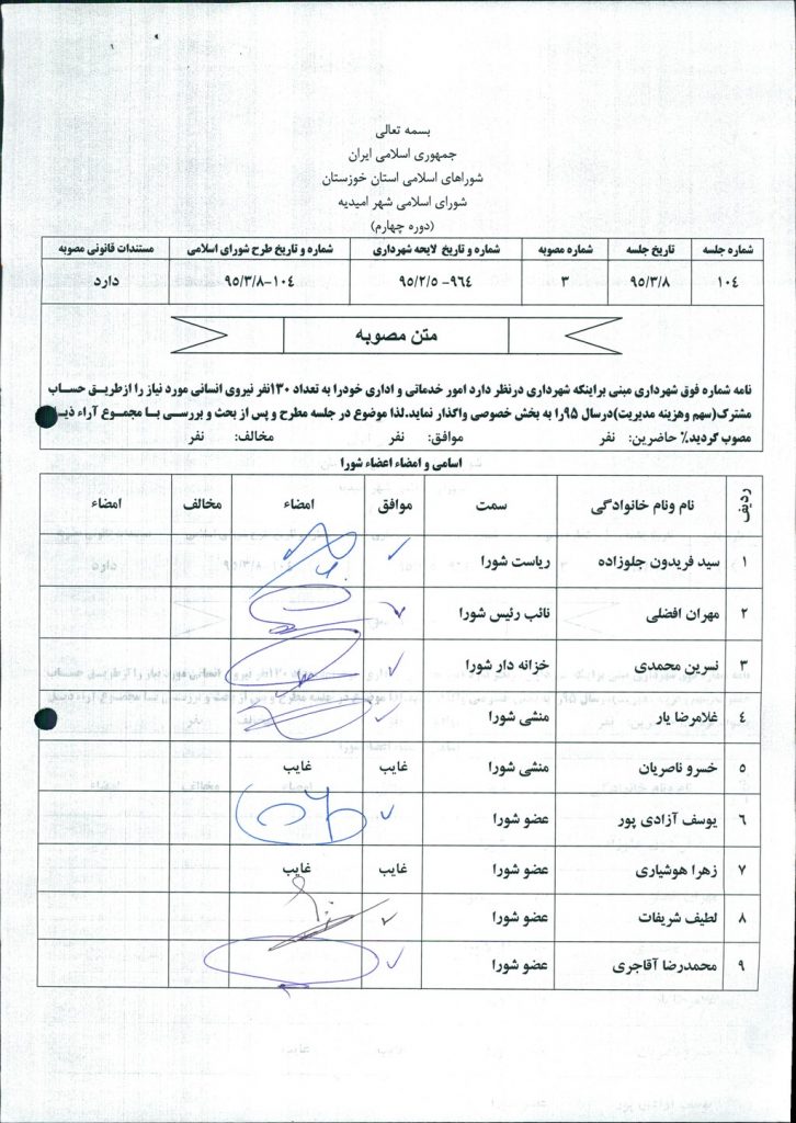 مصوبه شماره ۳ جلسه شماره ۱۰۴ شورای اسلامی شهر امیدیه
