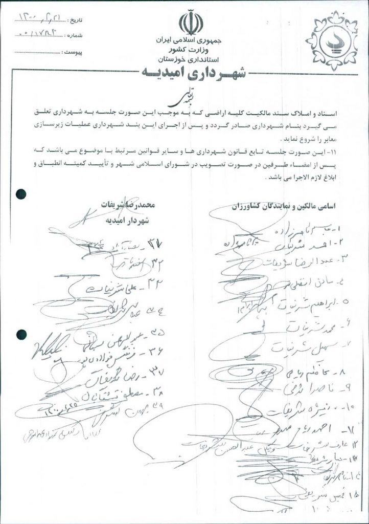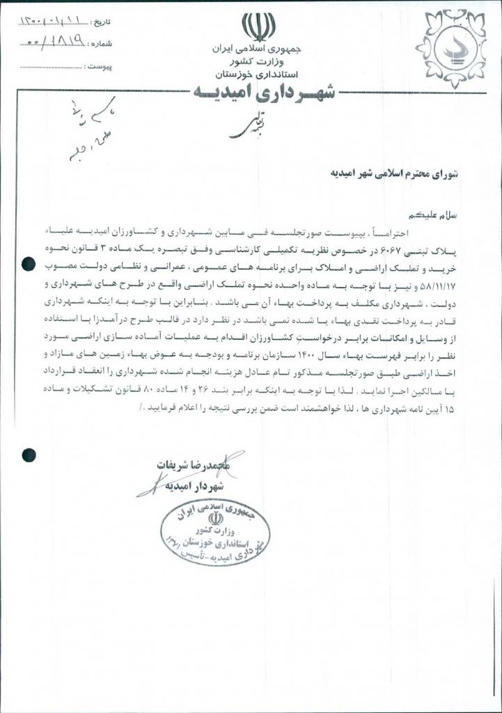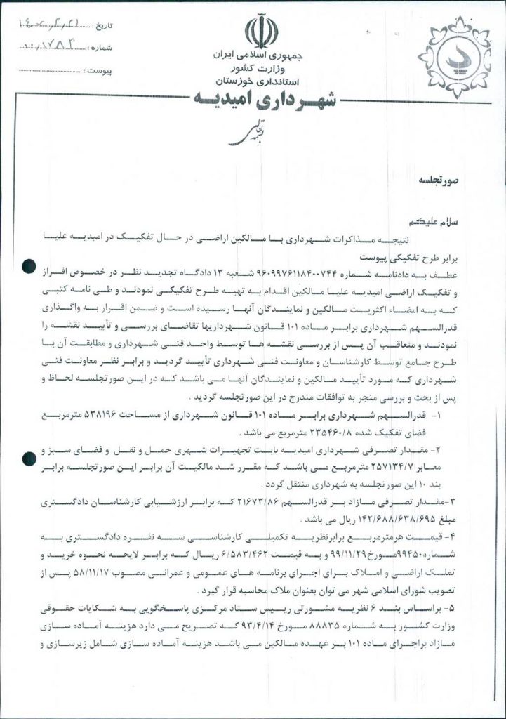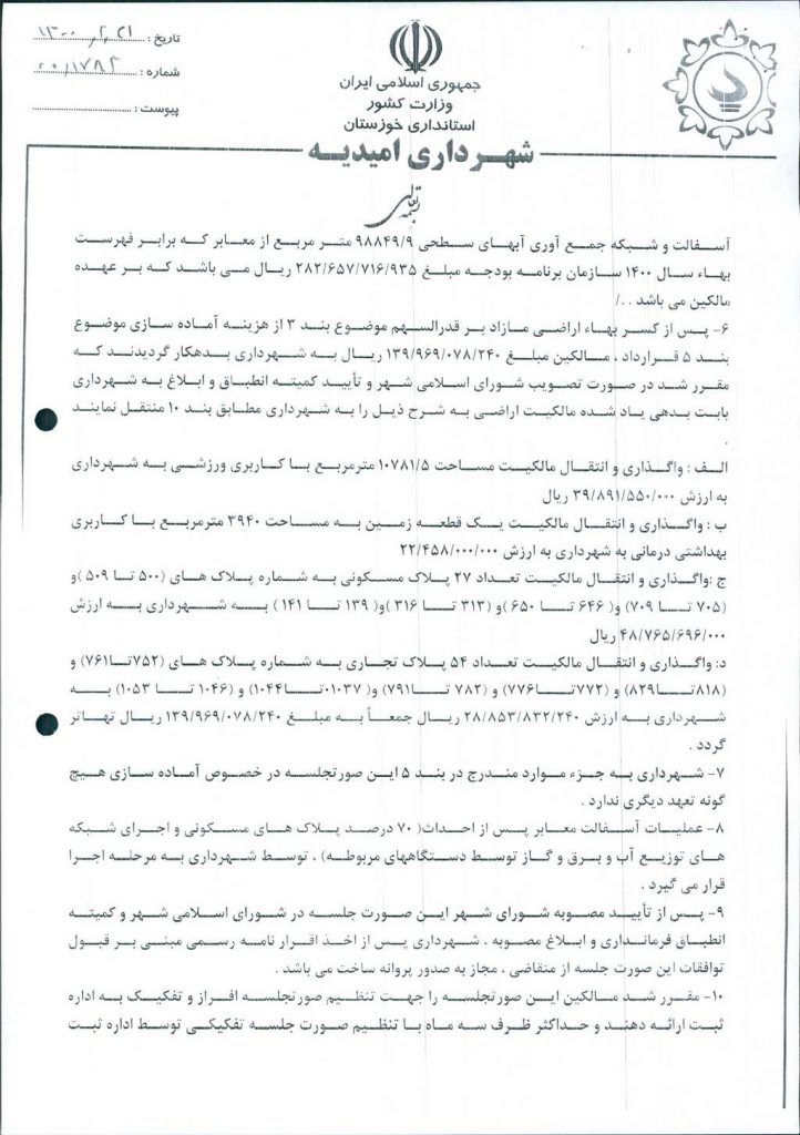 مصوبه شماره ۳ جلسه شماره ۱۰۸ شورای اسلامی شهر امیدیه