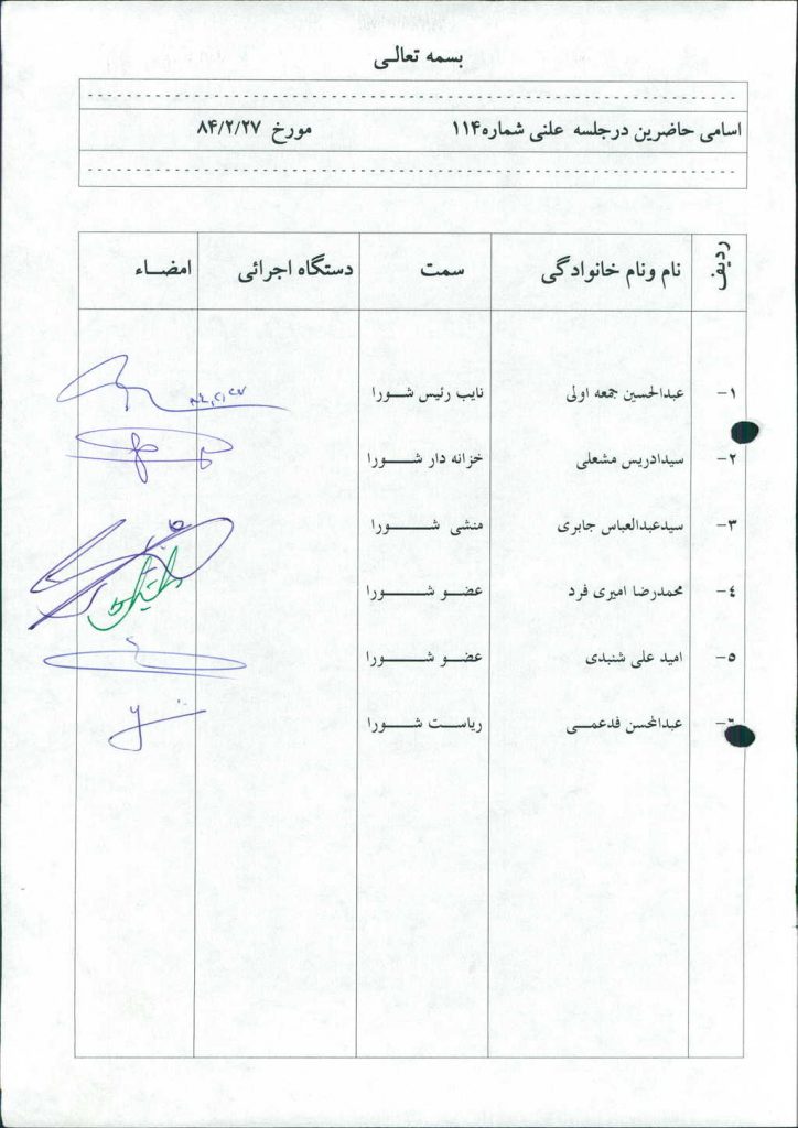 مصوبه شماره ۳ جلسه شماره ۱۱۴ شورای اسلامی شهر امیدیه