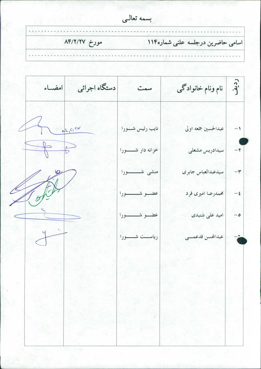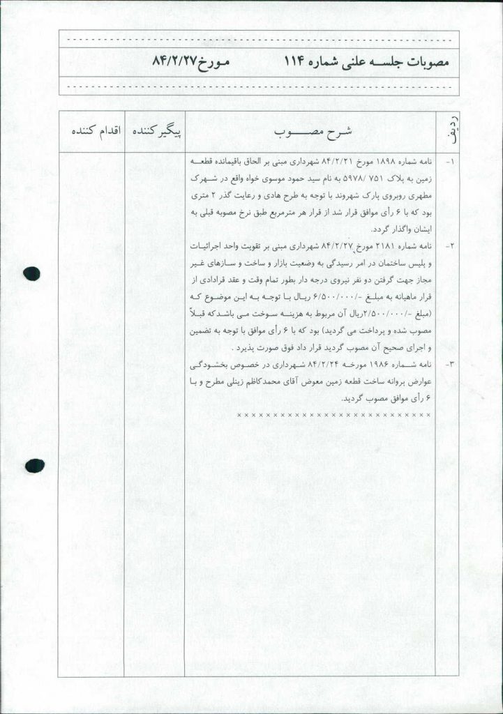 مصوبه شماره ۳ جلسه شماره ۱۱۴ مورخ ۸۴/۲/۲۷ شورای اسلامی شهر امیدیه