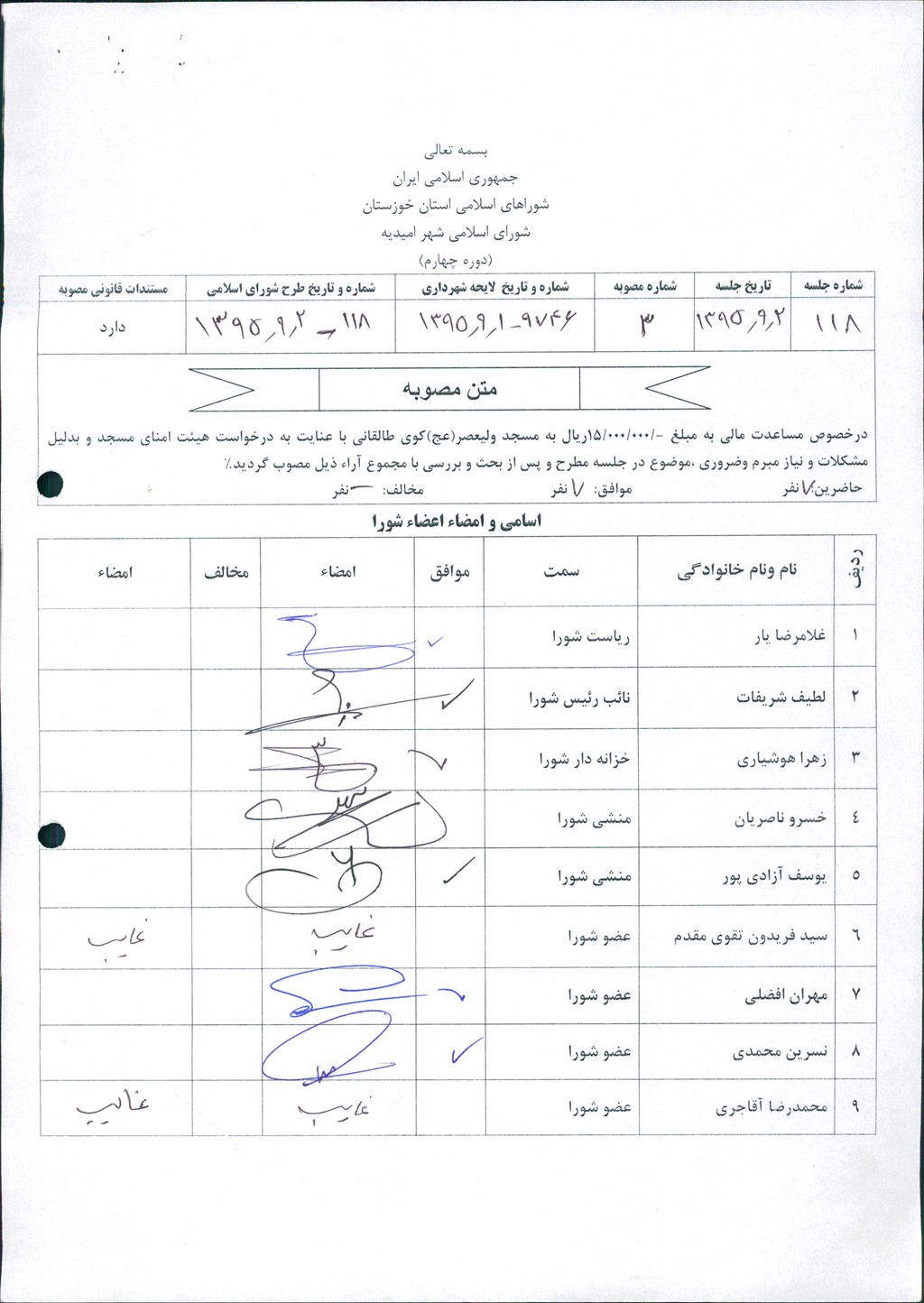 مصوبه شماره ۳ جلسه شماره ۱۱۸ شورای اسلامی شهر امیدیه