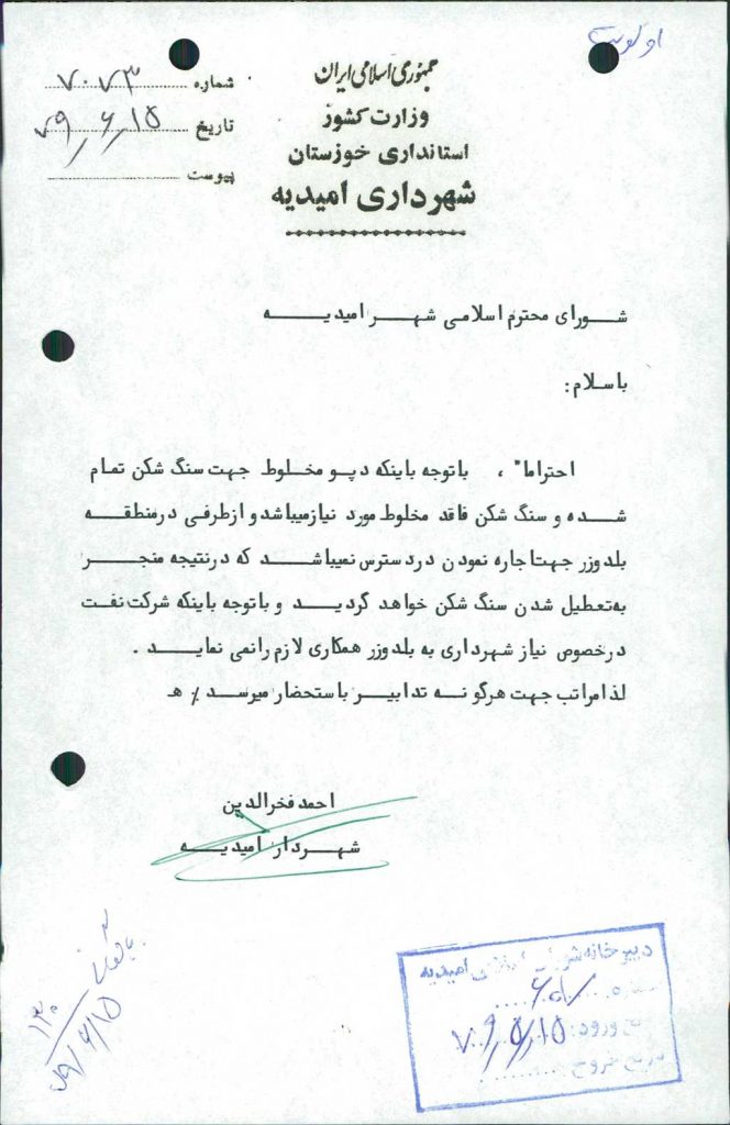 مصوبه شماره ۳ جلسه شماره ۱۳۰ مورخ ۷۹/۶/۱۵ شورای اسلامی شهر امیدیه