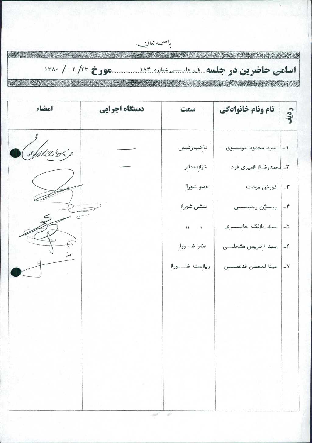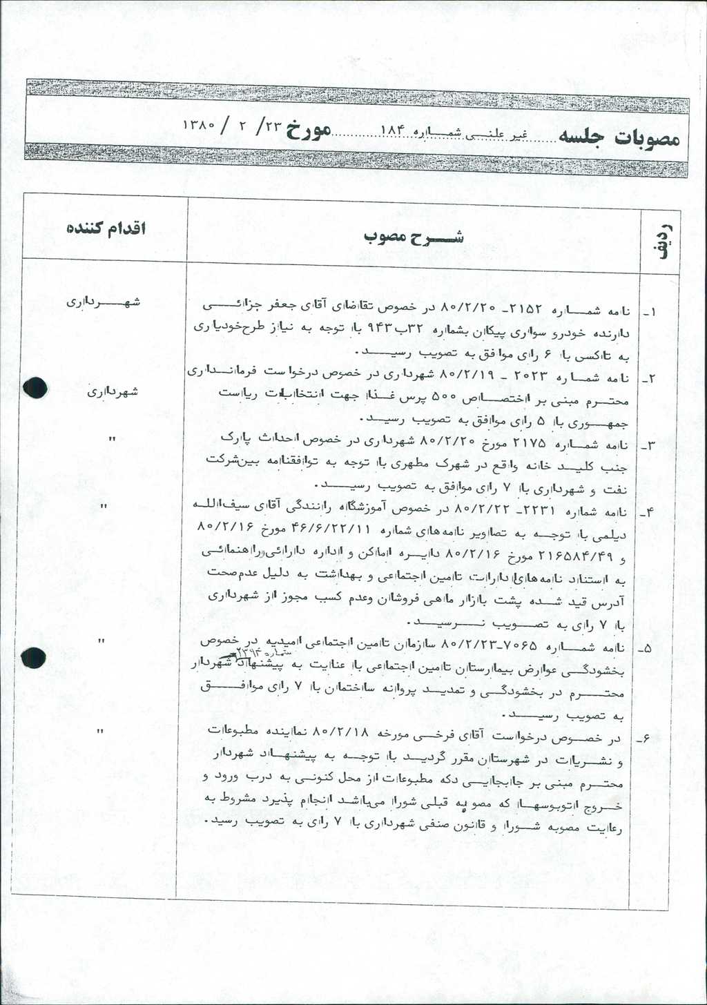مصوبه شماره ۳ جلسه شماره ۱۸۴ مورخ ۸۰/۲/۲۳ شورای اسلامی شهر امیدیه