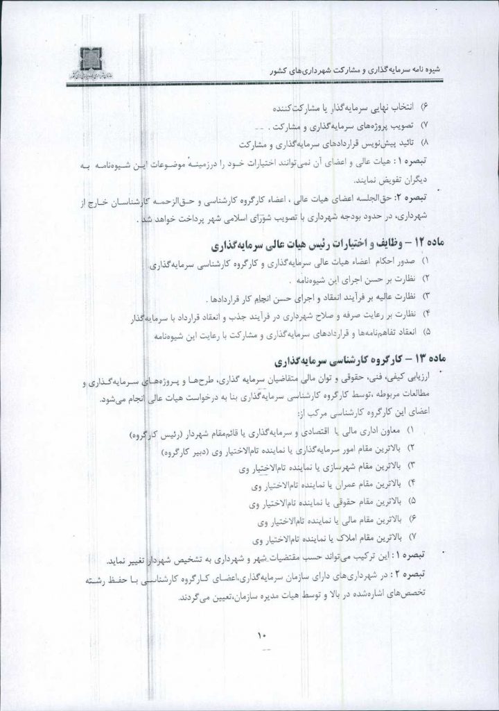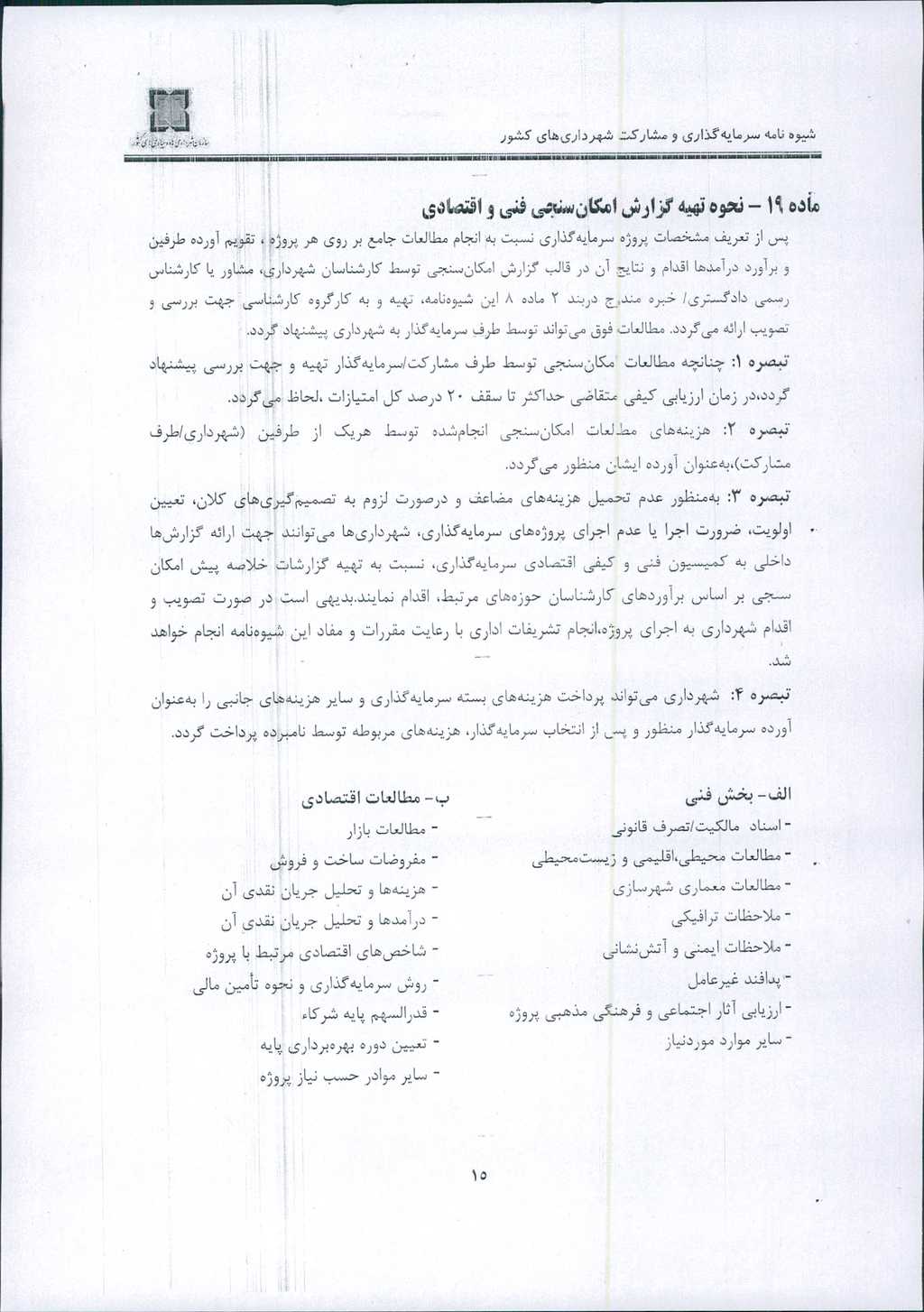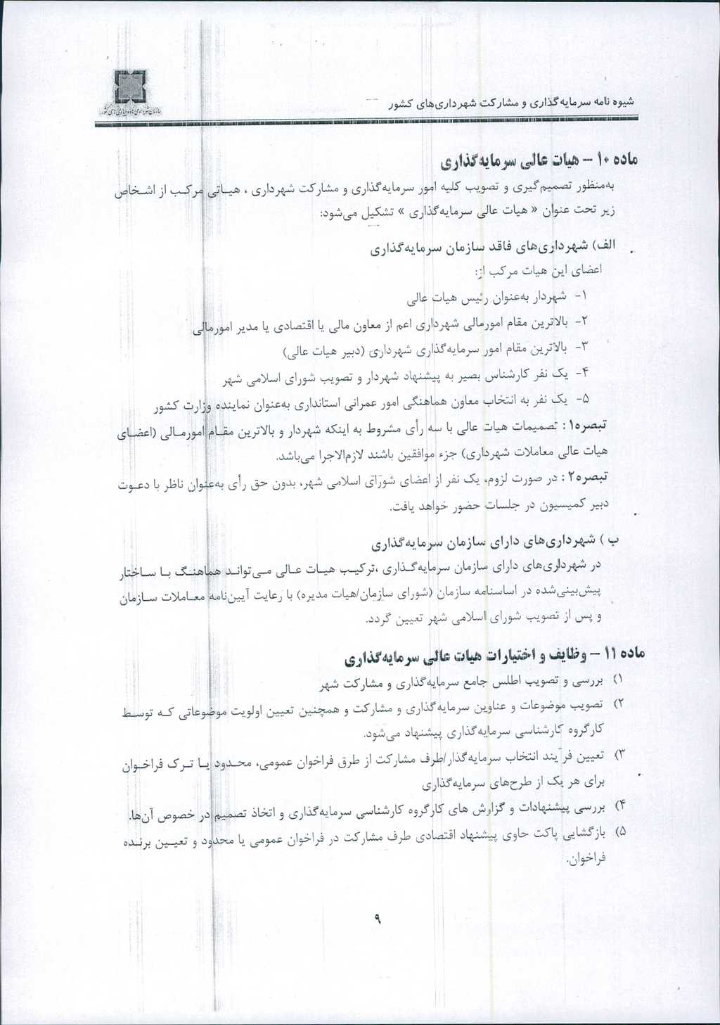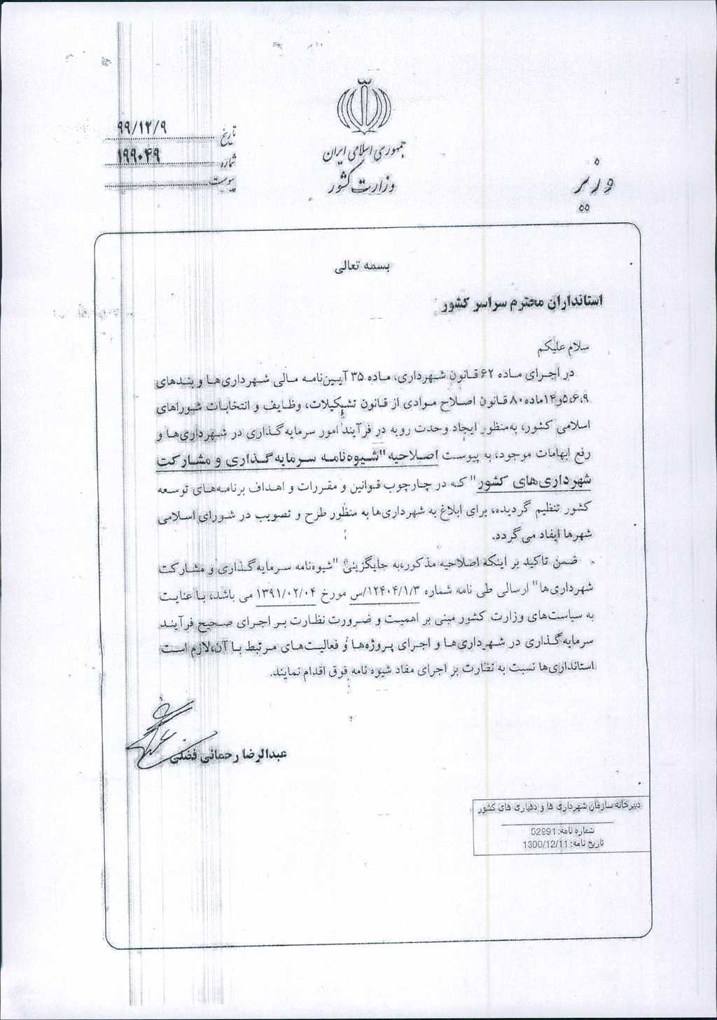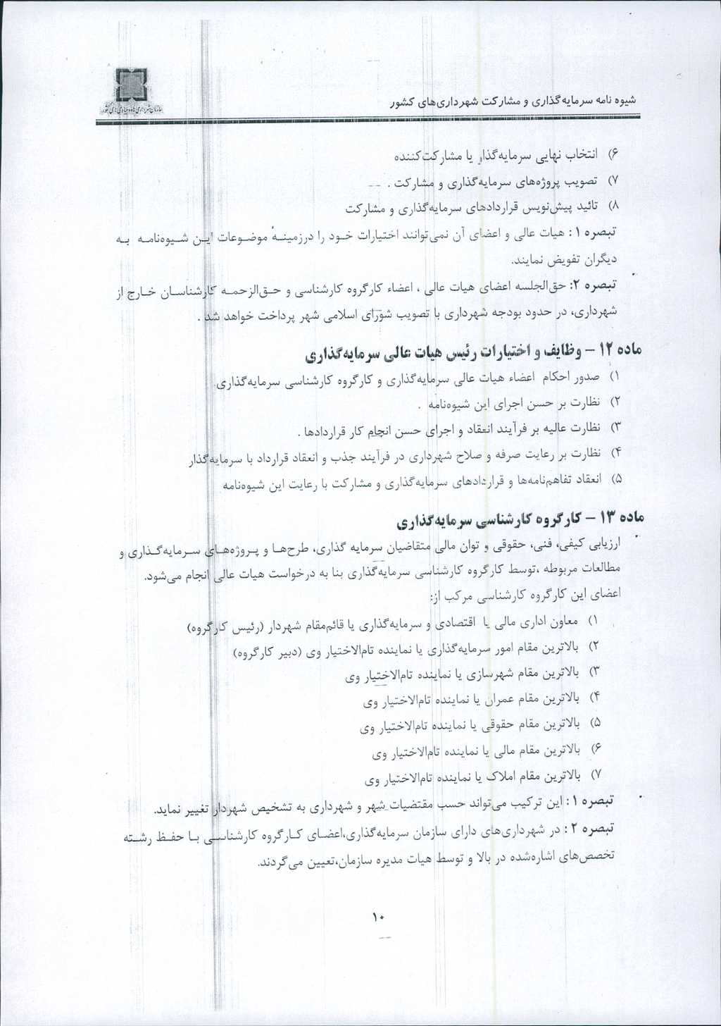 نامه شماره فوق شهرداری امیدیه، در خصوص شیوه نامه سرمایه گذاری و مشارکت شهرداری که بر اساس شیوه نامه تنظیمی وزارت کشور تنظیم شده، در جلسه مطرح و پس از بحث و بررسی با مجموع آراء ذیل مصوب گردید.