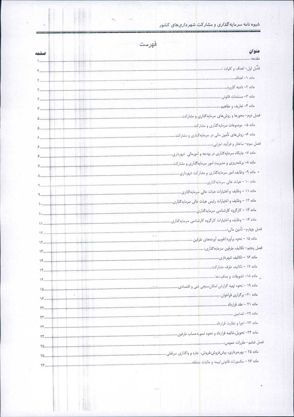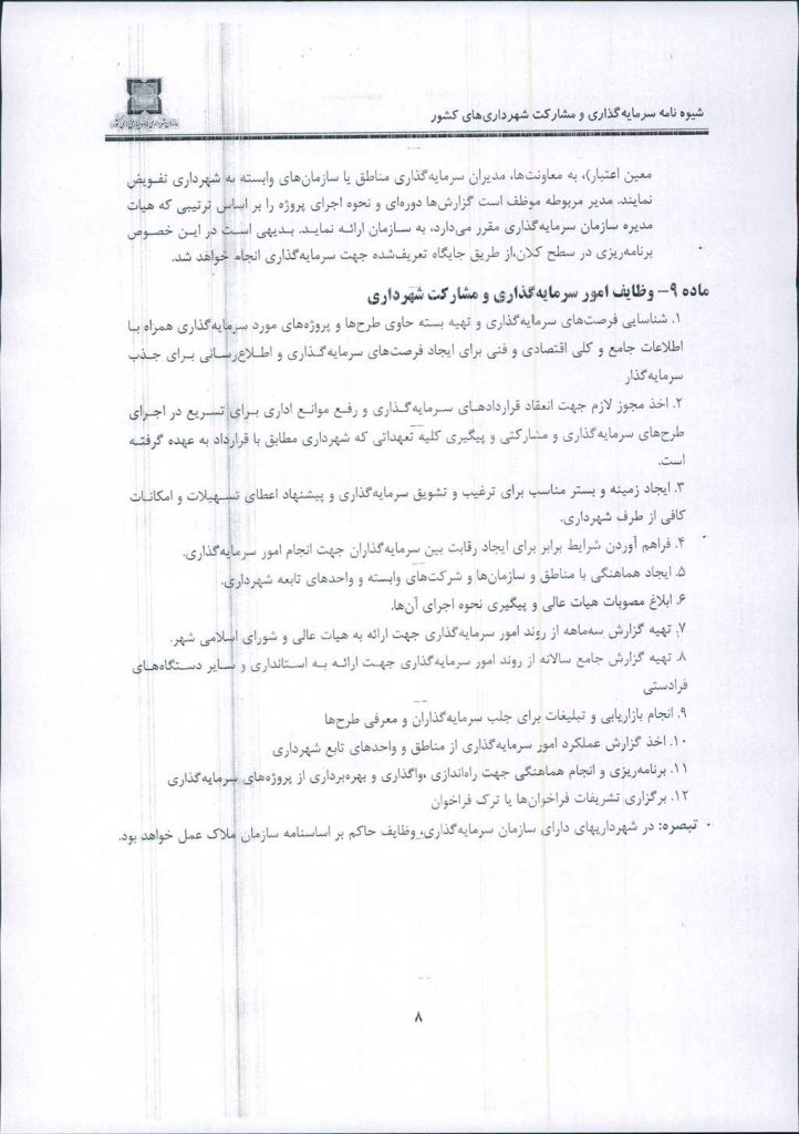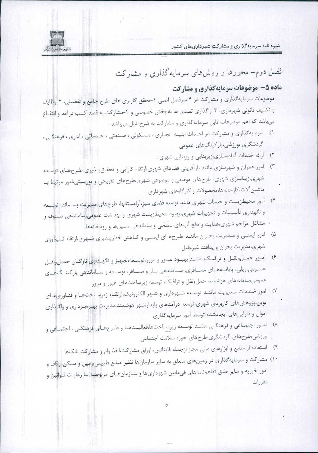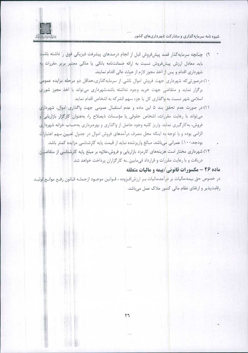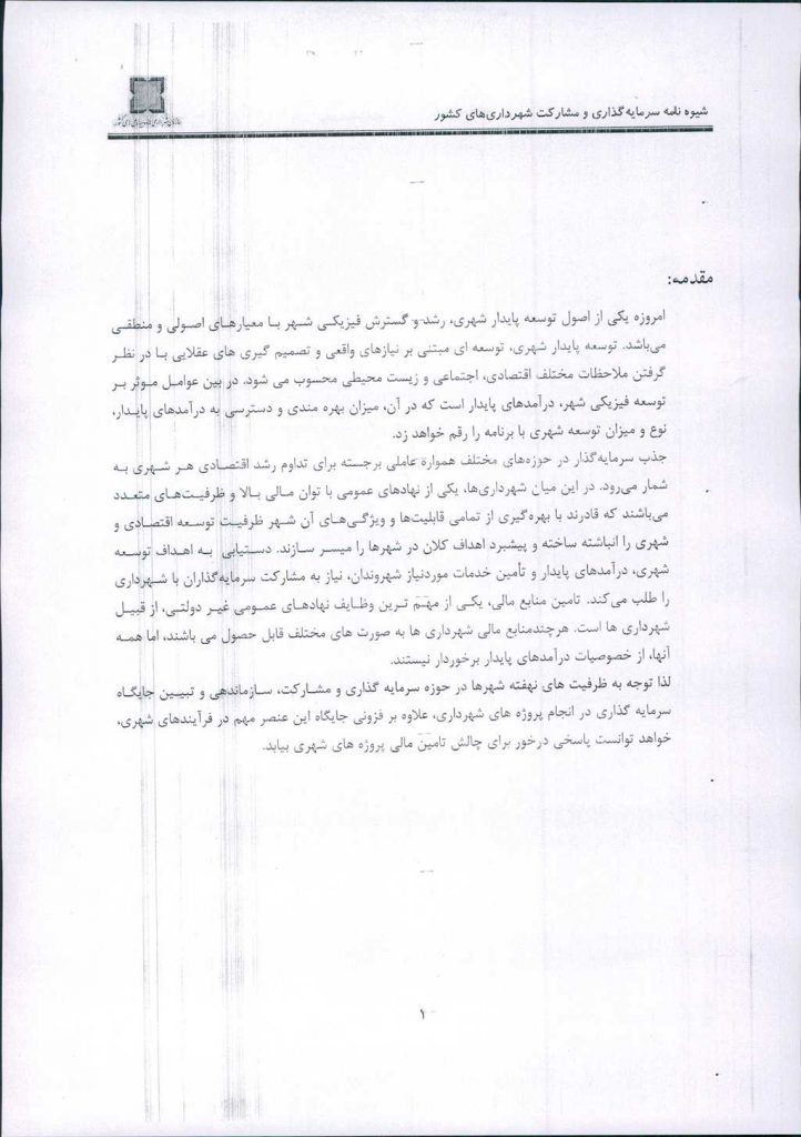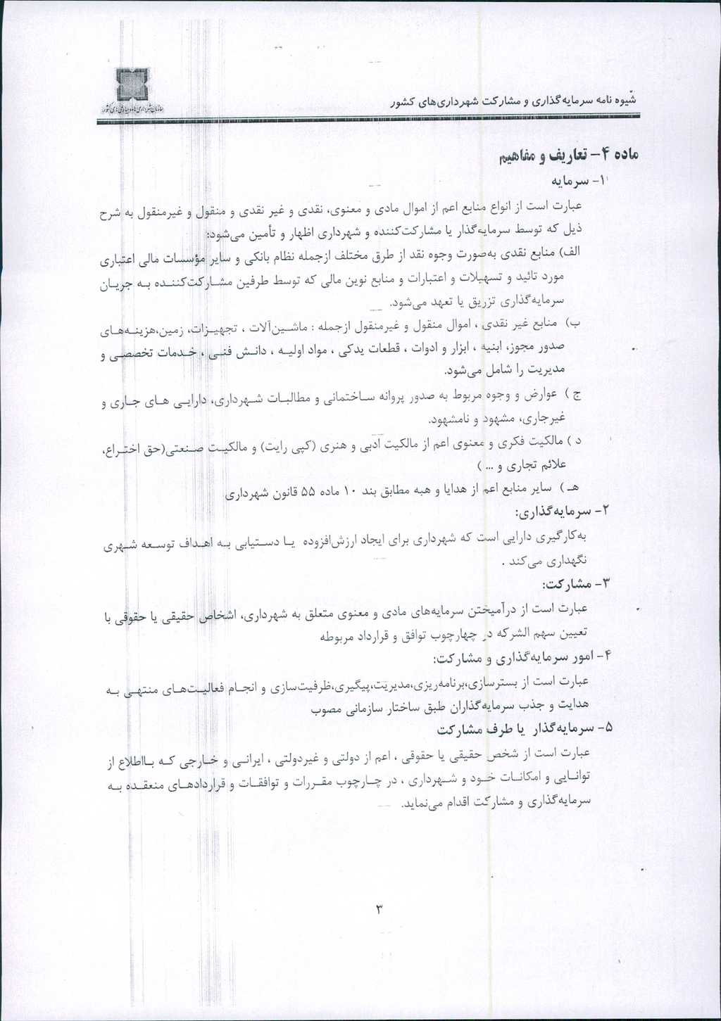 نامه شماره فوق شهرداری امیدیه، در خصوص شیوه نامه سرمایه گذاری و مشارکت شهرداری که بر اساس شیوه نامه تنظیمی وزارت کشور تنظیم شده، در جلسه مطرح و پس از بحث و بررسی با مجموع آراء ذیل مصوب گردید.