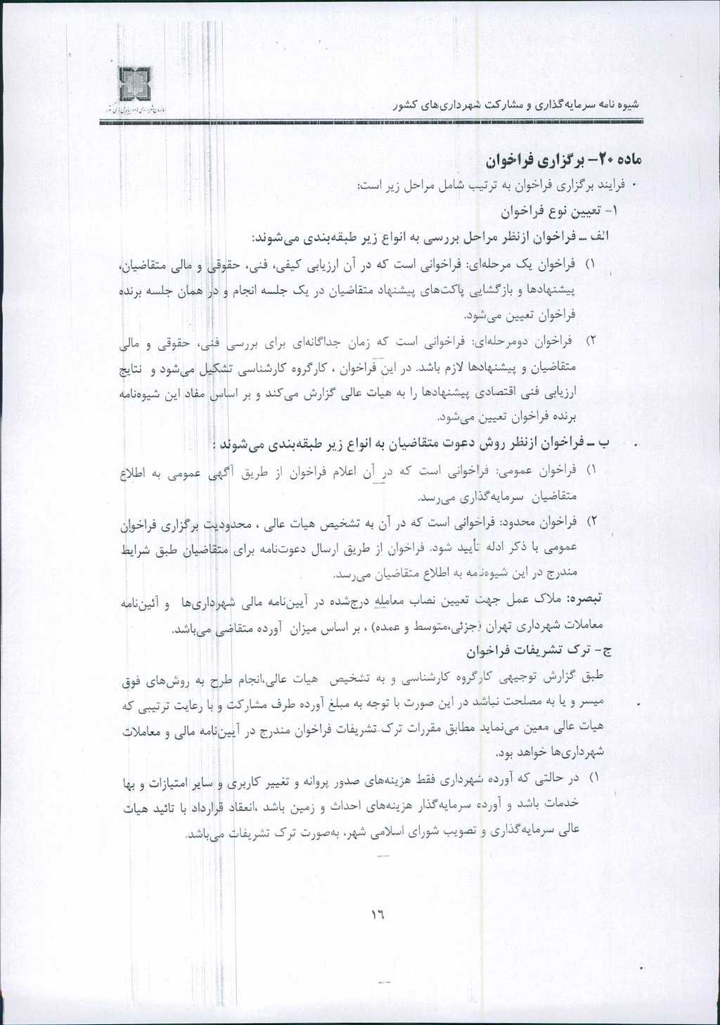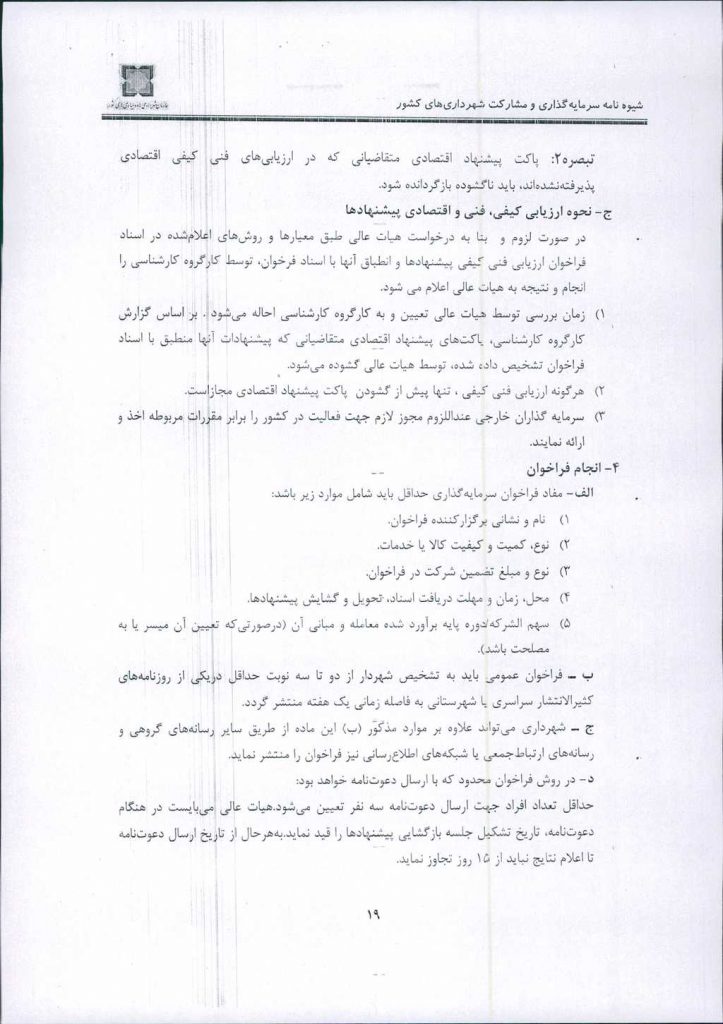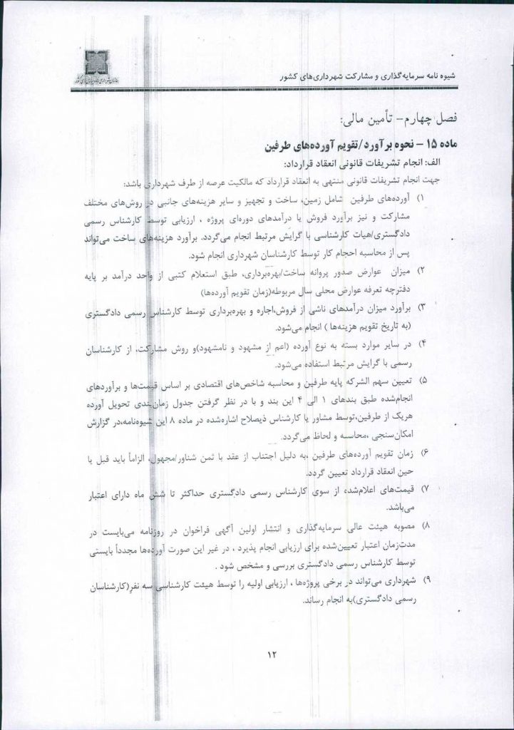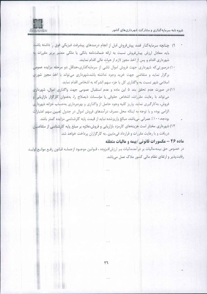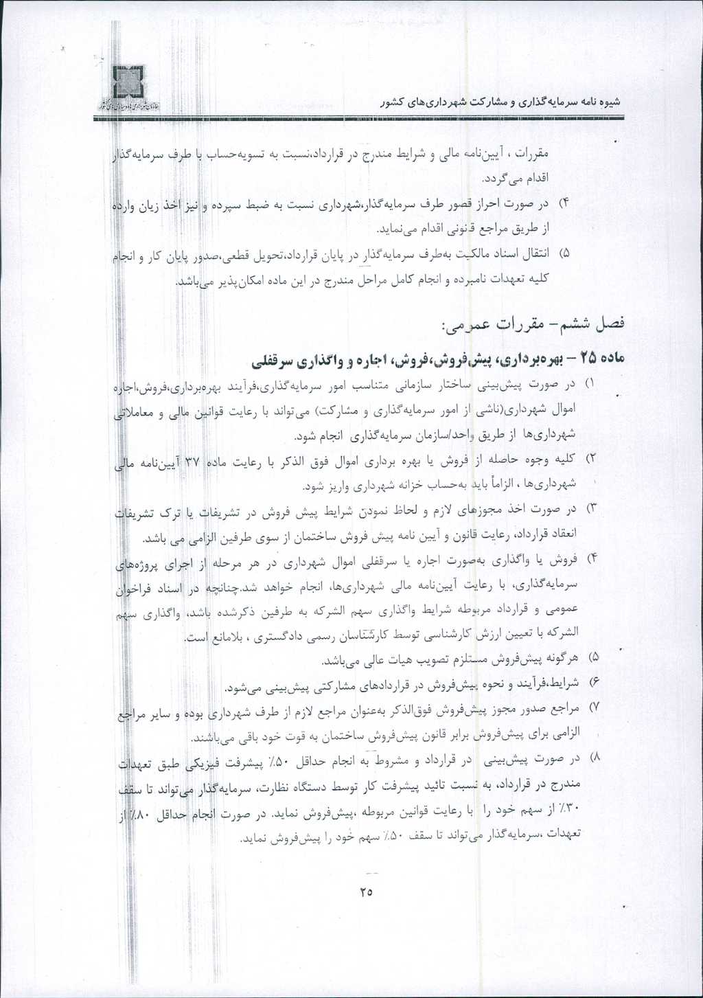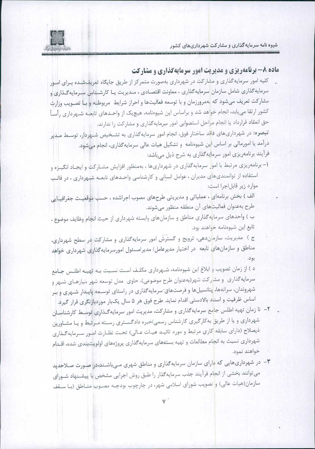 نامه شماره فوق شهرداری امیدیه، در خصوص شیوه نامه سرمایه گذاری و مشارکت شهرداری که بر اساس شیوه نامه تنظیمی وزارت کشور تنظیم شده، در جلسه مطرح و پس از بحث و بررسی با مجموع آراء ذیل مصوب گردید.