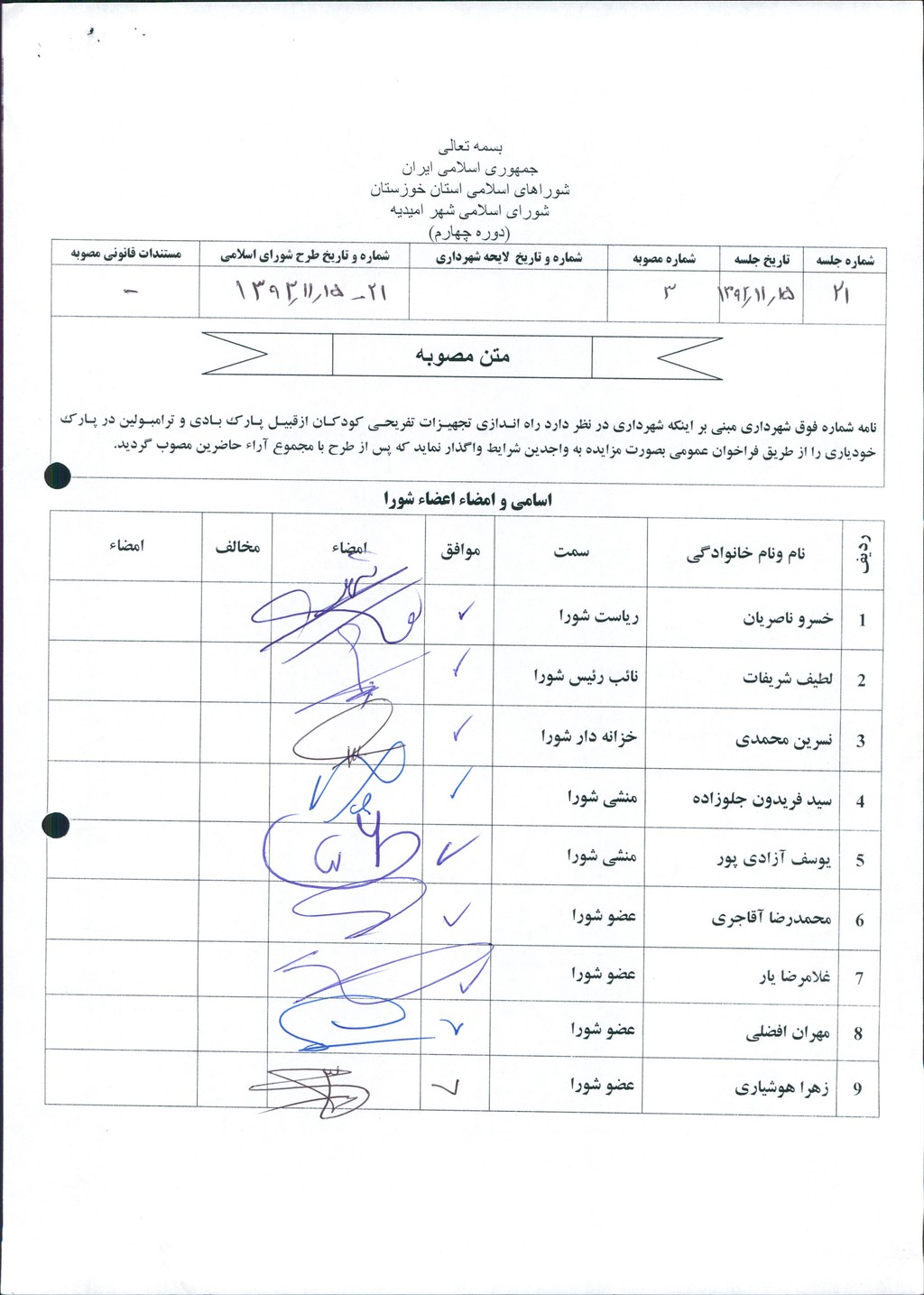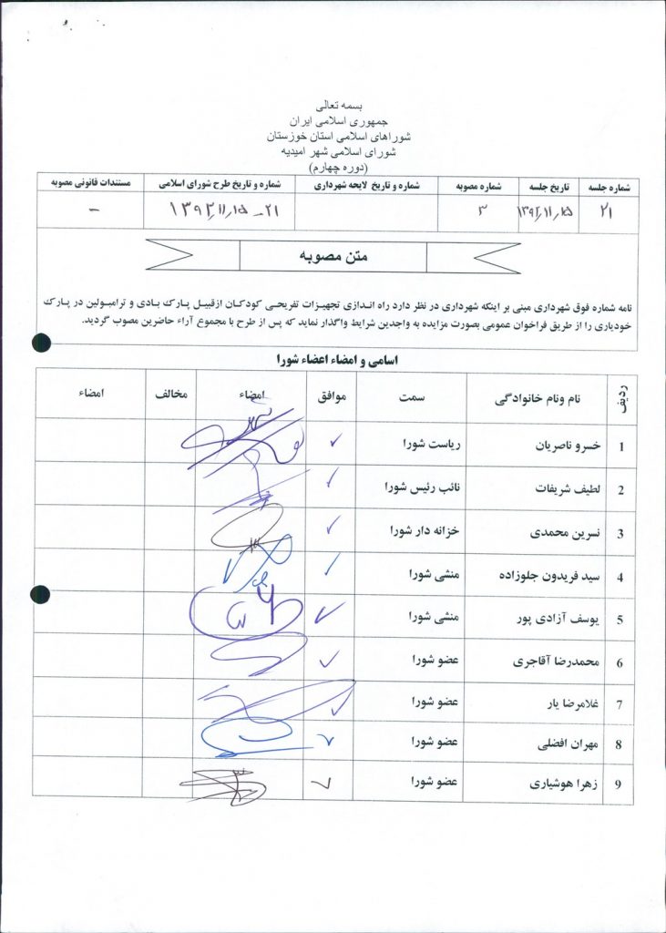 مصوبه شماره ۳ جلسه شماره ۲۱ شورای اسلامی شهر امیدیه