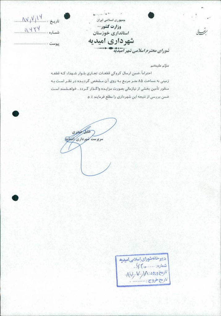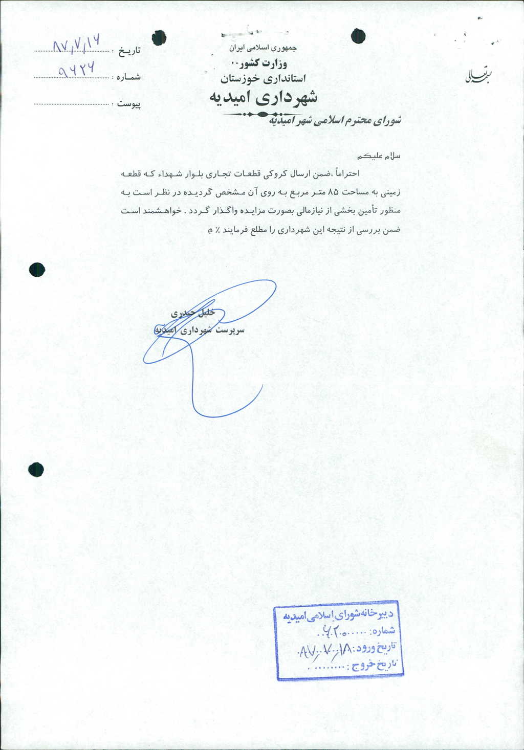 موضوع : مزایده قطعه زمین به مساحت ۸۵ متر مربع در بلوار شهداء.