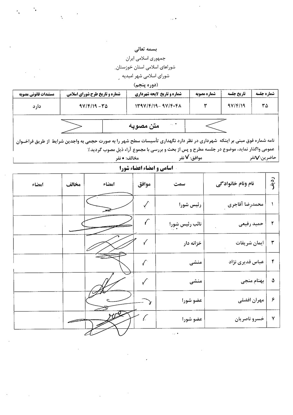 مصوبه شماره ۵ جلسه شماره ۹۸ مورخ ۱۴۰۴/۹/۱۷ شورای اسلامی شهر امیدیه