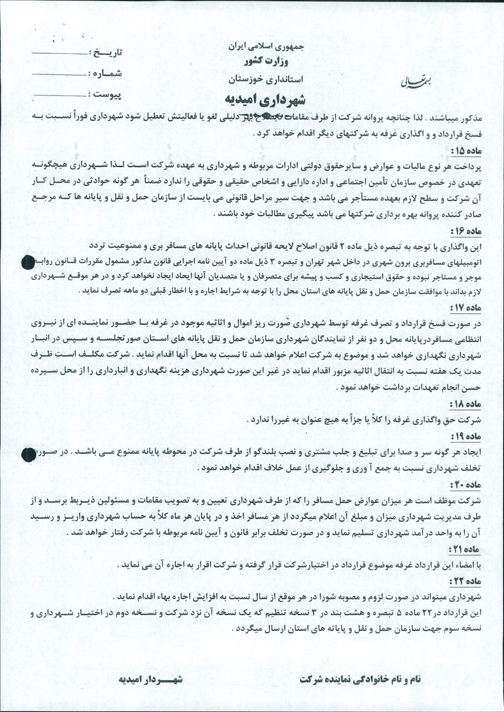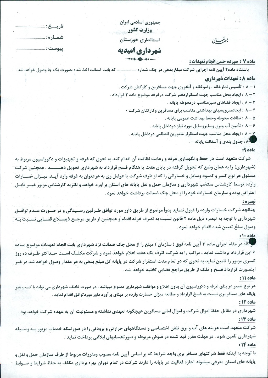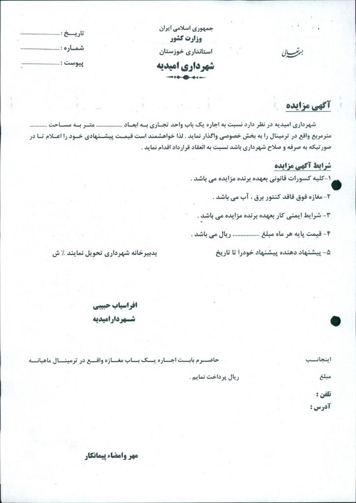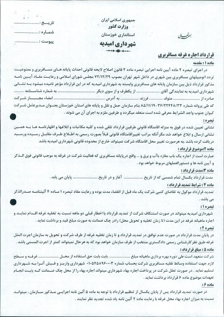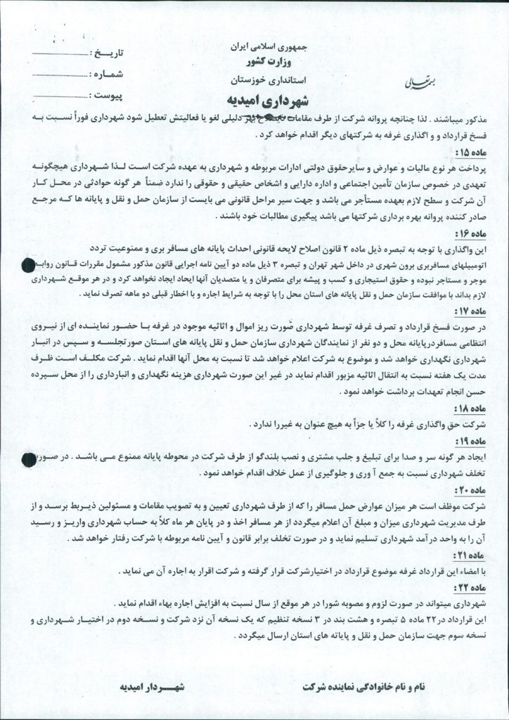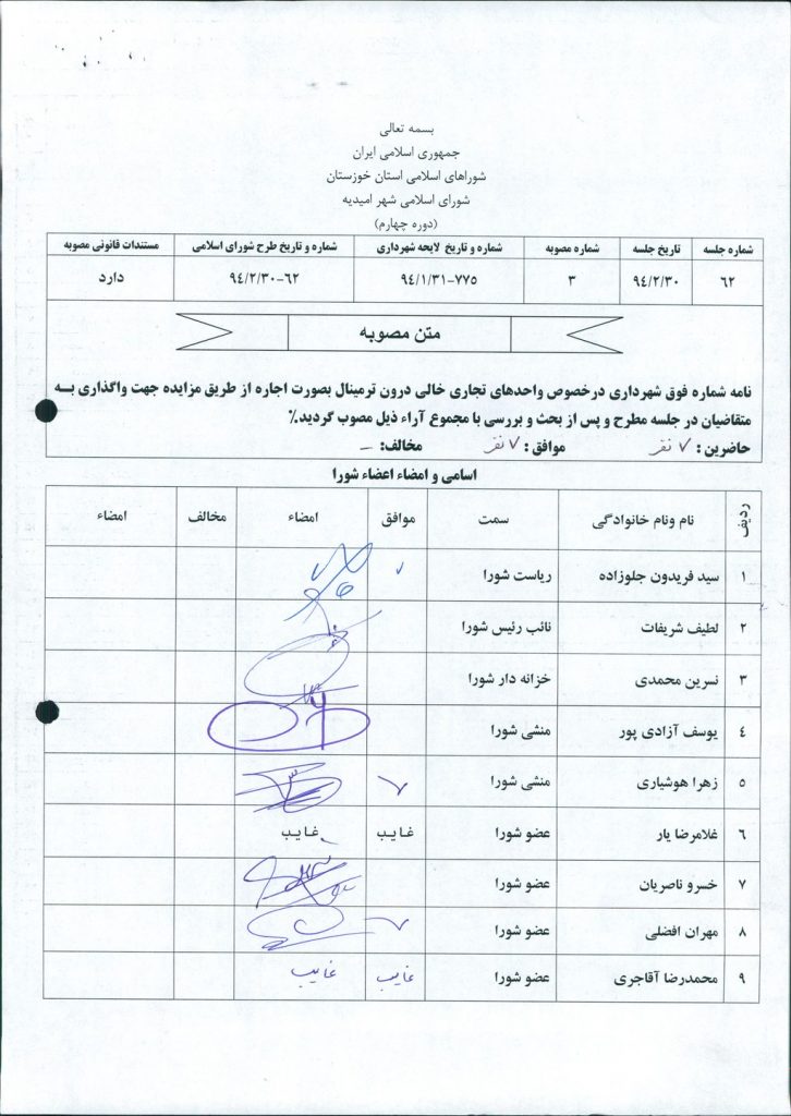 مصوبه شماره ۳ جلسه شماره ۶۲ شورای اسلامی شهر امیدیه