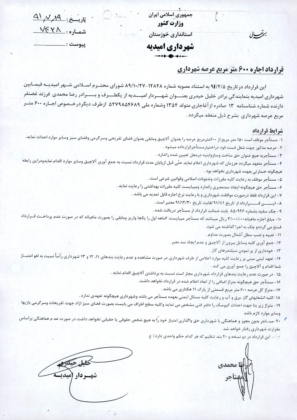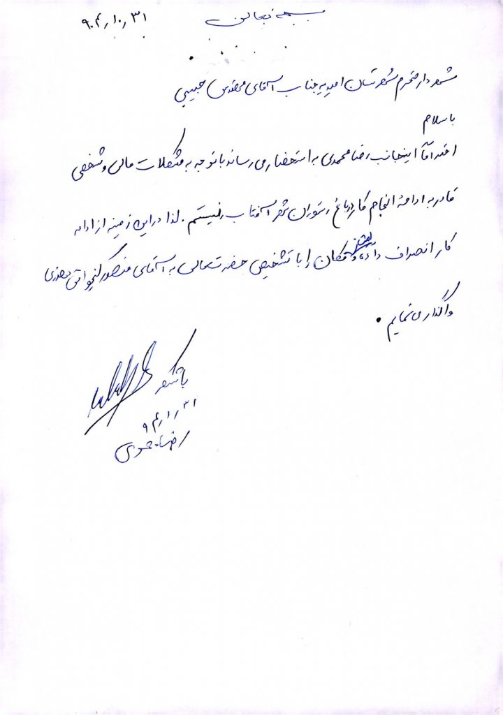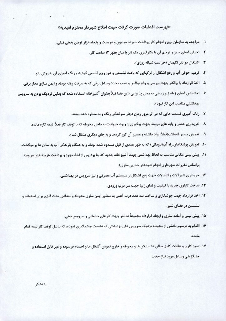 مصوبه شماره ۳ جلسه شماره ۶۵ شورای اسلامی شهر امیدیه