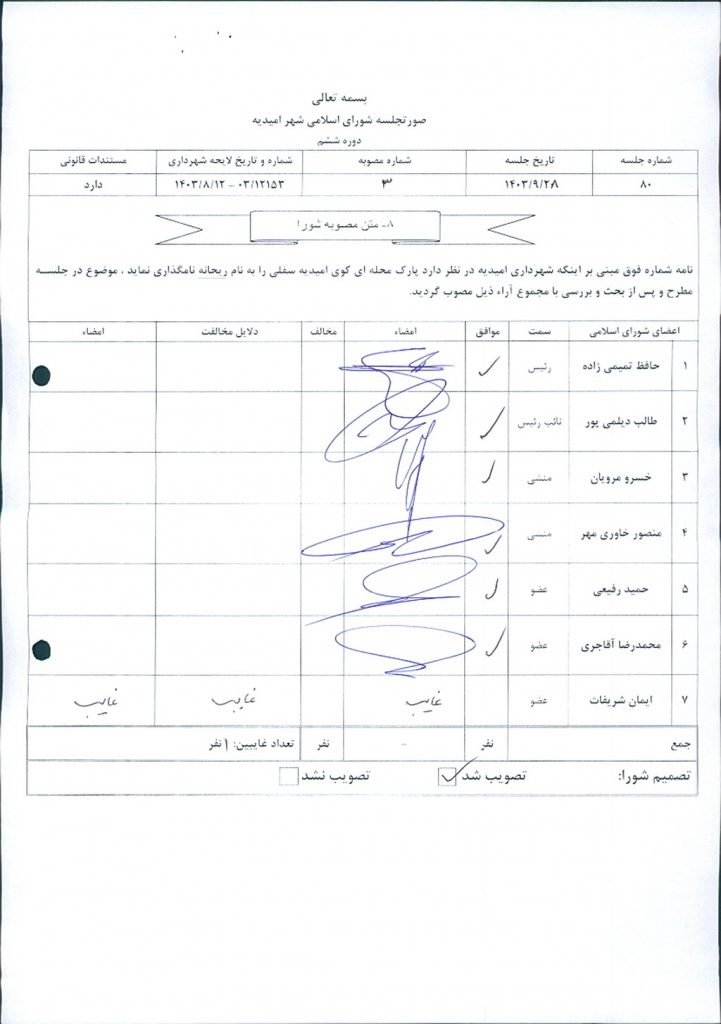 مصوبه شماره ۳ جلسه شماره ۸۰ شورای اسلامی شهر امیدیه